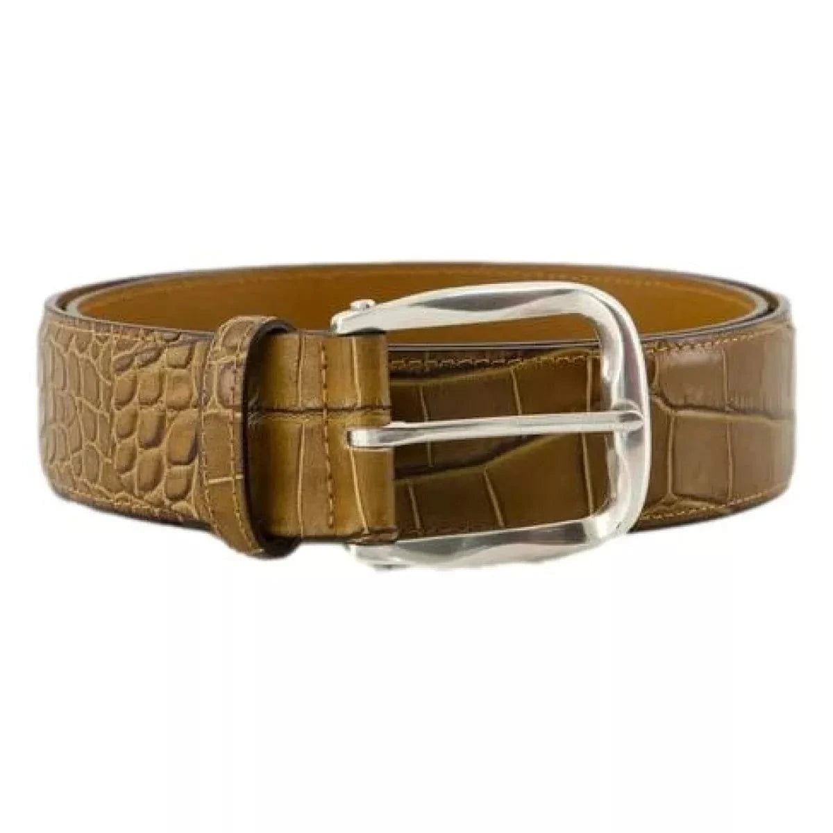 Riem met crocoDe D'amico Leren Croco Riem is een stijlvol accessoire dat elke outfit naar een hoger niveau tilt. Het leren ontwerp heeft een luxe uitstraling, met een opvallend croco-embossing dat het een unieke textuur geeft. De riem is gemaakt van hoogwaardig leer, wat zorgt voor duurzaamheid en comfort, terwijl het elegantie uitstraalt door het verfijnde design.