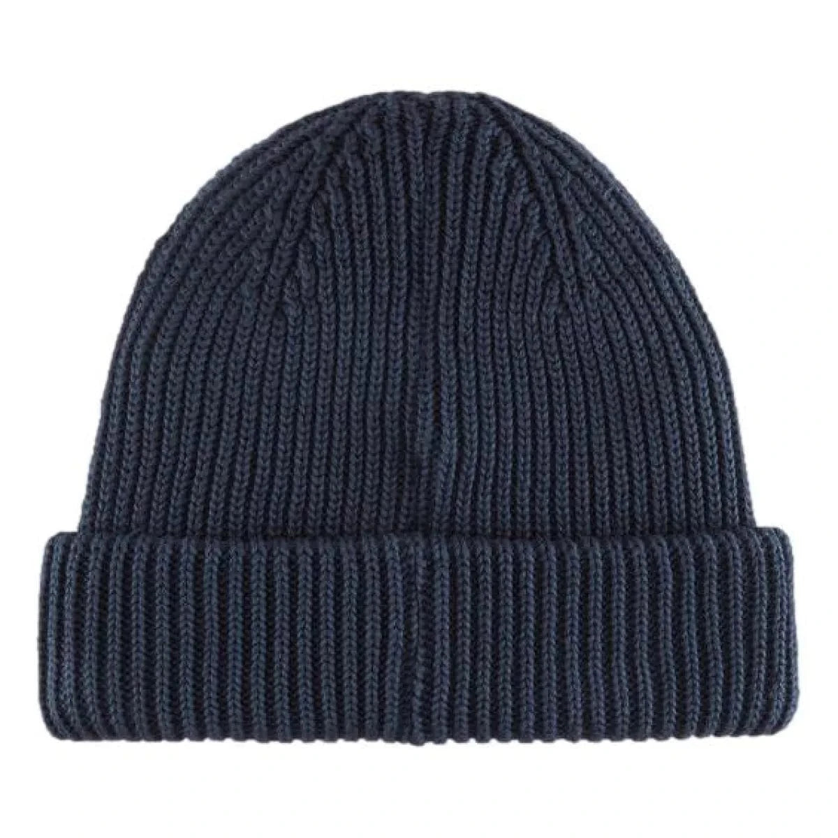 The Robb hat stands out as a warming accessory with its pure rib knit cotton. The wide cuff accentuates the classic beanie design, while the front rubber patch lends a signature accent.