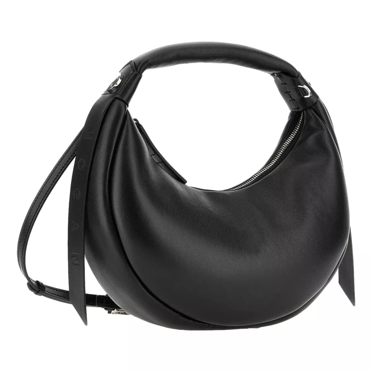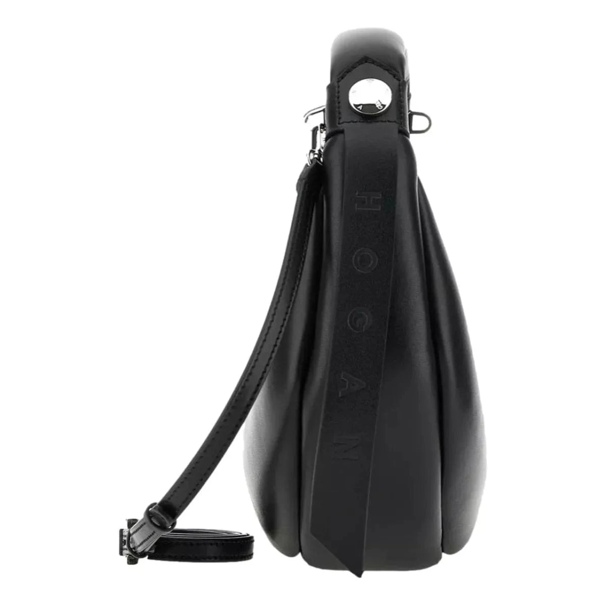 De vernieuwde Hobo, met zijdezacht nappaleer dat doorloopt tot aan het ronde handvat voor een extra kussengevoel. Deze Hogan Bam Bam tas heeft metalen klinknagels en een verstelbare, afneembare schouderriem.