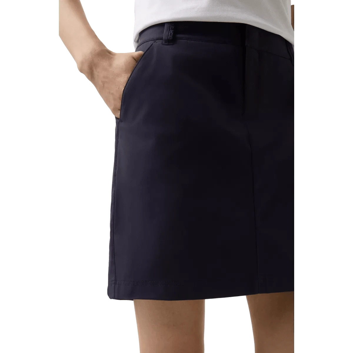 Duurzaam waterafstotend 4-weg stretch keperstof kenmerkt het prestatiegerichte ontwerp van de functionele rok Milla - met geïntegreerde fietsbroek, typisch voor het label. Een fijn rubberen logo op de riemlus voegt een harmonieus accent toe, terwijl steekzakken en zijsplitten aan de zoom een comfortabele upgrade bieden.
