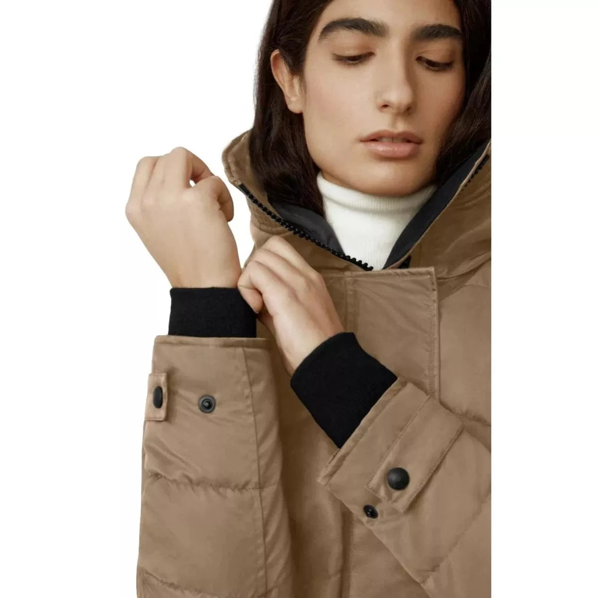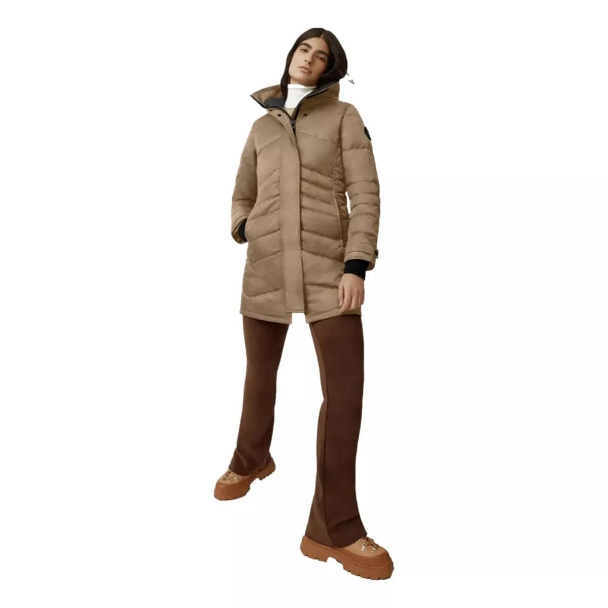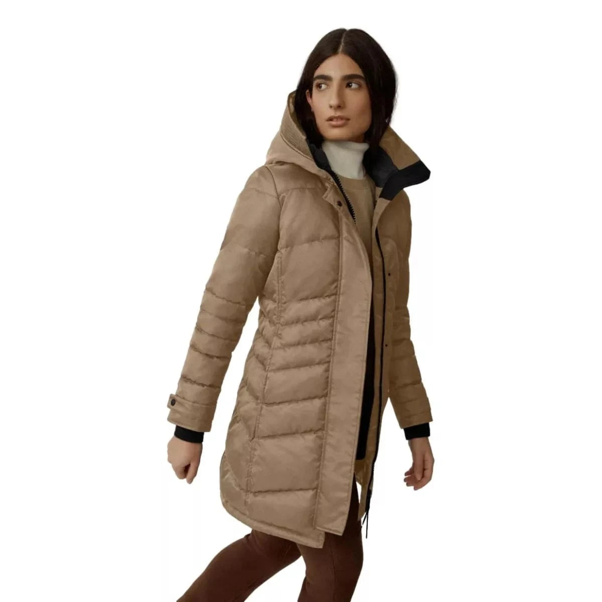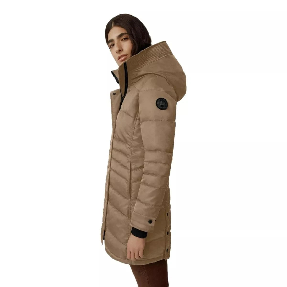 - Articulated chevron quilting pattern highlights the natural shape of the parka
