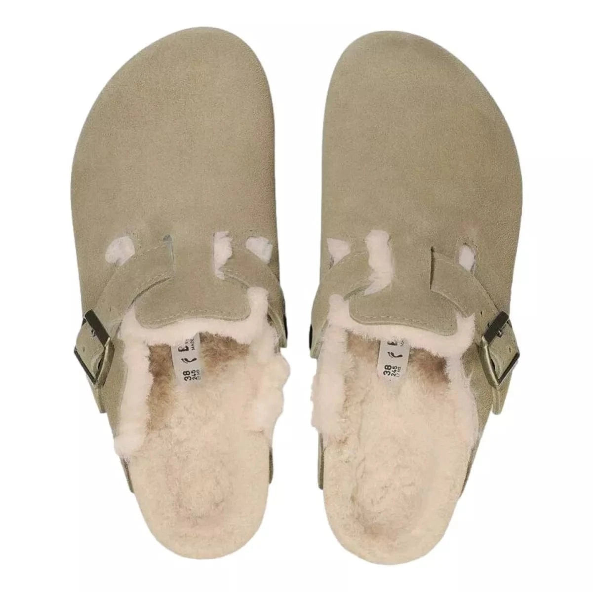 Birkenstock Boston Suede Lamswol Taupe - Match Laren