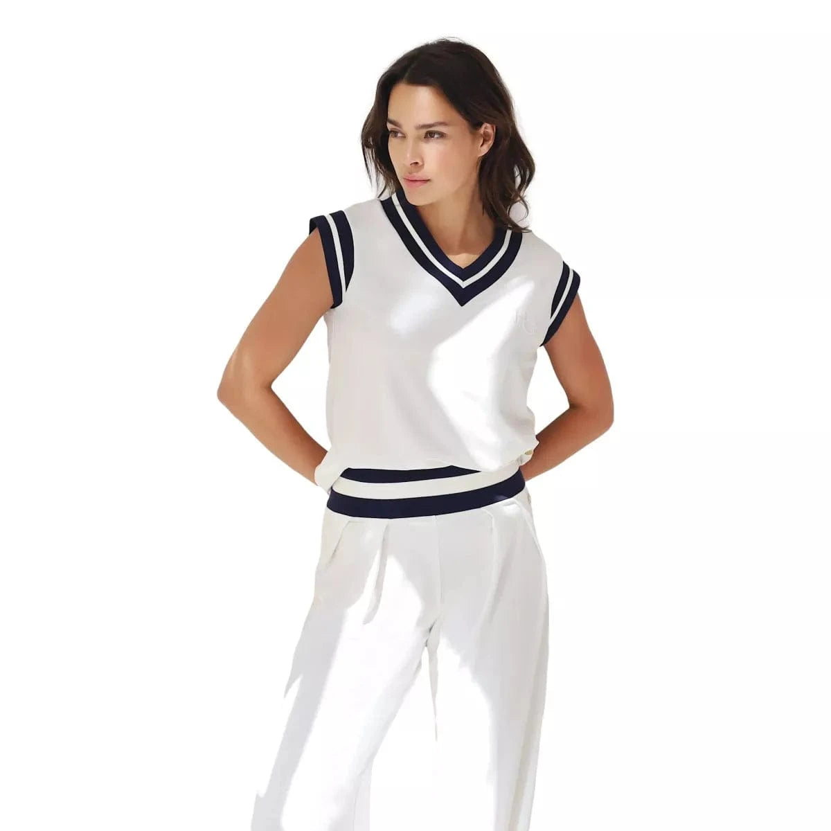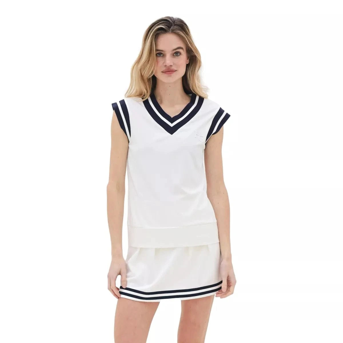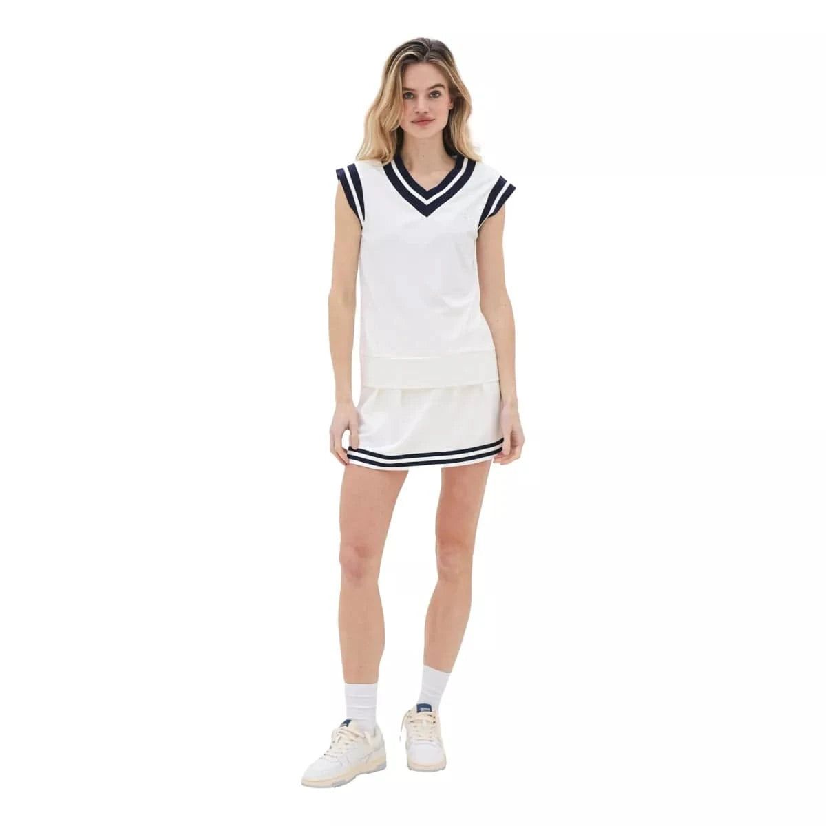 De House of Gravity Off White Spencer Top is een stijlvolle en sportieve top met een verfijnde uitstraling. Gemaakt van zacht, ademend materiaal voor optimaal comfort, afgewerkt met een marineblauw detail dat zorgt voor een subtiel, modern contrast. Perfect voor zowel actieve momenten als casual wear.