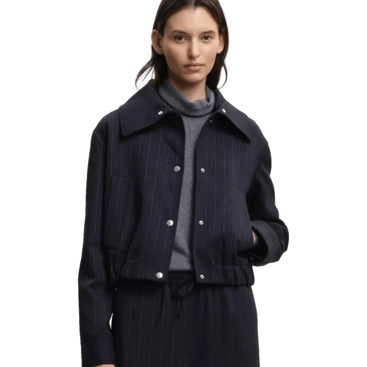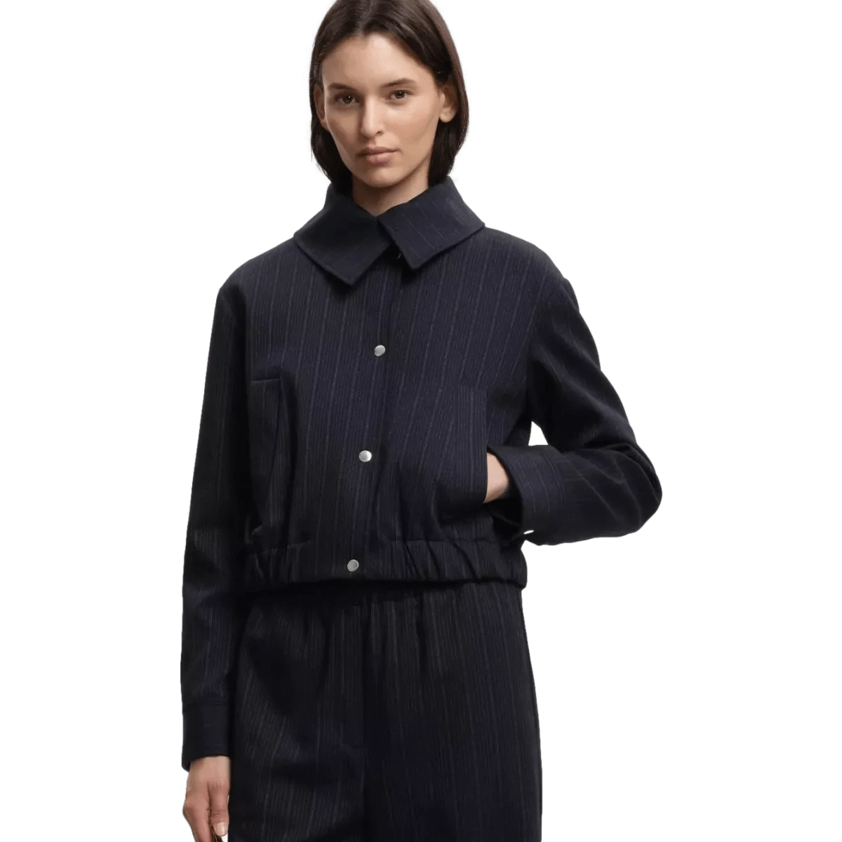 De Margaux Lonnberg Anja Jas in donkerblauw met strepen is een stijlvolle outerwear essential die moeiteloos comfort en fashion combineert. Het gestreepte design geeft de jas een moderne en levendige uitstraling, terwijl de hoogwaardige materialen zorgen voor warmte en duurzaamheid.