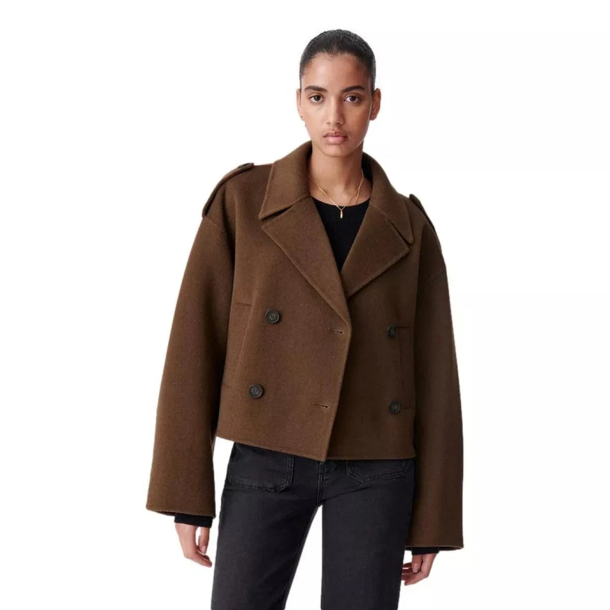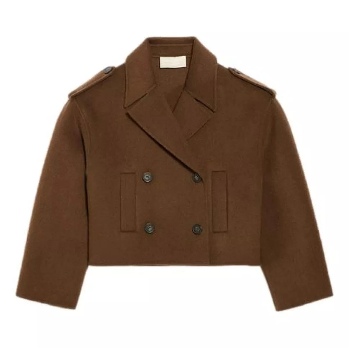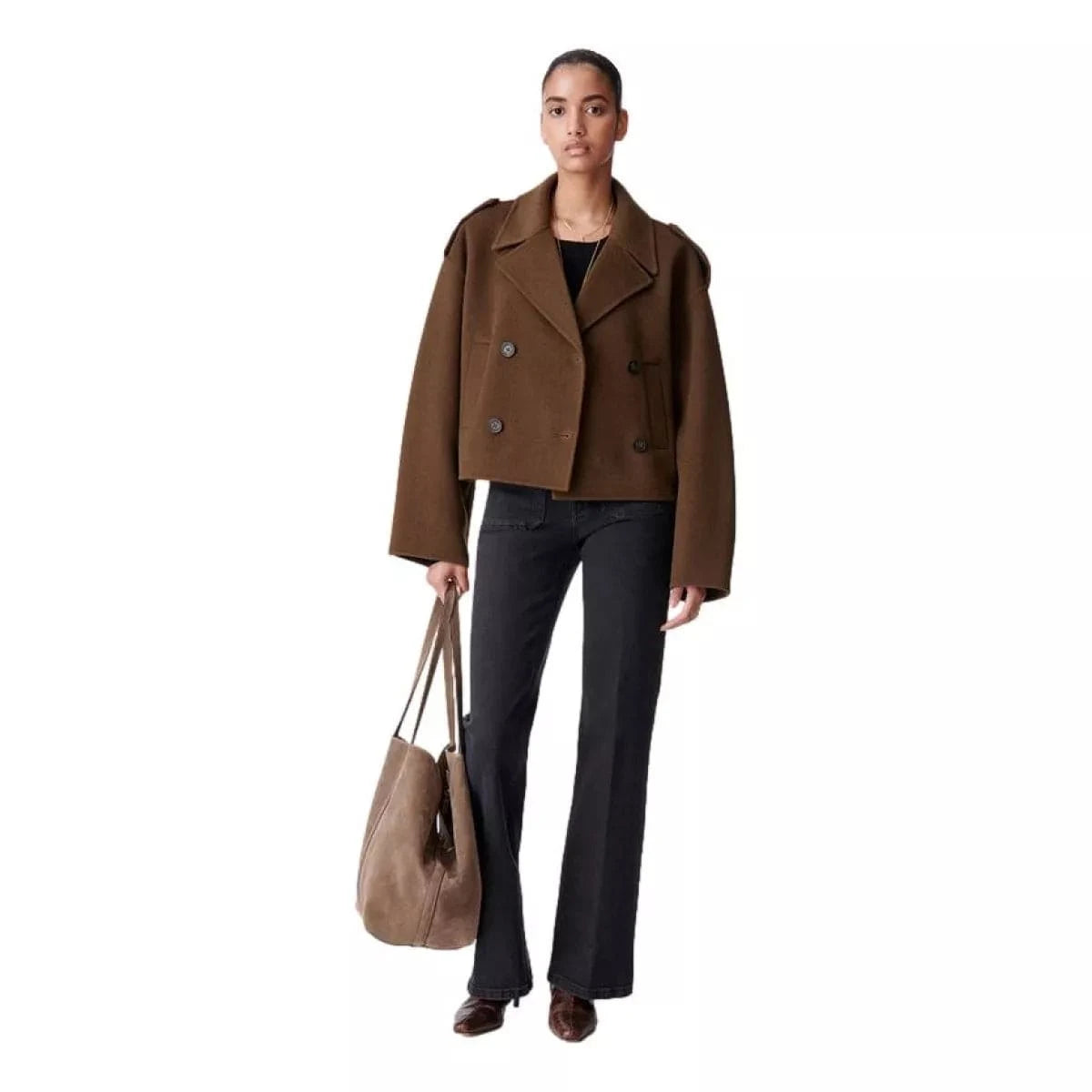 - Details: Uitgerust met schouderklappen, een reverskraag en een dubbele rij knopen, wat bijdraagt aan de militaire esthetiek.