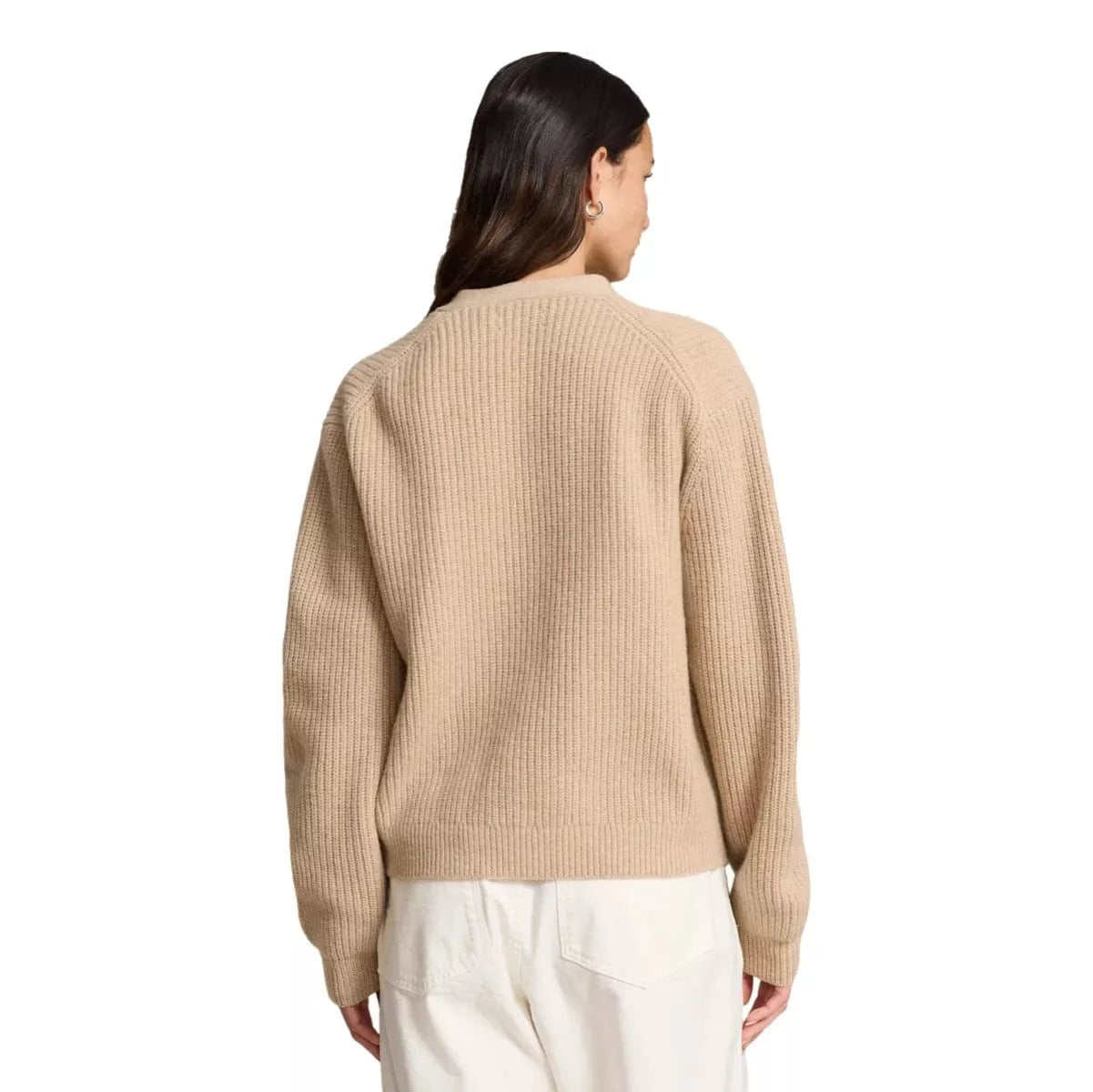 - V-hals. Knoopsluiting. Lange mouwen met ribgebreide boorden.