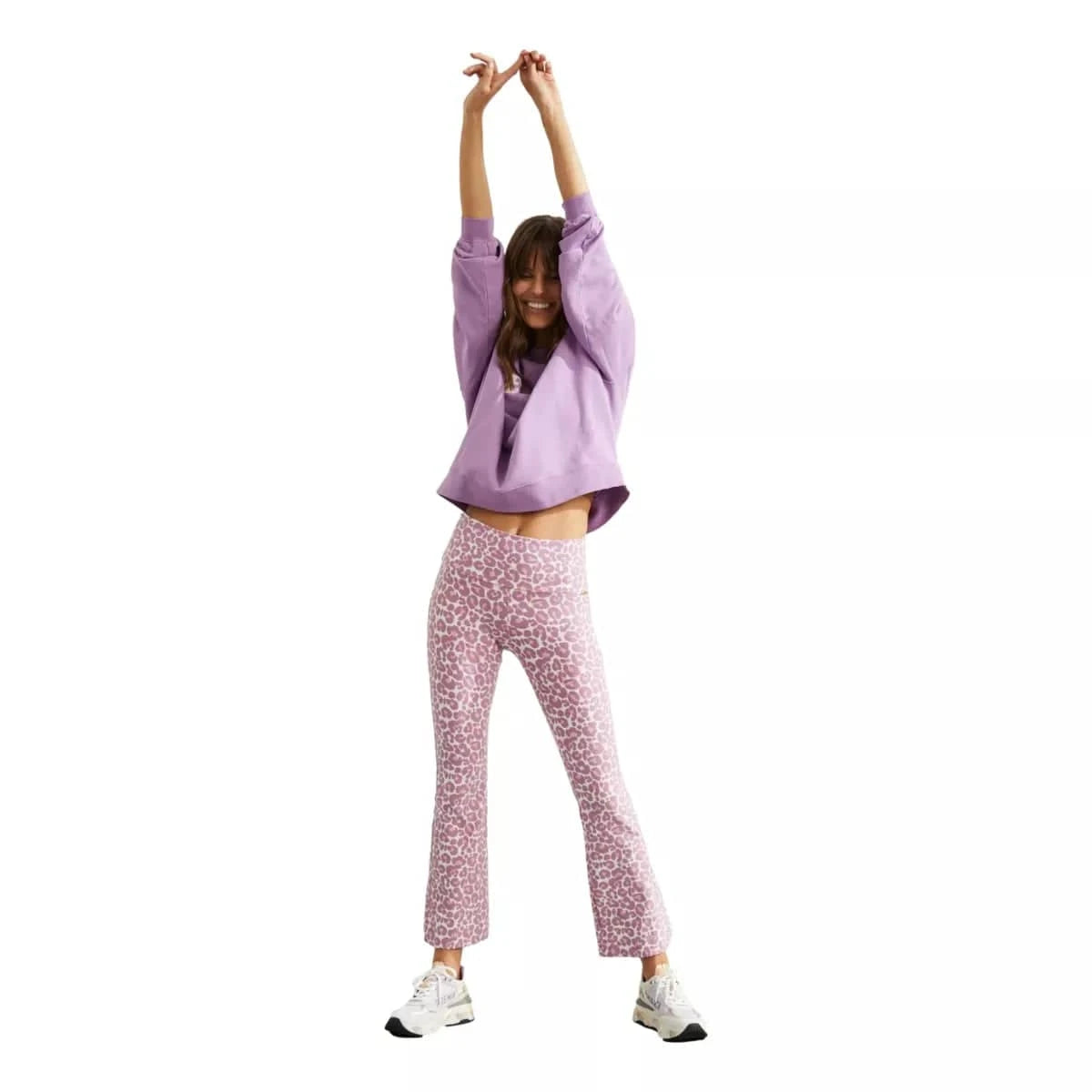 Op de iconische Leopard-print raken we nooit uitgekeken. Onze nieuwe zomerse variant in Dusty Rose geeft je workout als vanzelf een zomers tintje! De Celine Cropped Flared Legging is een iconische klassieker: het flared silhouet maakt sporten elegant en is makkelijk combineerbaar binnen je dagelijkse fashion wardrobe. De hoge dubbellaagse tailleband ondersteunt je core en stroomlijnt je contouren, de elastische naden zijn 100% squat-proof en de subtiel liftende stretch-jersey zit heerlijk comfortabel. Niet alleen fijn tijdens het sporten, maar ook als je een drukke (werk-)dag voor de boeg hebt.