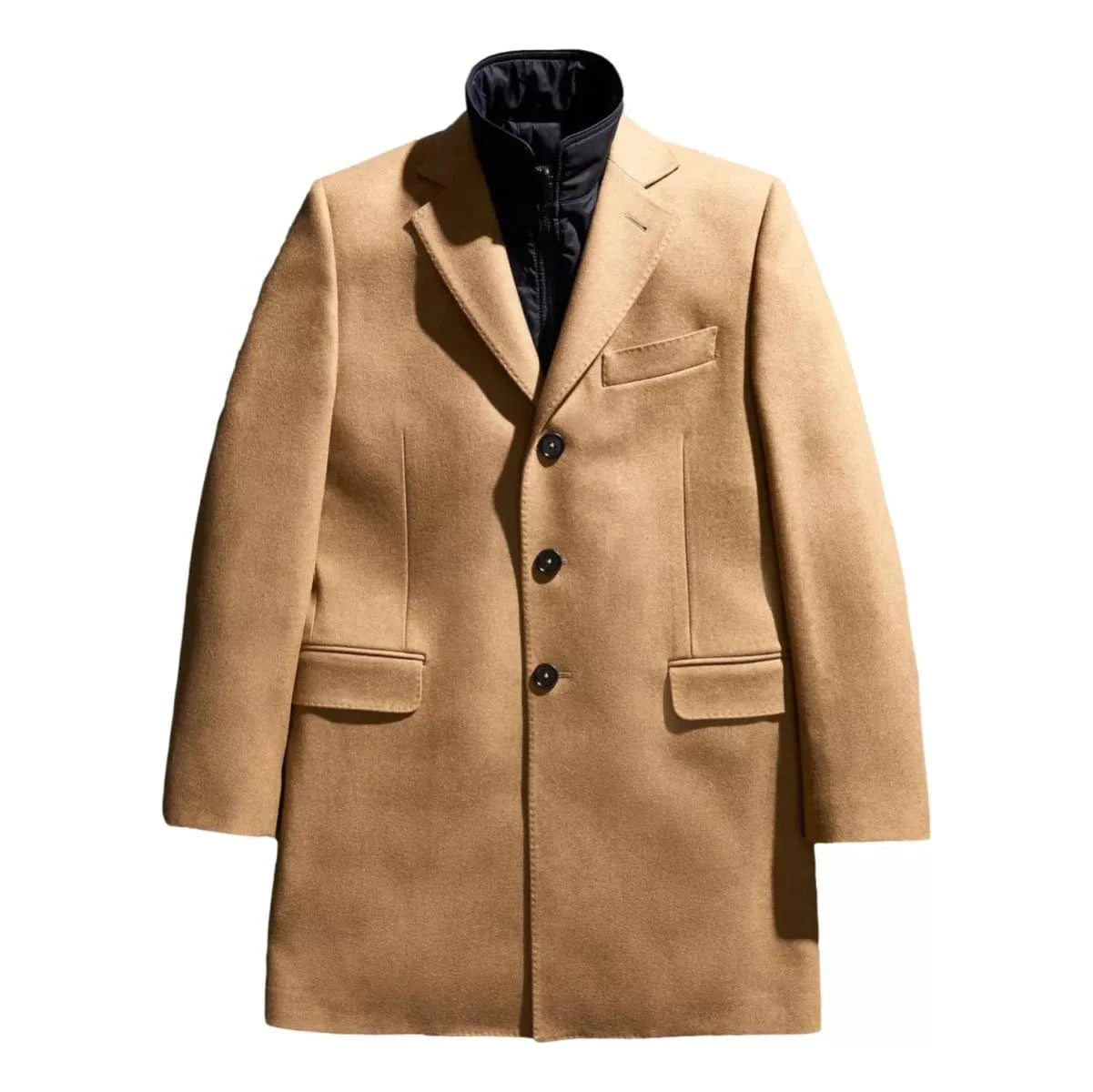 A versatile fusion of tailor-made elegance and functionality, the iconic three-button Double Coat is a must-have in the contemporary gentleman's wardrobe. Crafted in wool blend fabric and cashmere, it comes with a breast pocket, flap pockets and back vent. It incorporates an internal gilet that can be worn individually, padded in ultra-light technical wadding. An internal double pocket completes this garment.