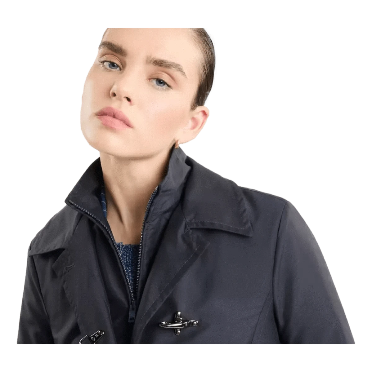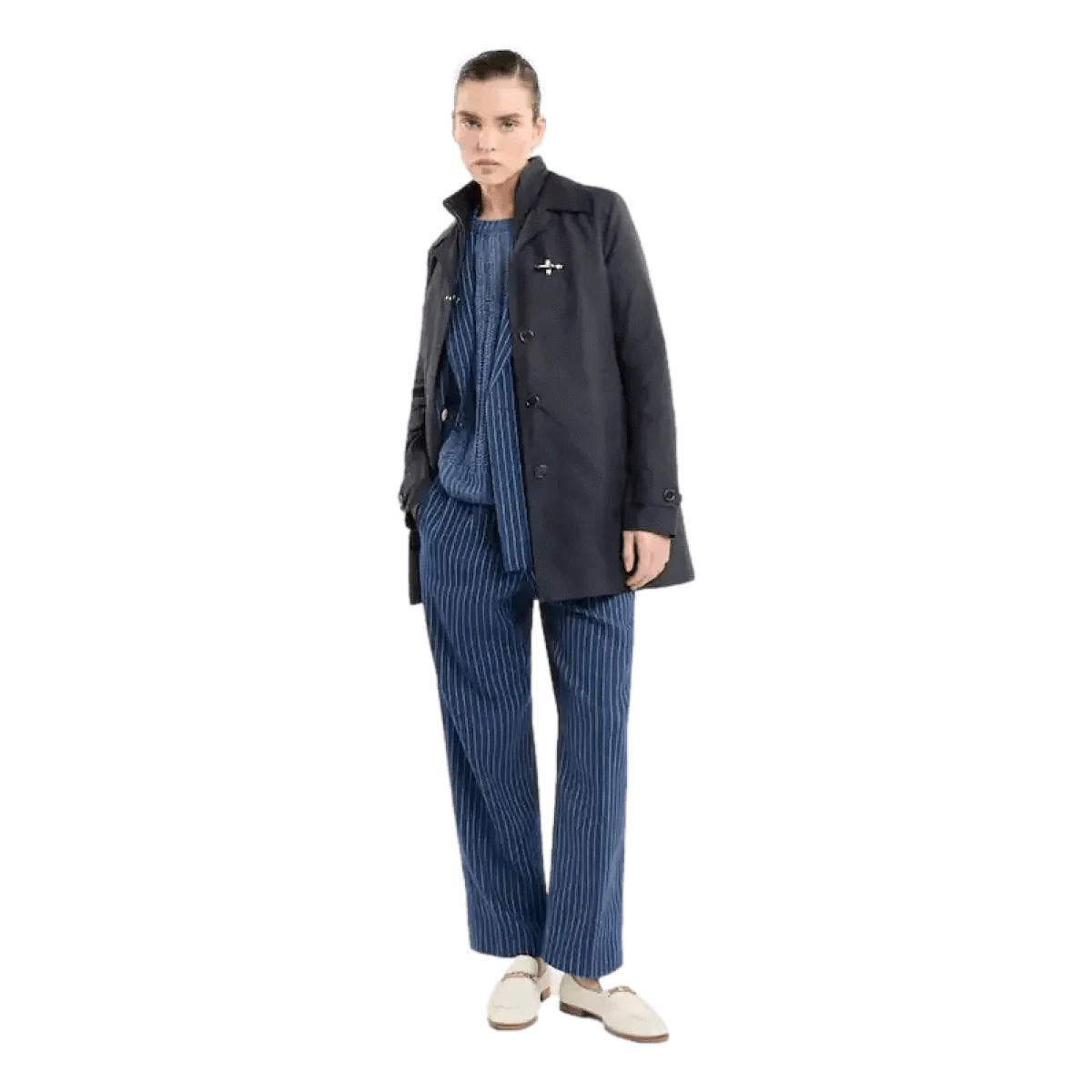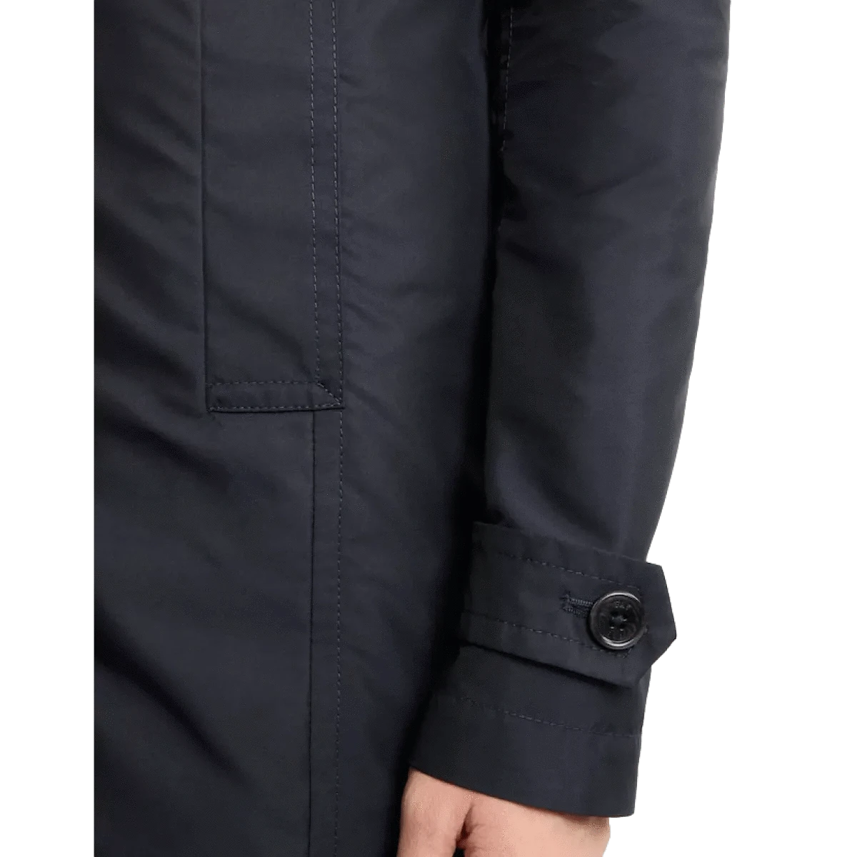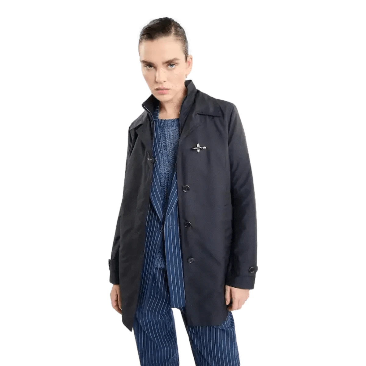 Ochtendjas met dubbele voorkant, gemaakt van technisch poplin met waterafstotende behandeling. Het shirt heeft zakken aan de zijkant, een ritssluiting, een verborgen knoopsluiting en de kenmerkende Fay-haak op de borst.