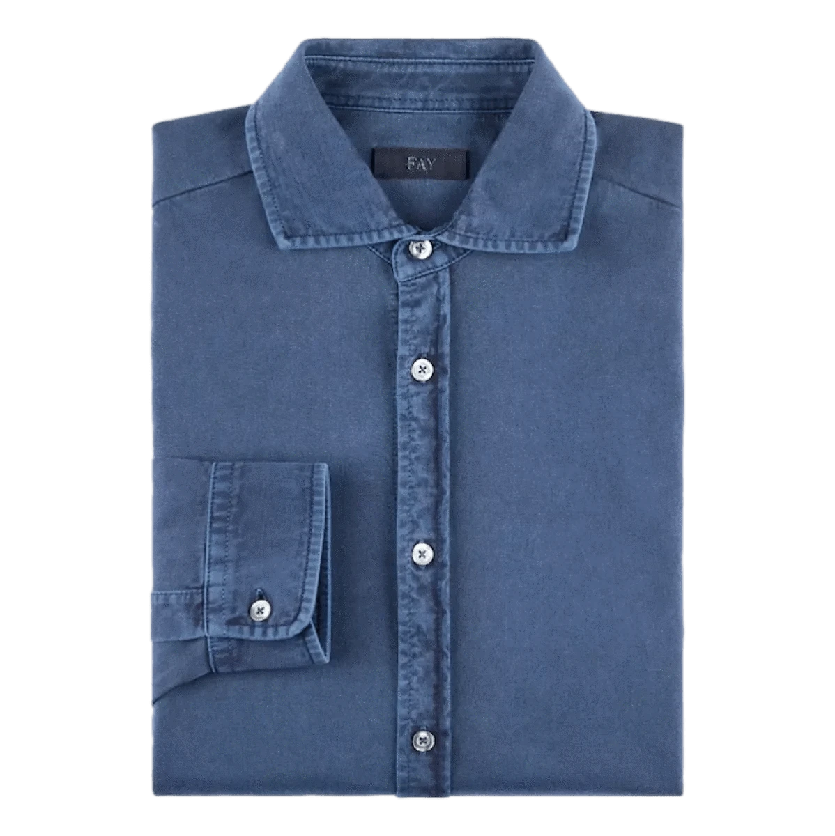 Regular-fit overhemd met Franse kraag gemaakt van katoen jersey. Kenmerkend is de sluiting aan de voorkant en het Fay-logo dat onderaan is geborduurd.