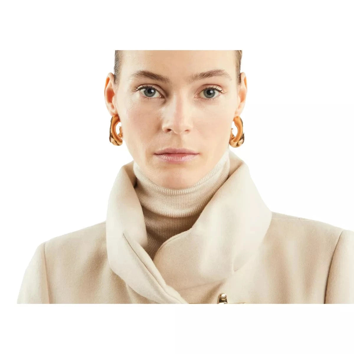 Een romantische herinterpretatie van de iconische Virginia-jas, benadrukt door de brede omslagkraag. Vrouwelijk en veelzijdig met evenwichtige proporties. De jas is gemaakt van een zachte wolmix en wordt gekenmerkt door een empire-lijn en een sluiting met drie haken, geperfectioneerd door verborgen drukknopen.