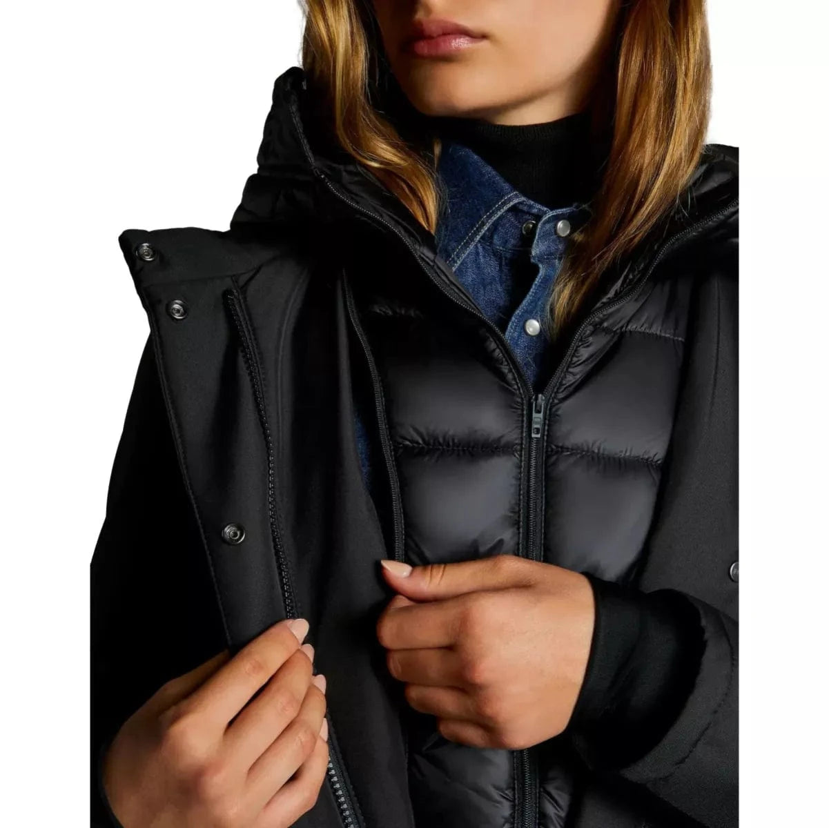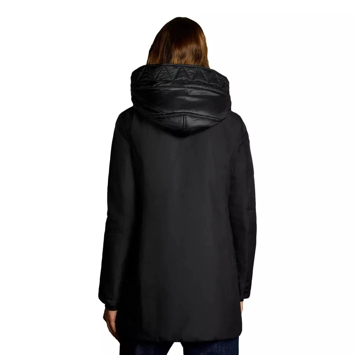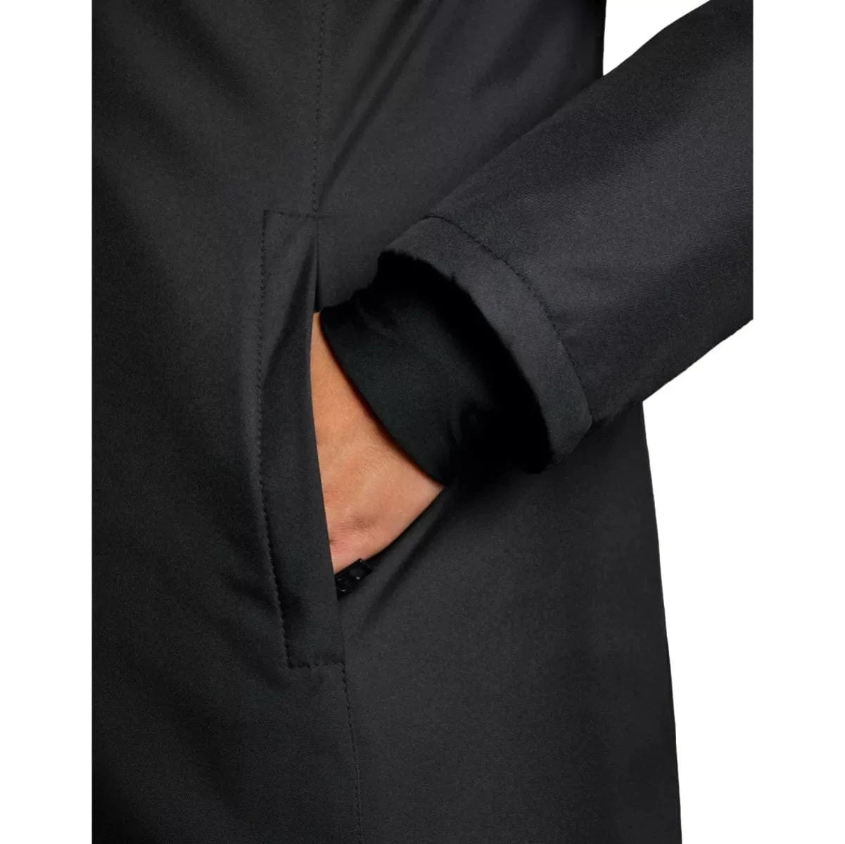 Iconic double front parka in water-repellent technical gabardine with breathable membrane. Characterized by windproof cuffs and zipped welt pockets, it comes with a detachable internal bib with a wide hood and wadding padding. The concealed zip and snap fastening is enhanced by Fay's frog. The interior of the parka is enhanced by the garment's name tag.