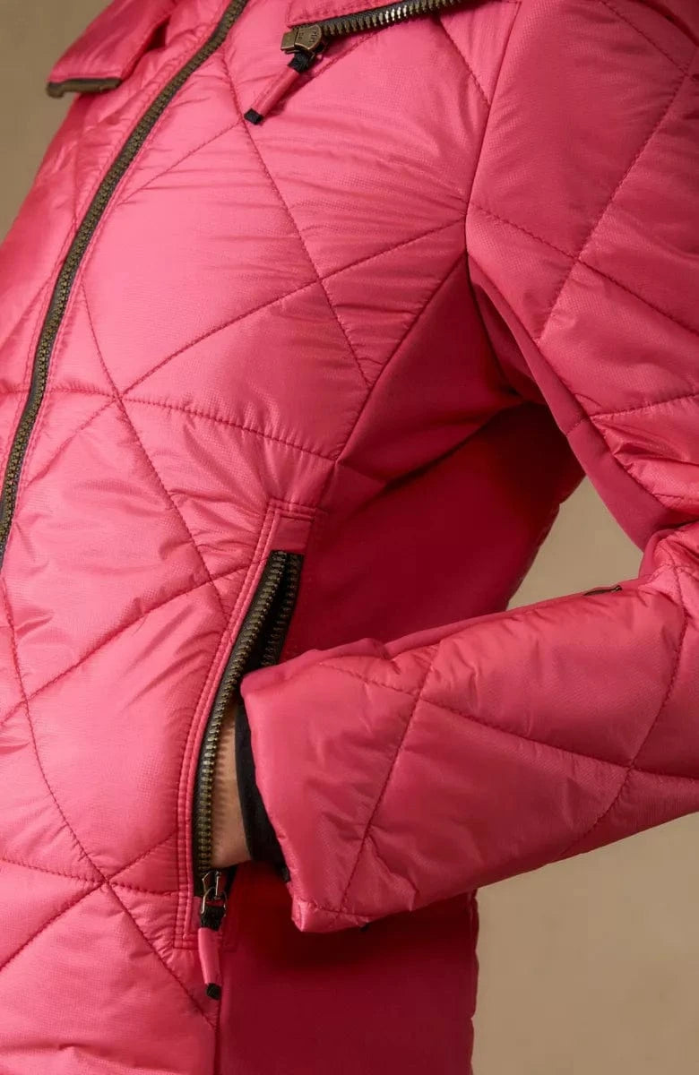 On the slopes, the ski jacket fulfills all wishes thanks to a combination of the elastic, functional material with softshell parts on the sides of the torso and under the arms. Despite the straight cut, you have full freedom of movement. In the valley, too, the diamond quilting impresses with its elegant sporty touch.