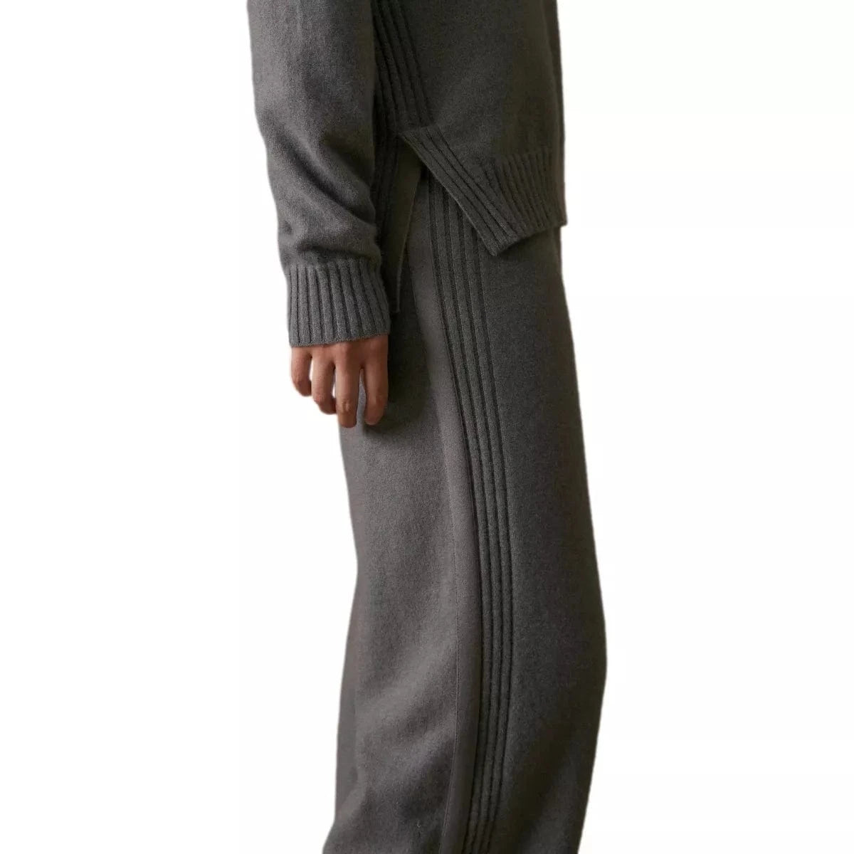 Het kasjmiergaren uit Italië maakt indruk met zijn buitengewoon fijne kwaliteit, donzige oppervlak en unieke draageigenschappen - pure luxe. Designelementen zoals de fluwelen band en het geribde breisel aan de zijkanten en de eenvoudige pasvorm zonder zakken maken deze Frauenschuh Kasjmier Broek in grijs tot een elegante metgezel voor werk, dagelijks gebruik en vrije tijd. We raden aan het product met de hand te reinigen. Na het wassen of schoonmaken moet het product aan de lucht drogen op een glad oppervlak.