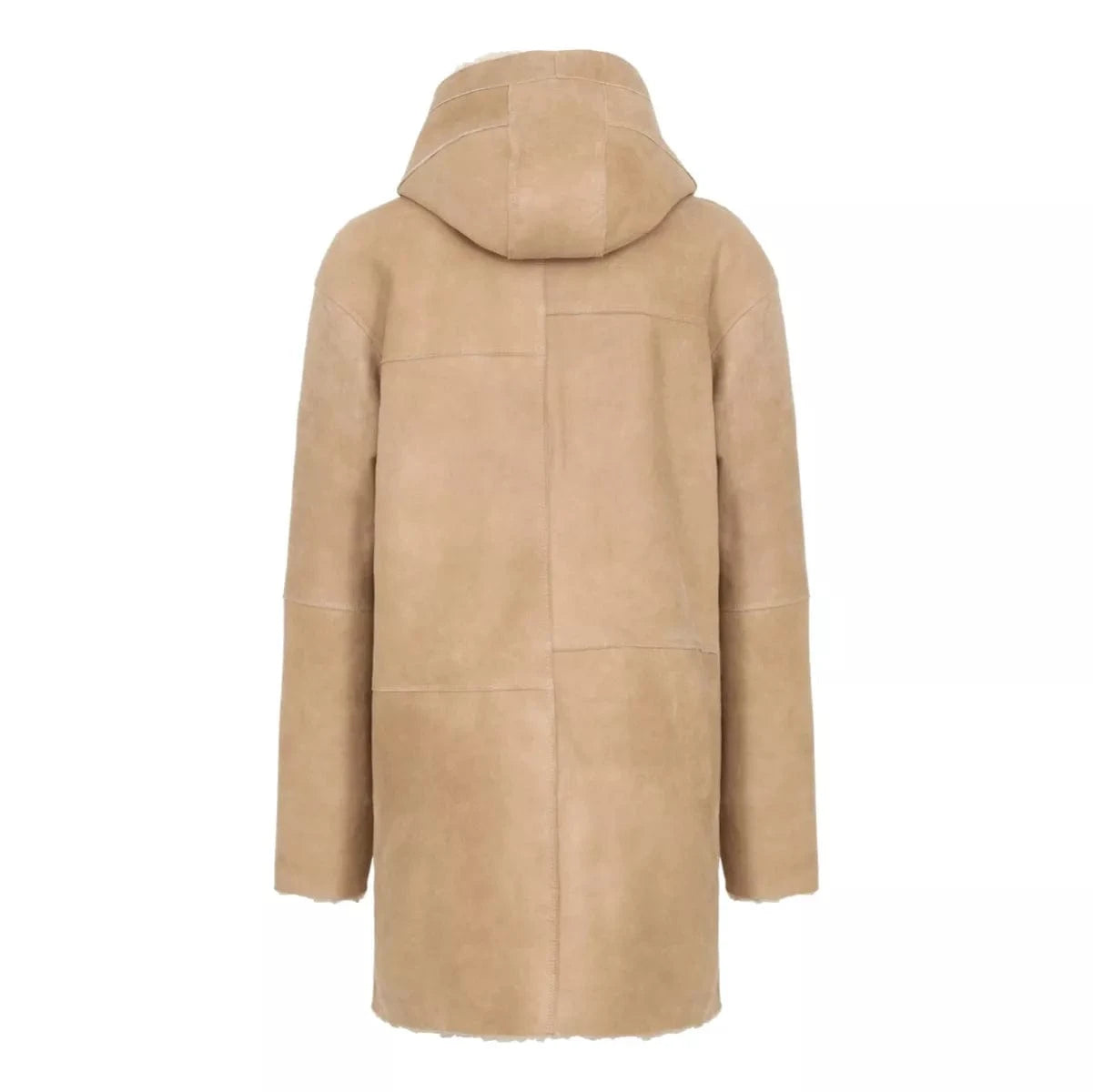 You can wear this lambskin parka two ways: with the fur to the outside or reversed in an instant and with the smooth leather to the outside. Thanks to its reversible feature, this parka is effectively a 2-in-1. Spacious, very practical pockets are provided on both sides: on the smooth side with access from the side, very distinctive on the fur side with access from the top. Strikingly large metal press studs, sewn on by hand, are a distinctive design element in addition to the offset cross-seams on the back.