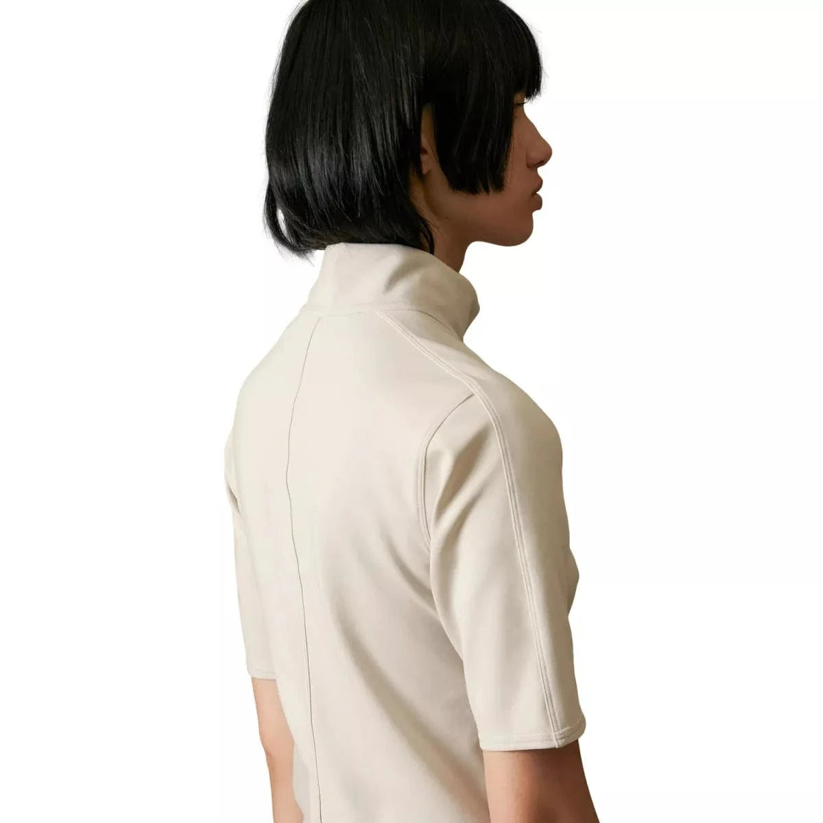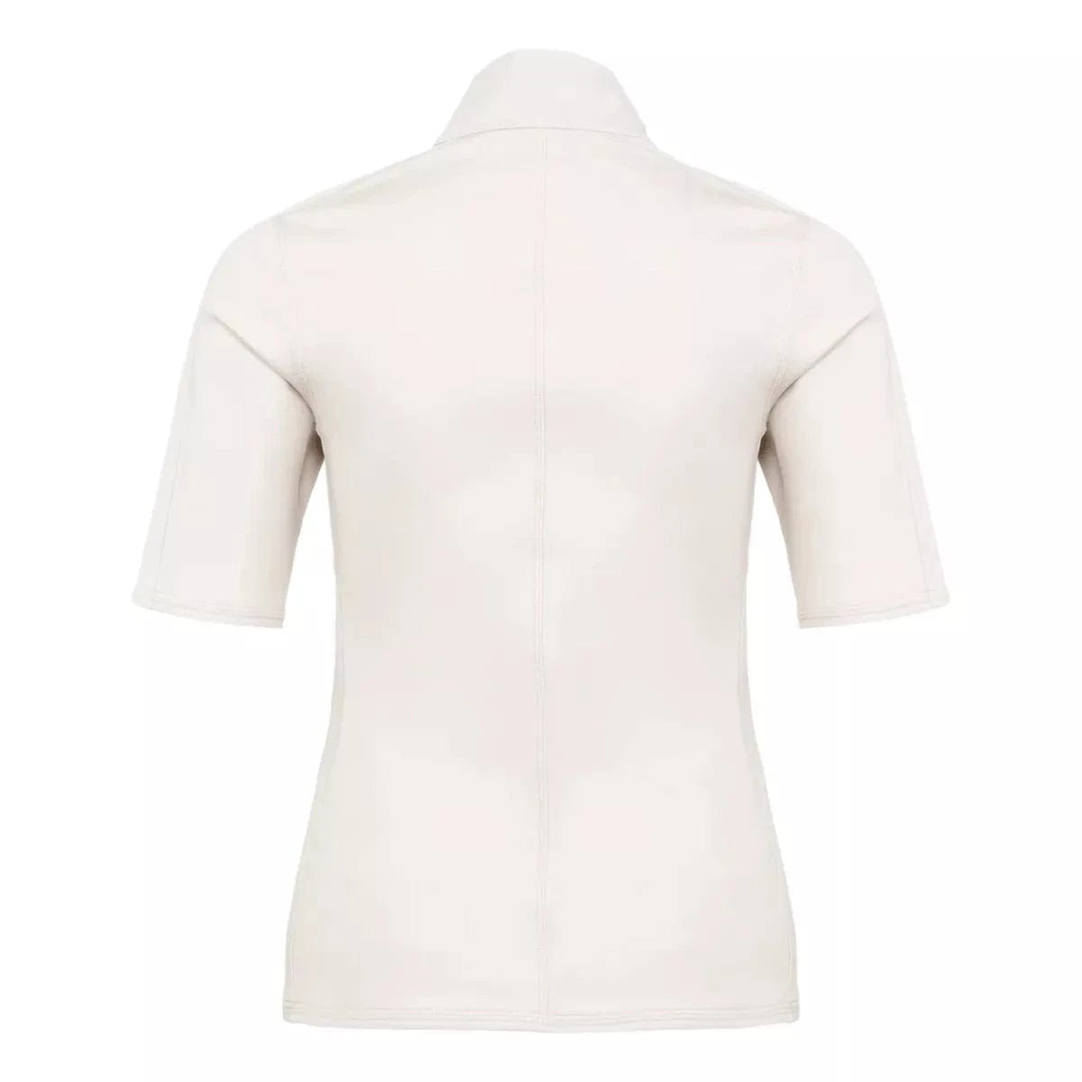 Het sportieve shirt voor in de vrije tijd ziet er aan de buitenkant glanzend en chique uit, terwijl de binnenkant van mat katoen comfortabel tegen de huid aanvoelt. De opengewerkte naad benadrukt de vrouwelijke pasvorm en maakt de klassieker tot een allrounder die dit seizoen ook perfect past bij leren broeken en rokken.