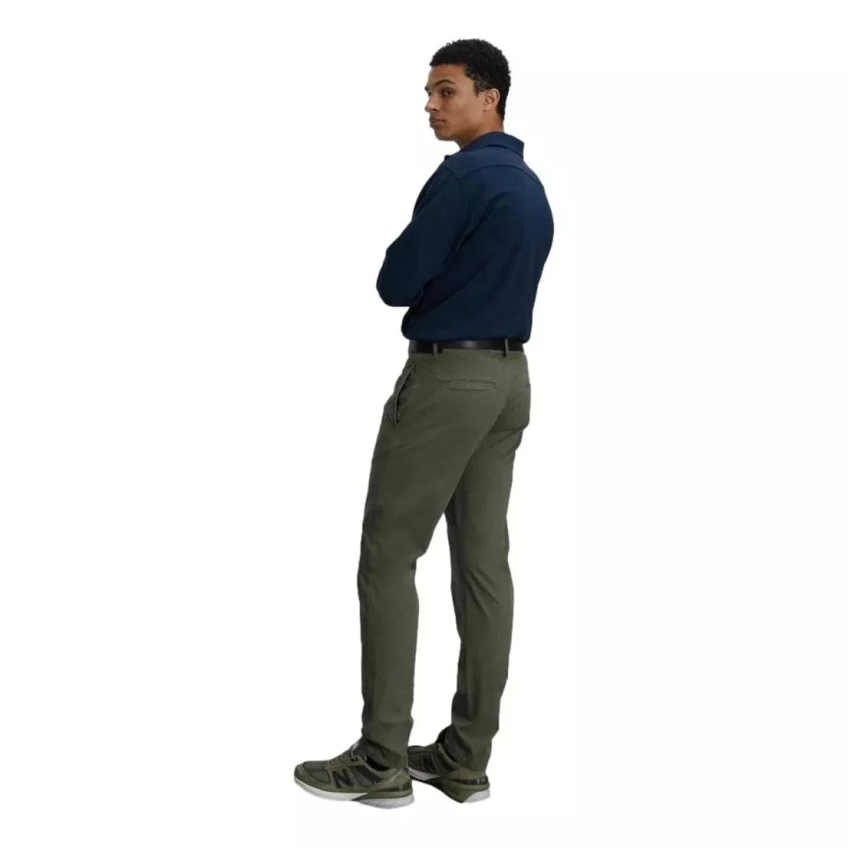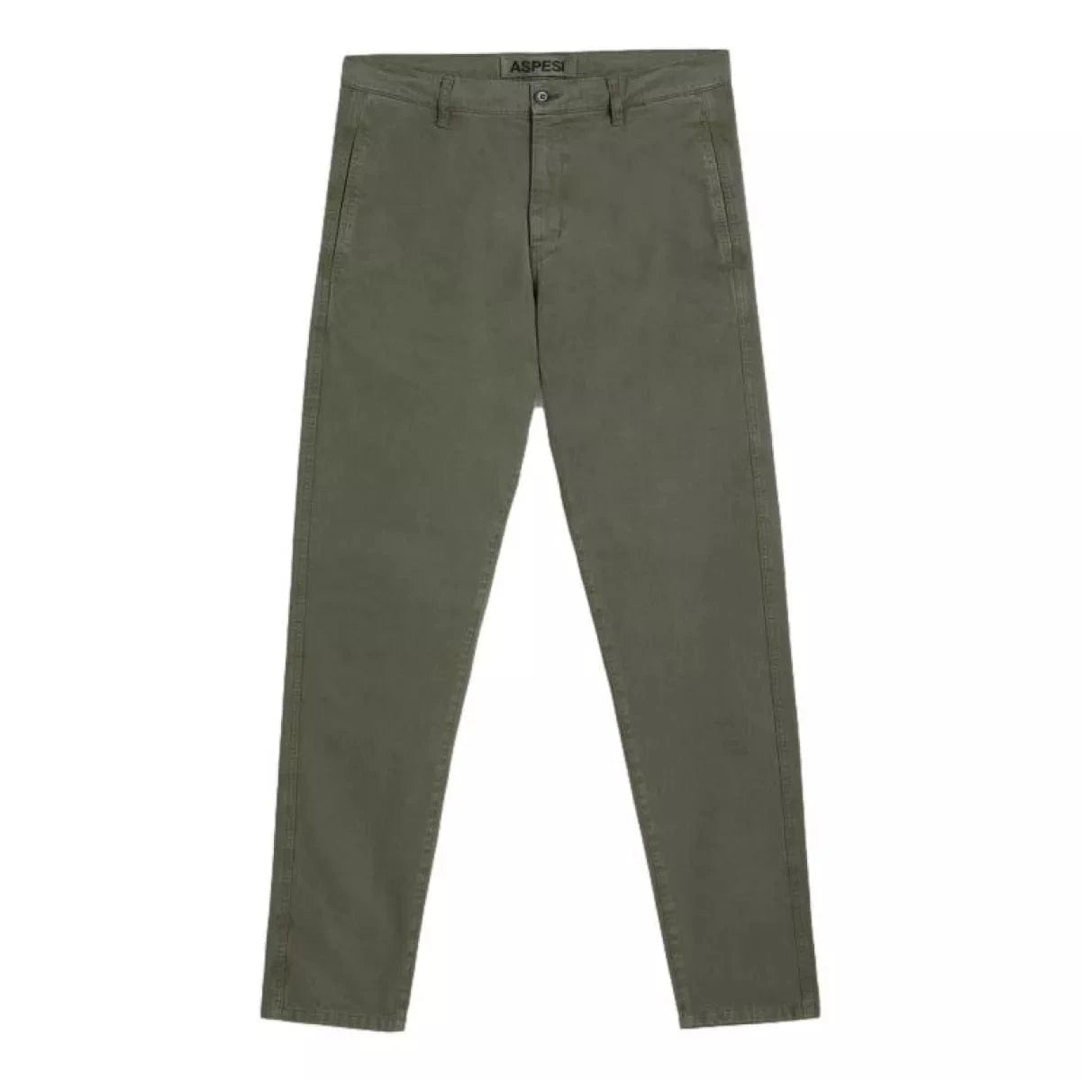These heavy cotton gabardine chinos have been micro-frosted, garment-dyed and stonewashed for a more relaxed look. Details include a zip and button fastening, internal drawstring at waist, side seam front pockets, back welt pockets, military tape loop, embroidered ASPESI detail and a narrow hem. Cut for a regular fit.