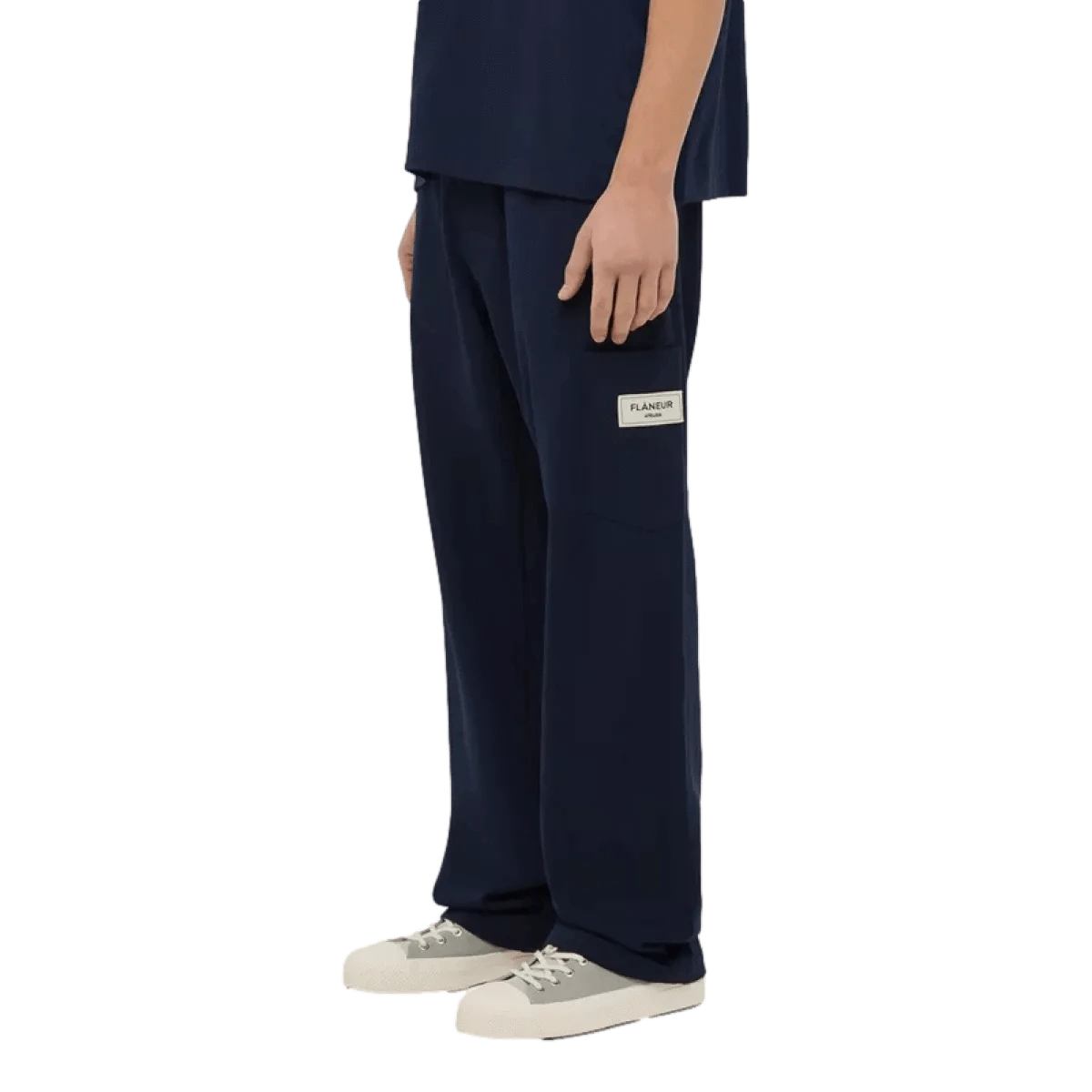 Op maat gemaakte broek met FLÂNEUR atelier patch. Onze naleving van de GOTS-certificering garandeert een milieuvriendelijke en sociaal verantwoorde productie, van grondstoffen tot etikettering, en toont onze onwrikbare toewijding aan duurzaamheid en kwaliteit.
