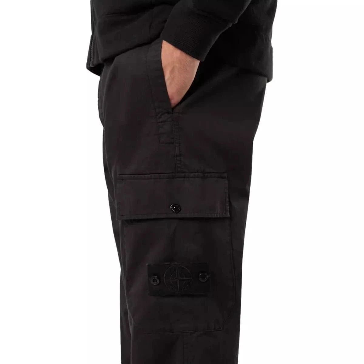 De stukken van Ghost zijn gebaseerd op het concept van camouflage en zijn volledig monochroom. Zelfs hun Stone Island-badge is gemaakt in een speciale monokleurige versie om op te gaan in het kledingstuk. Cargo broek van stretch katoensatijn. Geverfd kledingstuk.