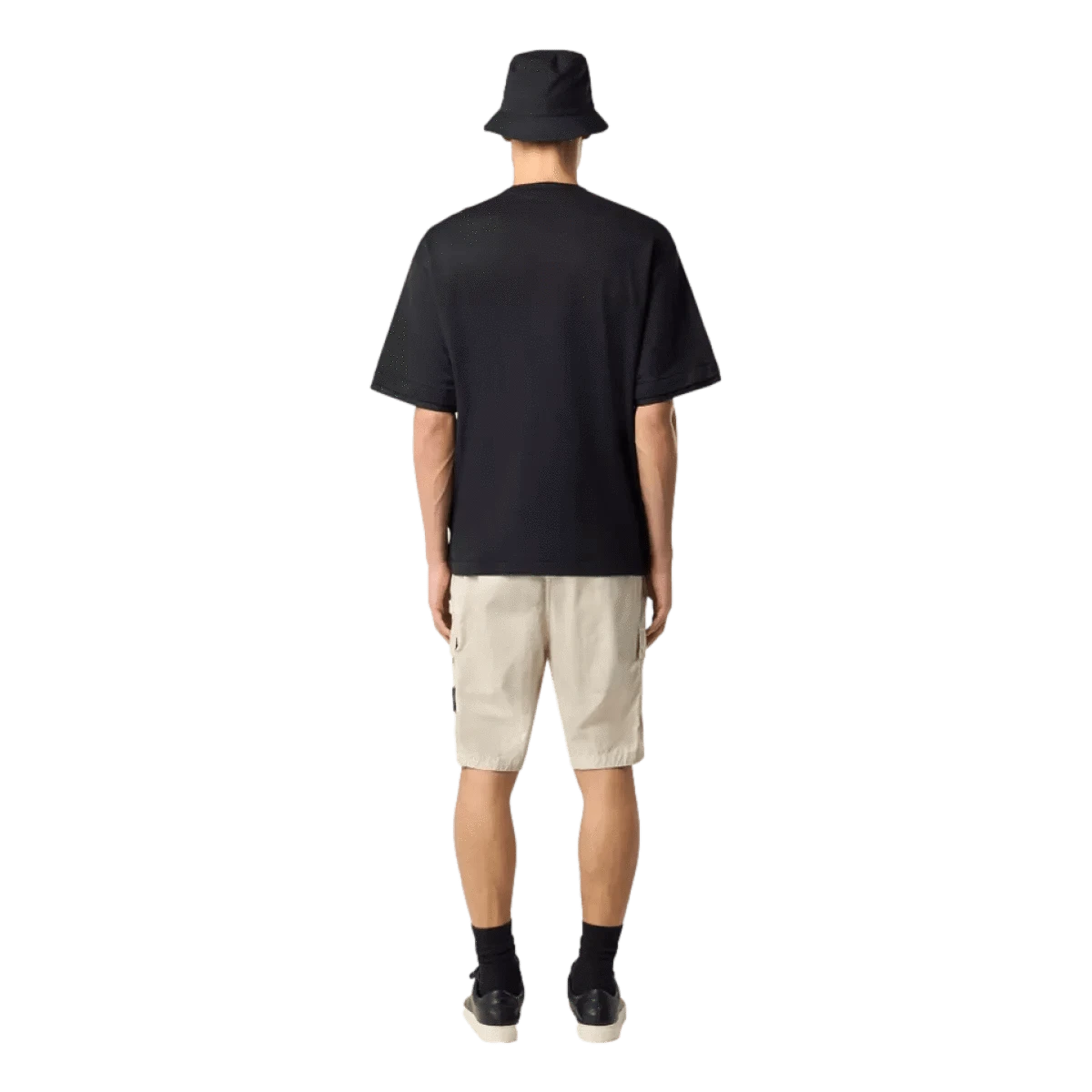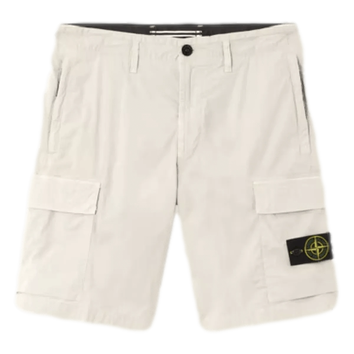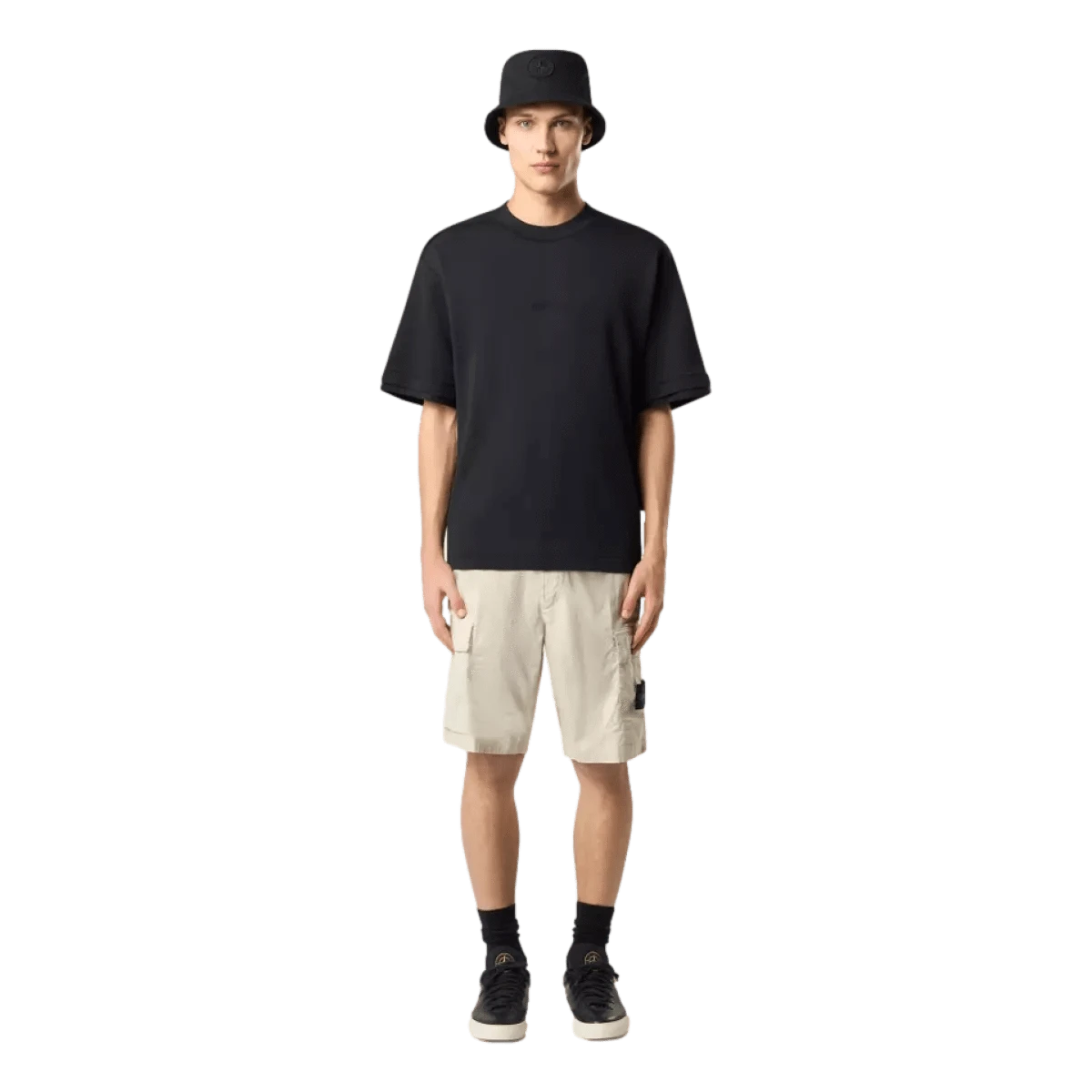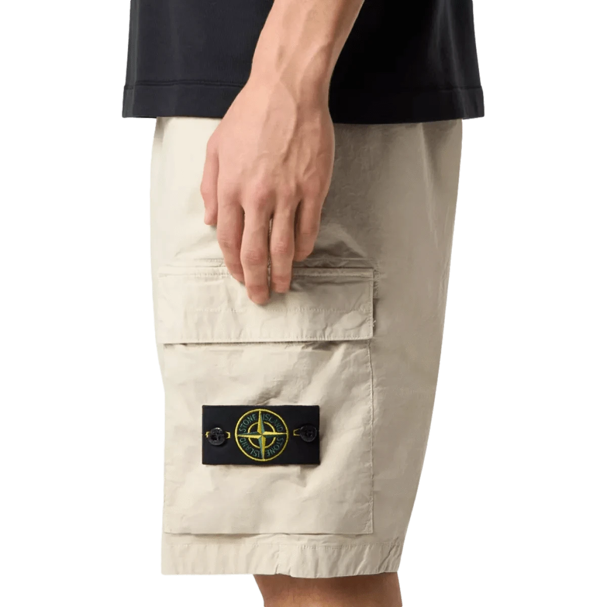 - Plooizakken op de pijpen met klep en verborgen drukknoopsluiting; de linkerzak is voorzien van het Stone Island-embleem.