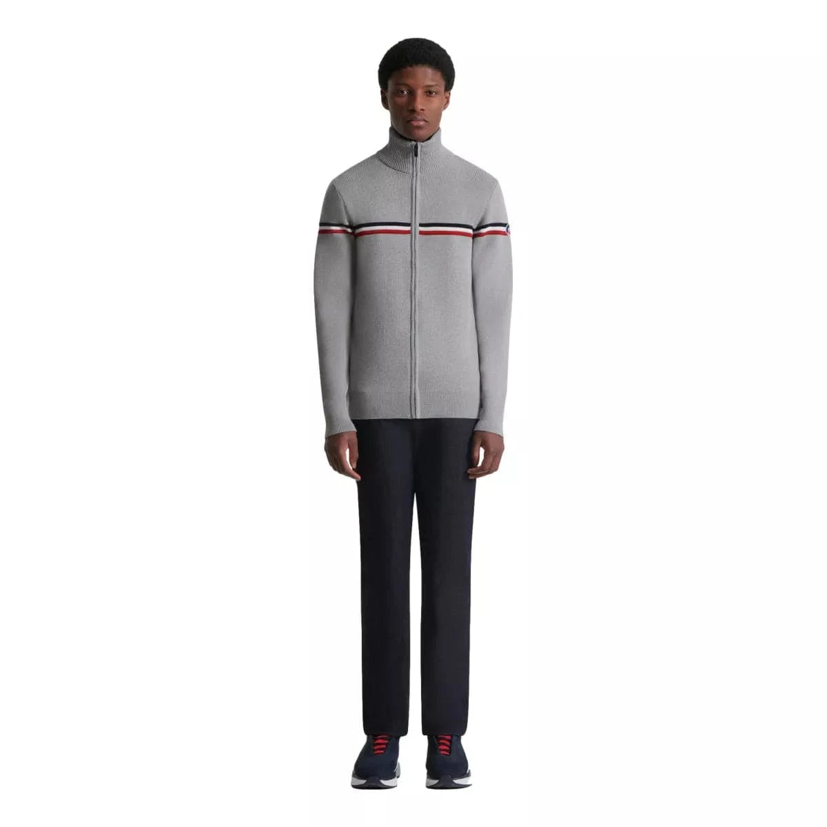 The Fusalp Wengen Fiz Cardigan is inspired by the Fusalp signature esthetic: Heritage colors, a tricolor band and a high collar. Crafted in a chunky merino yarn, the zipped cardigan is a versatile creation that pairs easily with the entire collection. A staple design of a men’s wardrobe.