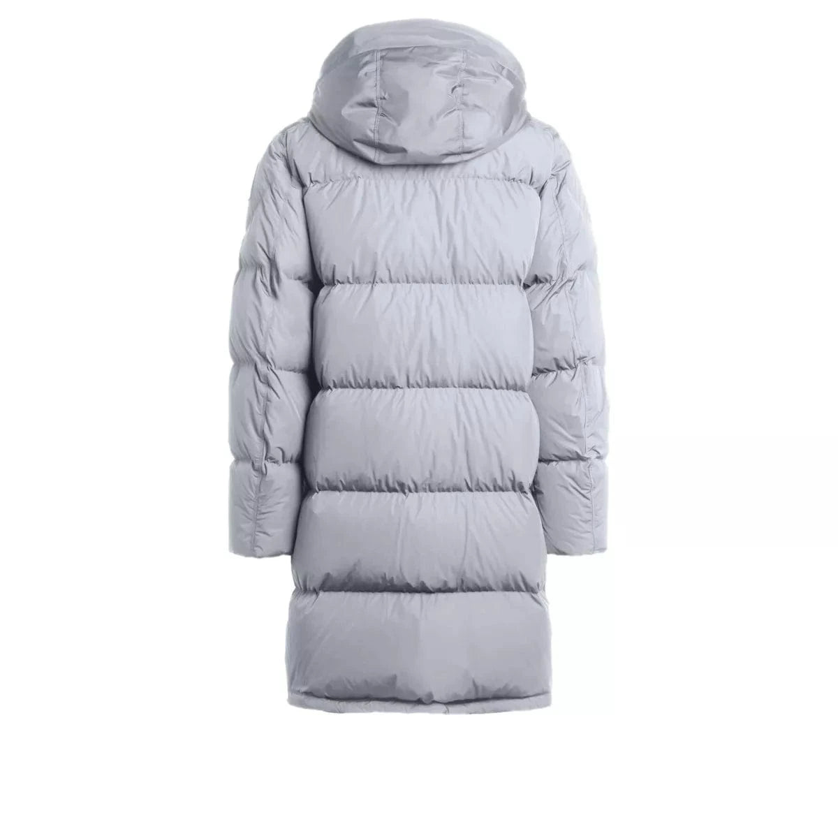 It's so soft and warm, giving you duvet vibes all day long. Long Bear is a padded long coat with an oversize fit and an urban edge.This jacket has a hood adjustable by means of drawstring and two-way front zipper with button-up storm flap. Four front snap flap handwarmer pockets. On the inside, two mesh pockets and one zippered. Ribbed cuffs and inner collar, zippered side slits. It features iconic details such as the yellow tape and the patch. The fabric is a high density polyster micro reps with memory effect and water-repellent treatment. Filling is 90/10 down and feathers.