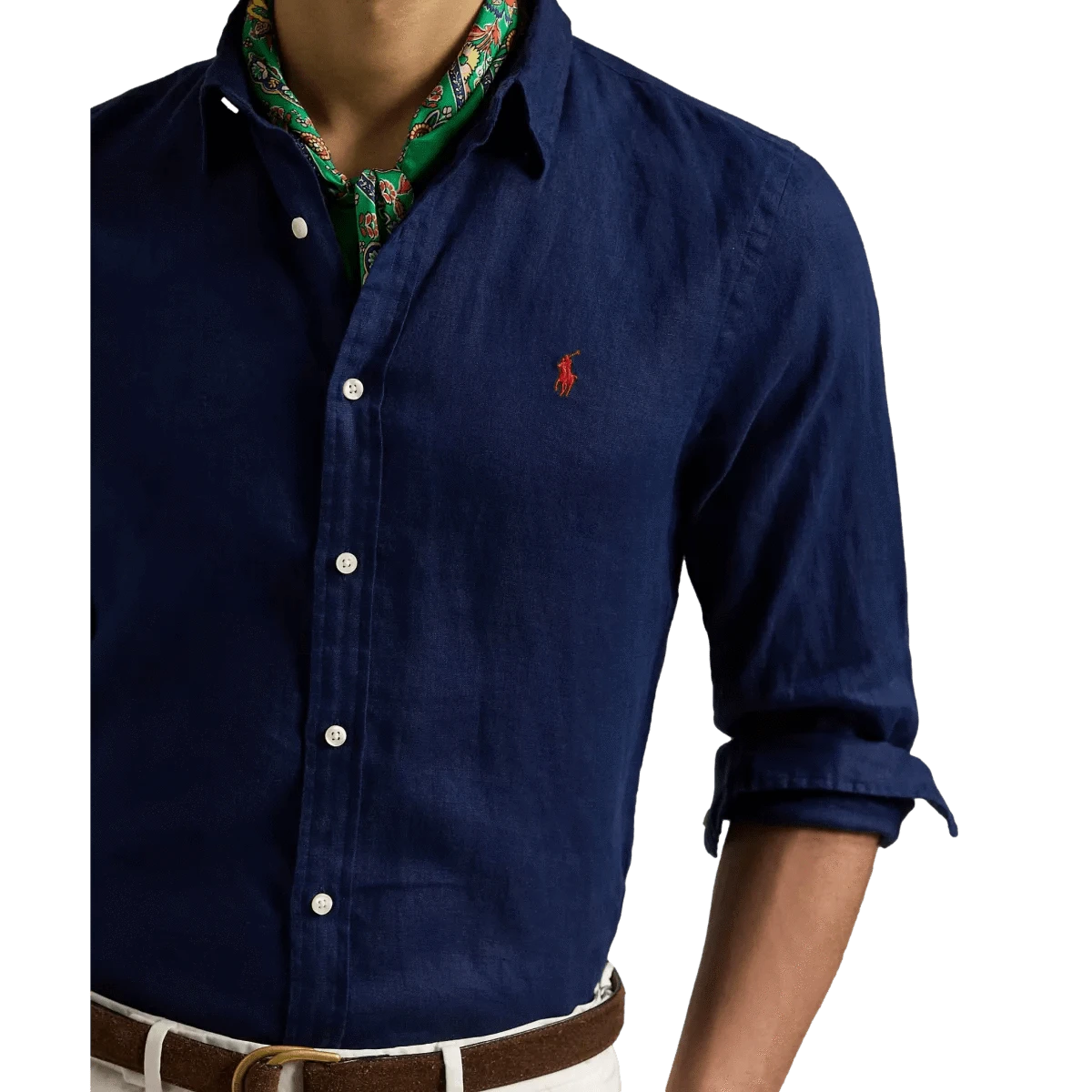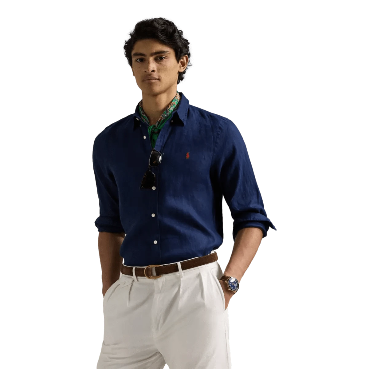Polo Ralph Lauren Linnen Overhemd Marine - Match Laren