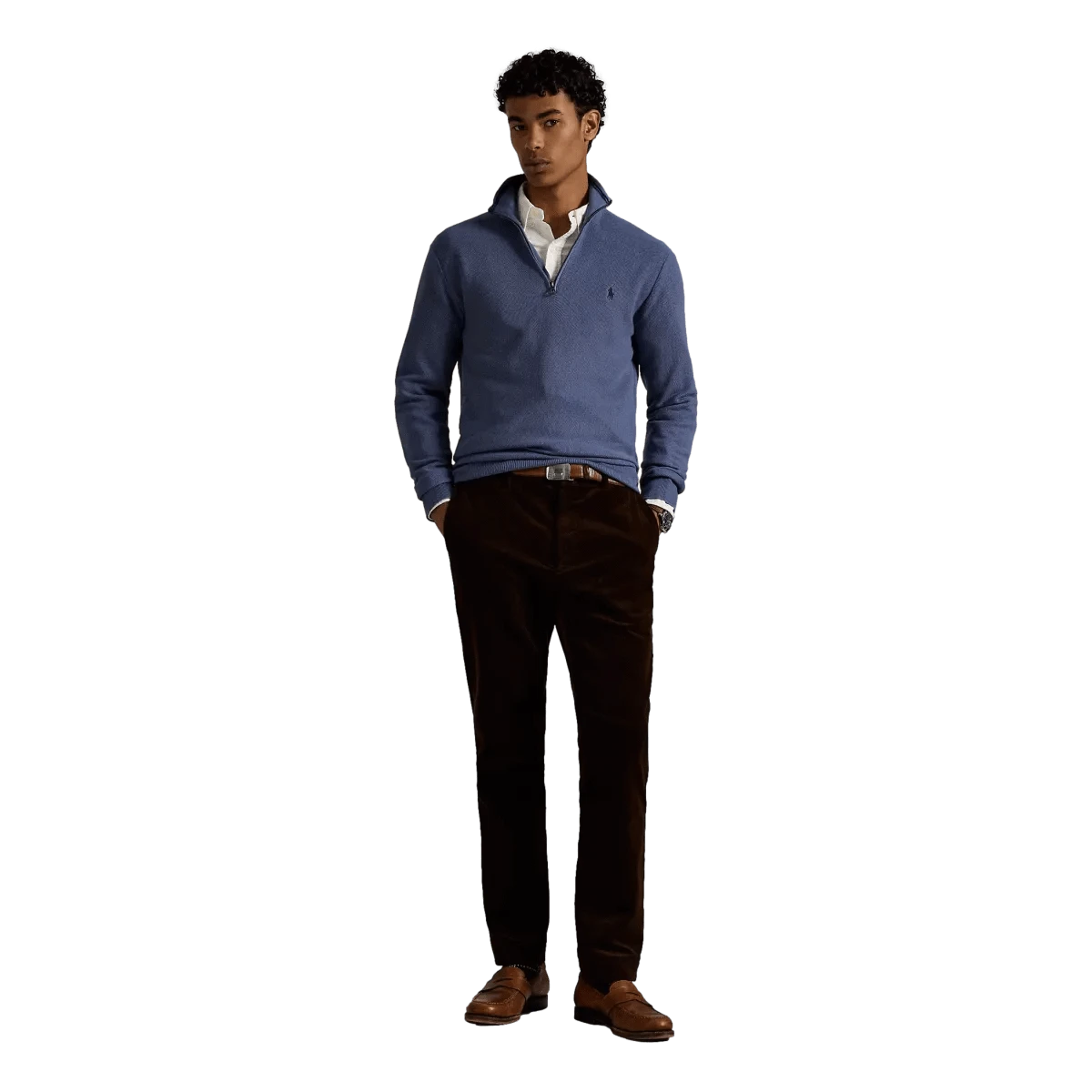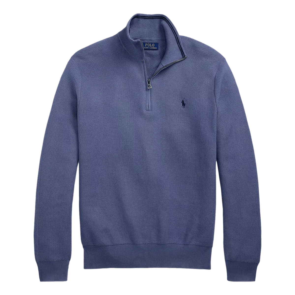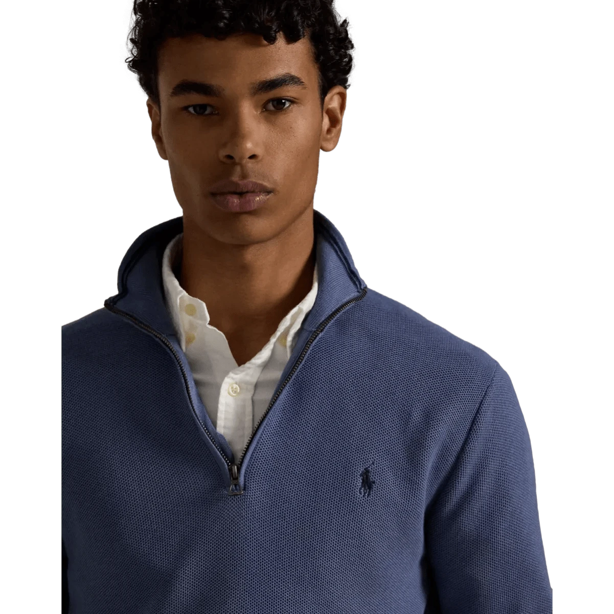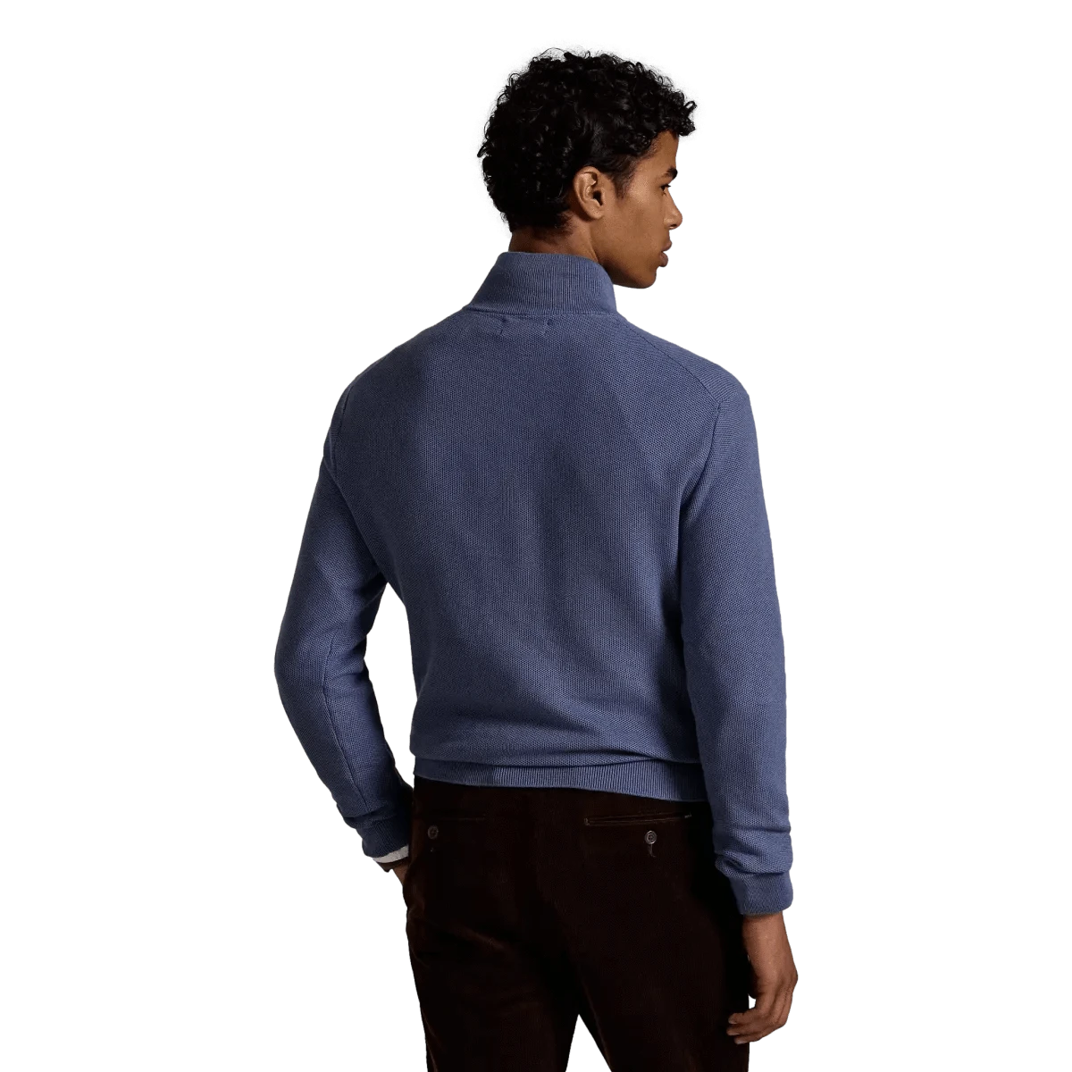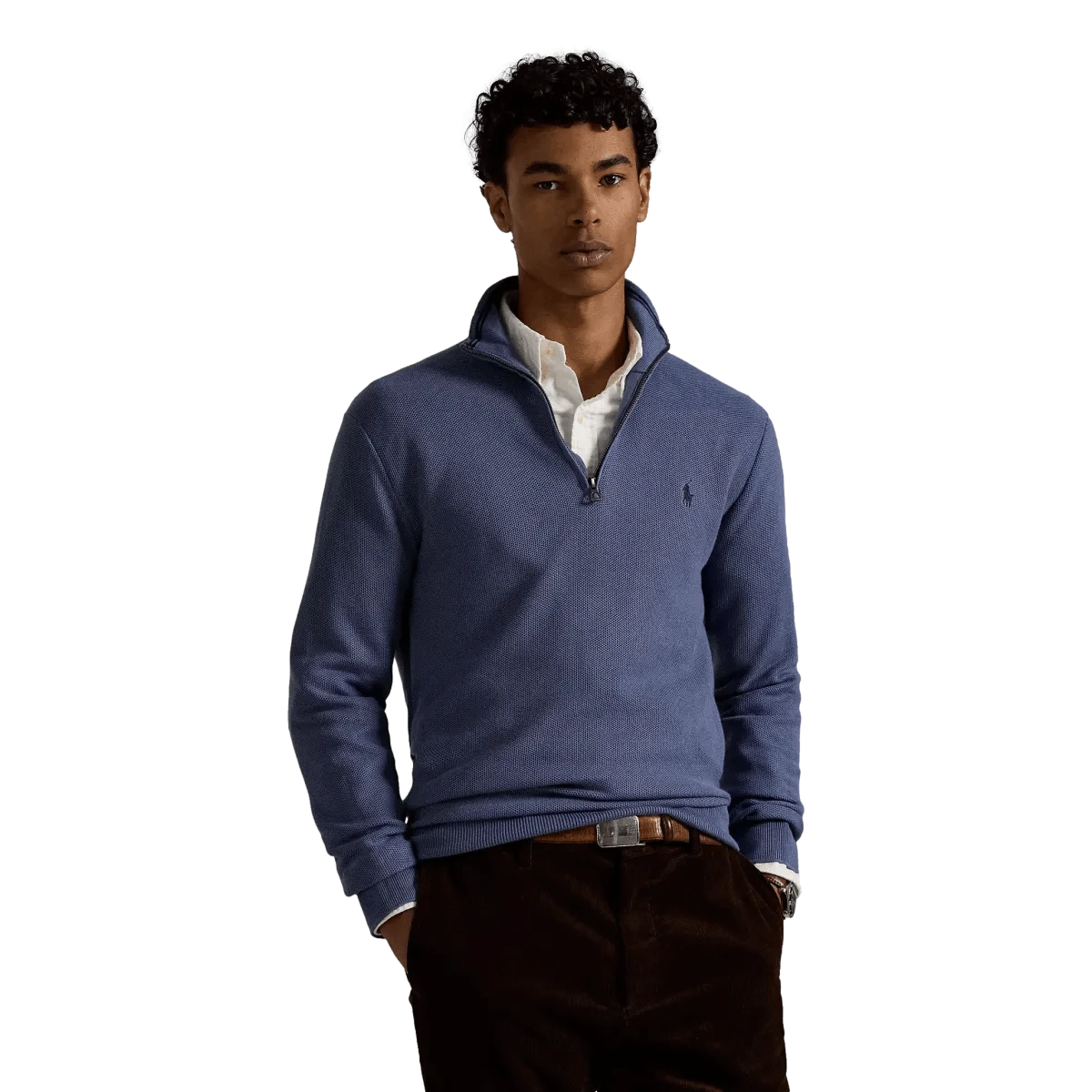 Polo Ralph Lauren Mesh-Gebreide Katoenen Trui Met Rits Jeans Blauw - Match Laren