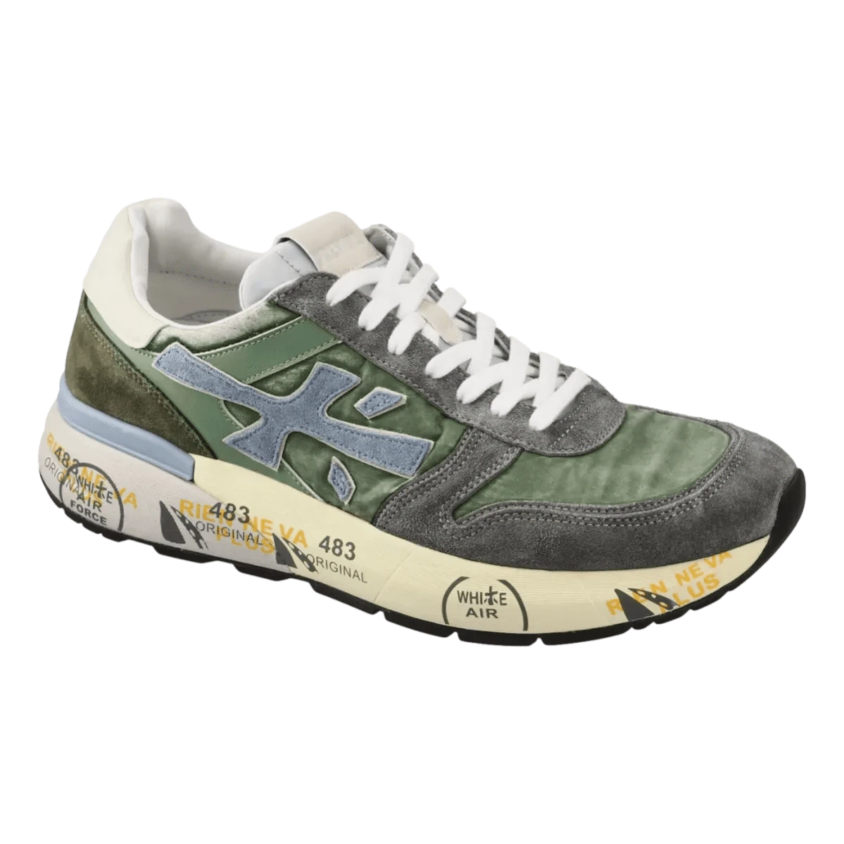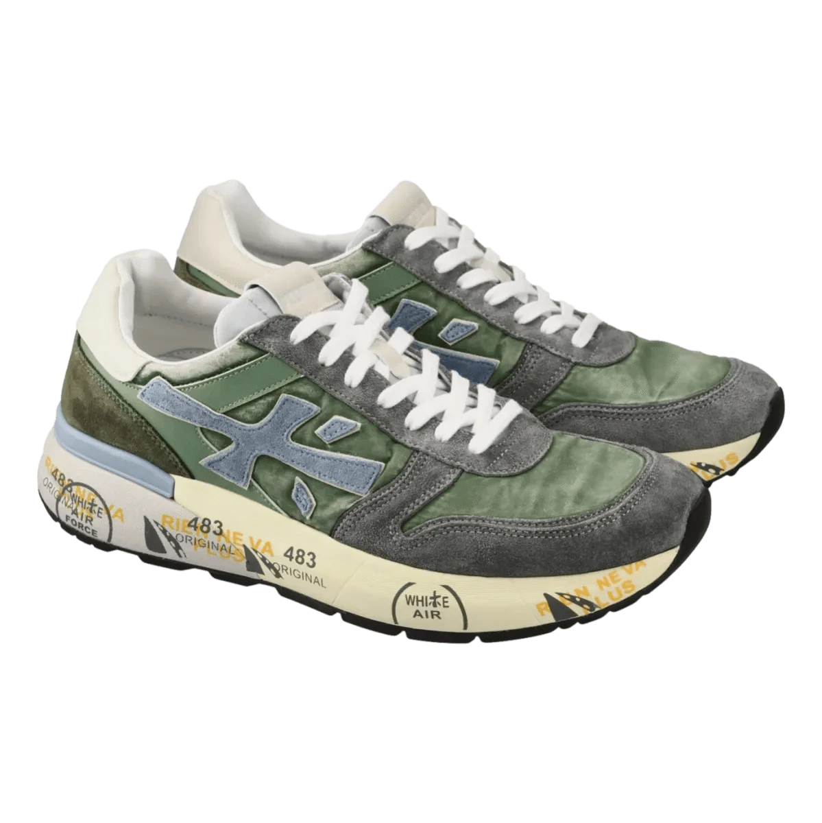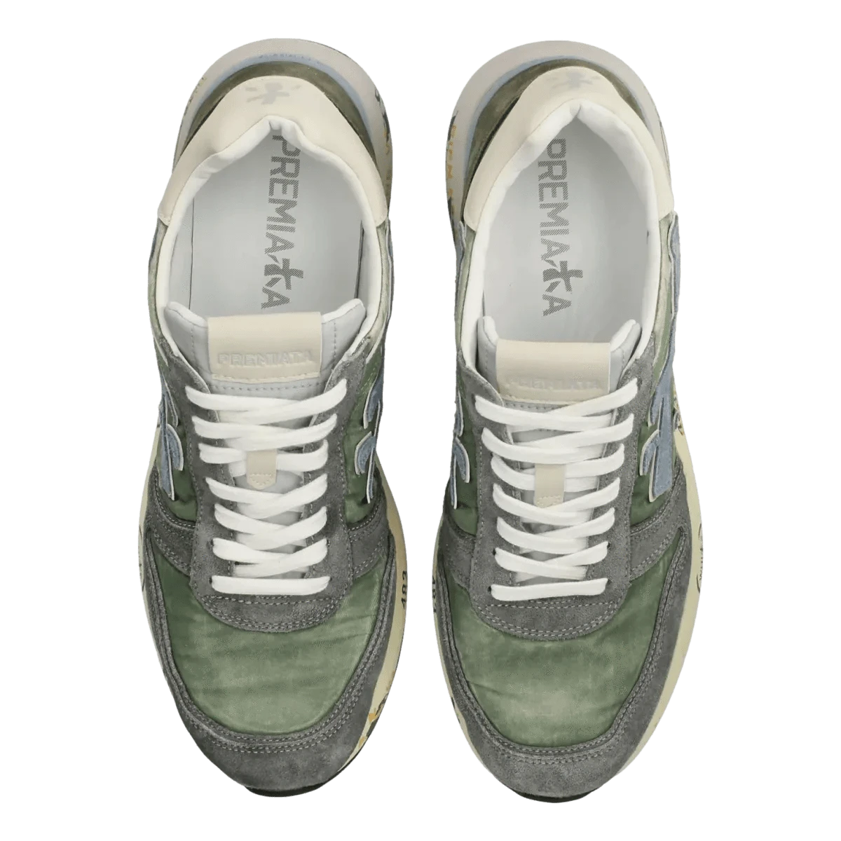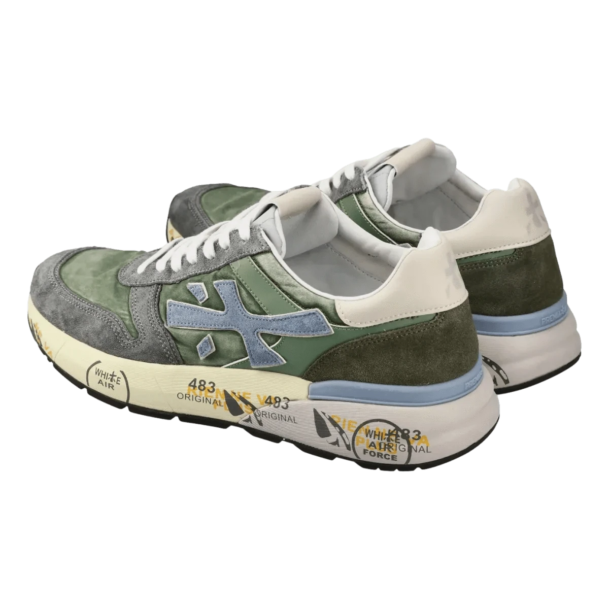 De Premiata Mick lage sneakers in het groen zijn een perfecte combinatie van Italiaans vakmanschap, stijl en comfort. Deze sneakers vallen op door hun unieke materiaalgebruik, waarbij suède, leer en technische stoffen op een elegante manier worden gecombineerd. De groene kleur geeft de schoen een frisse, sportieve uitstraling, terwijl subtiele details en een robuuste zool zorgen voor een moderne look die zowel casual als verfijnd oogt.