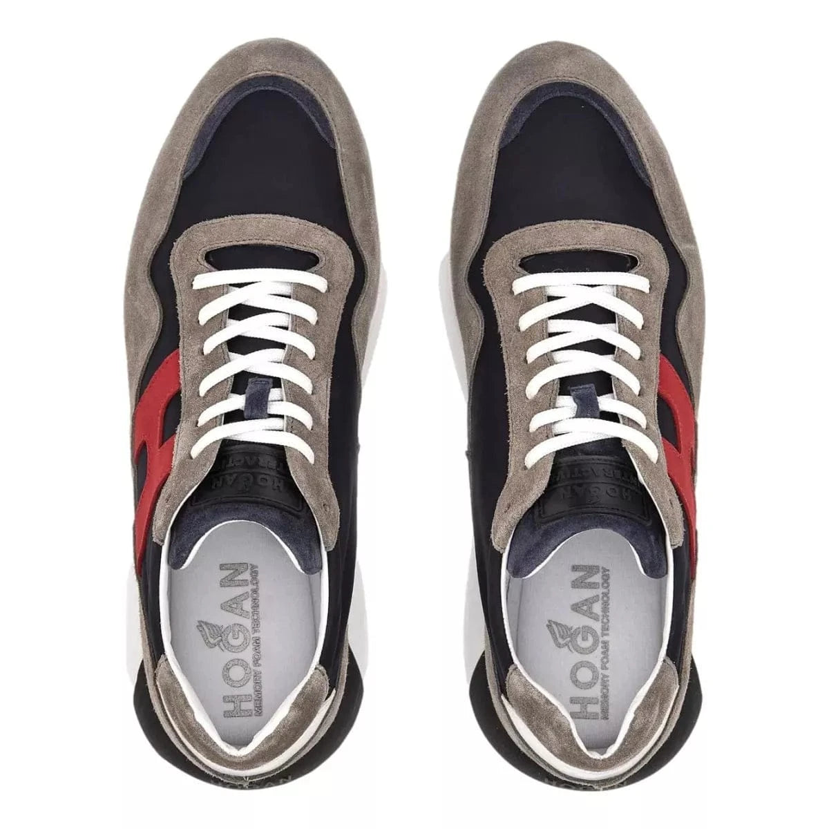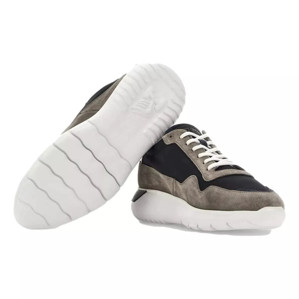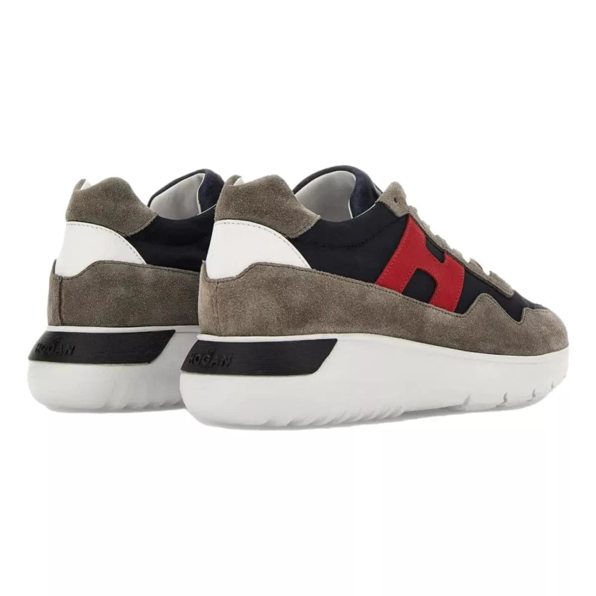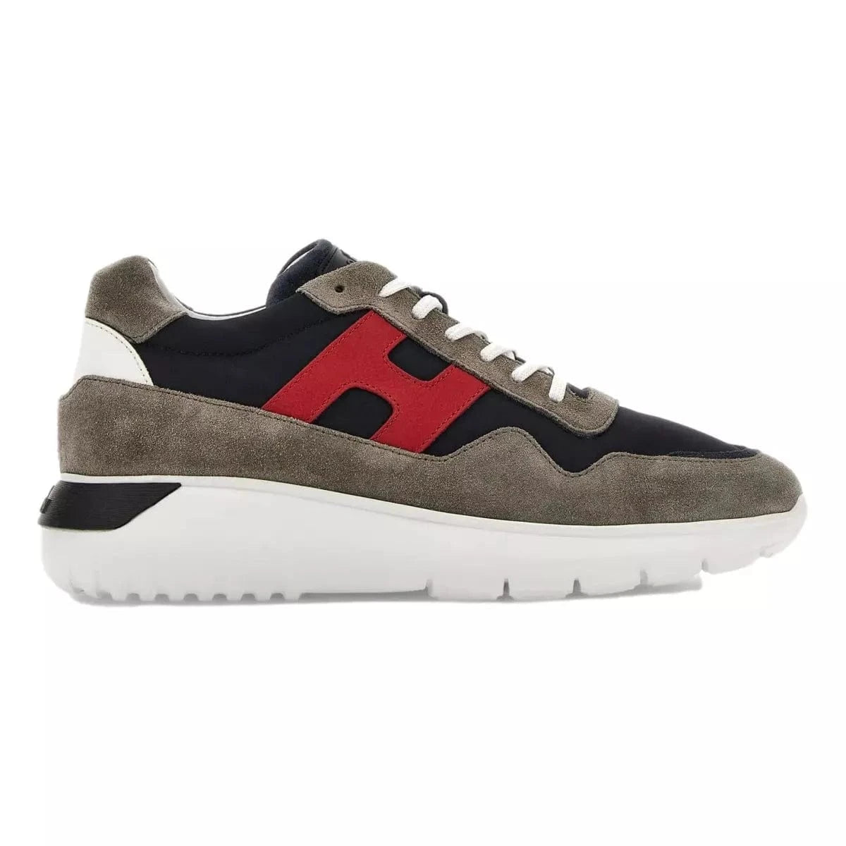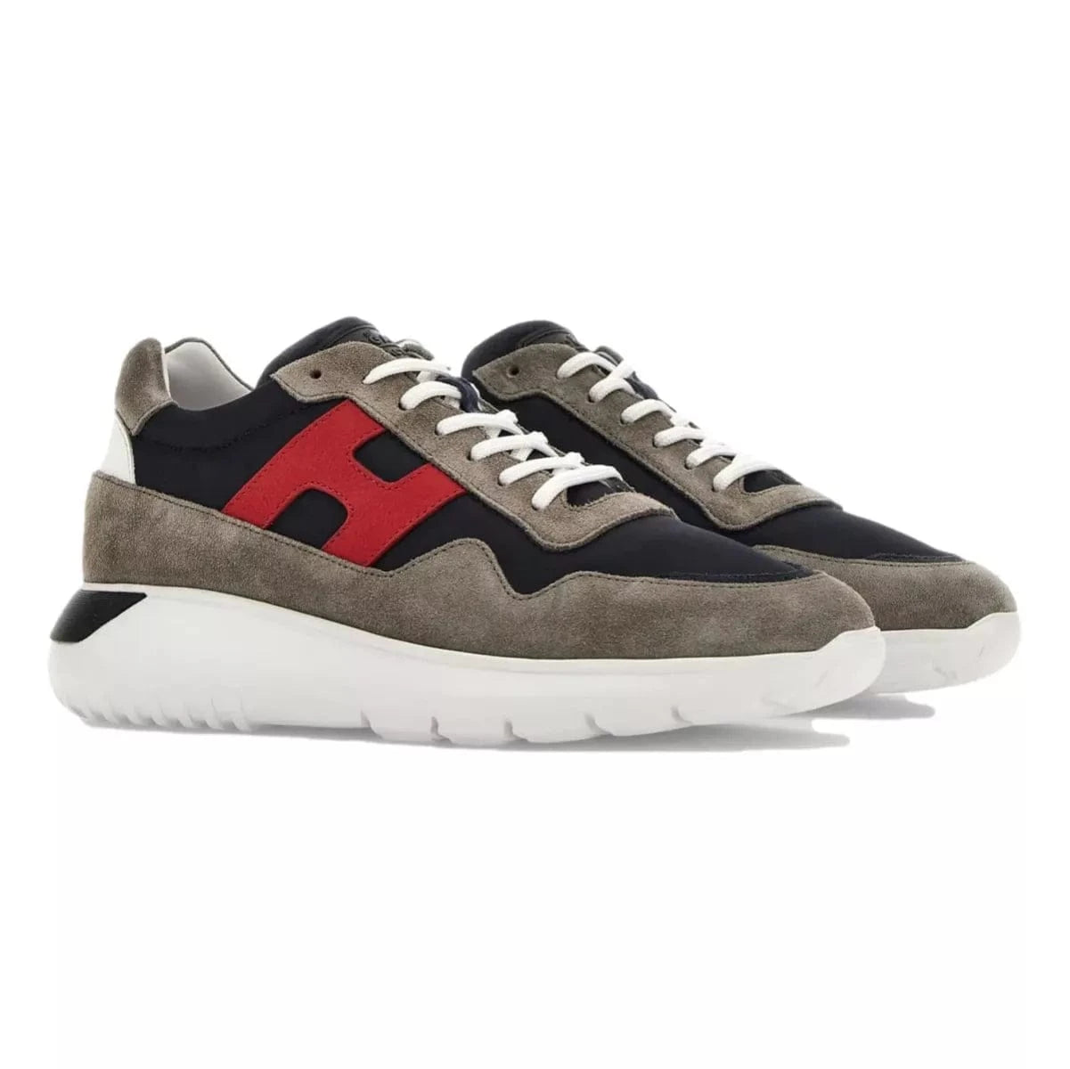 Stijlvolle en technologische evolutie van een icoon uit de wereld van Hogan, Interactive³ is nu zelf een embleem. De ergonomische en lichtgewicht buitenzool, samen met het bovenwerk met een dynamische en evenwichtige look, maken het tot een echte urban passe-partout. Deze herensneaker is gemaakt van suède met inzetstukken van technische stof en nubuck kant H. De binnenzool van traagschuim garandeert een gedempte pasvorm.MOD. HXM3710AJ15MSN543Z - Men's Hogan Interactive³ Sneakers