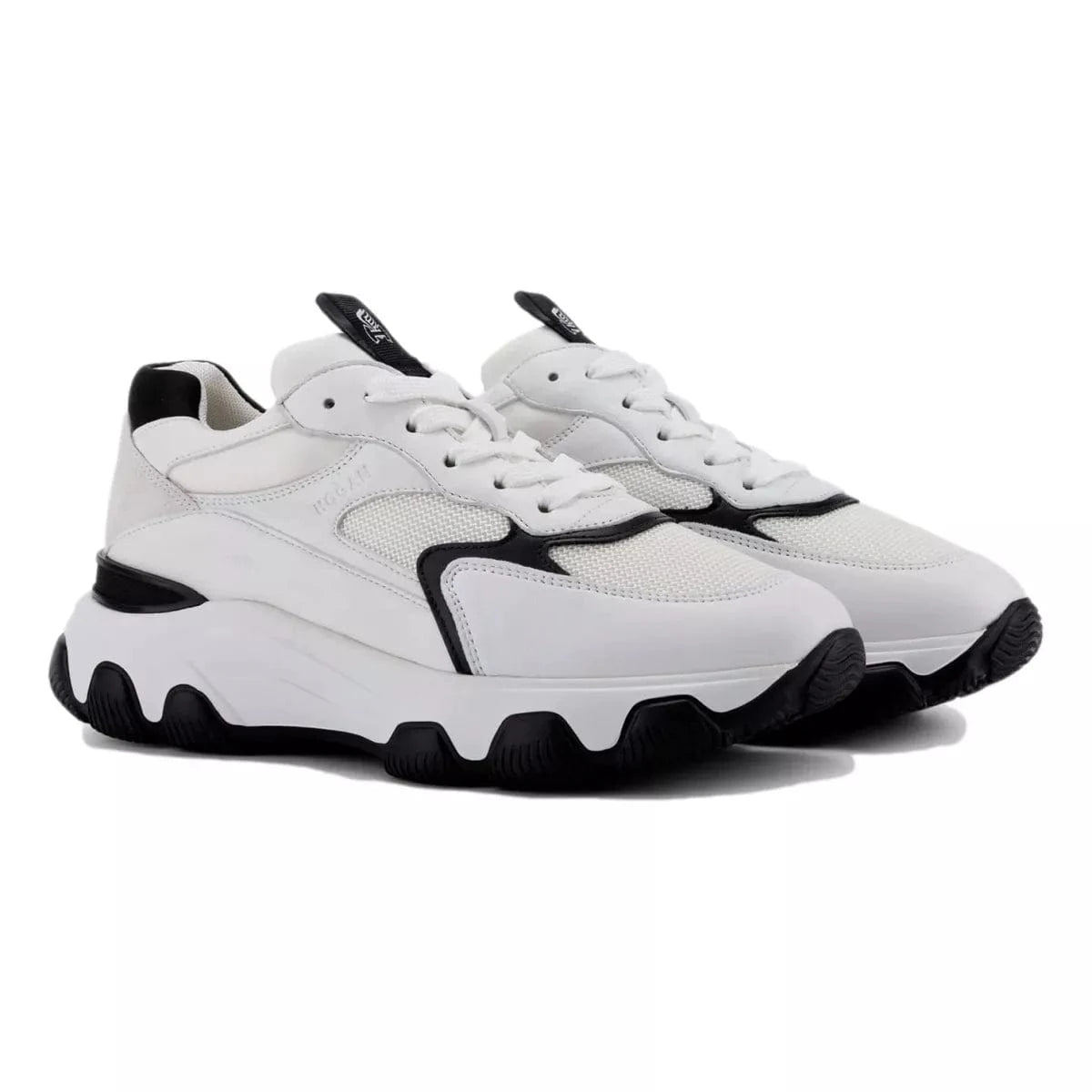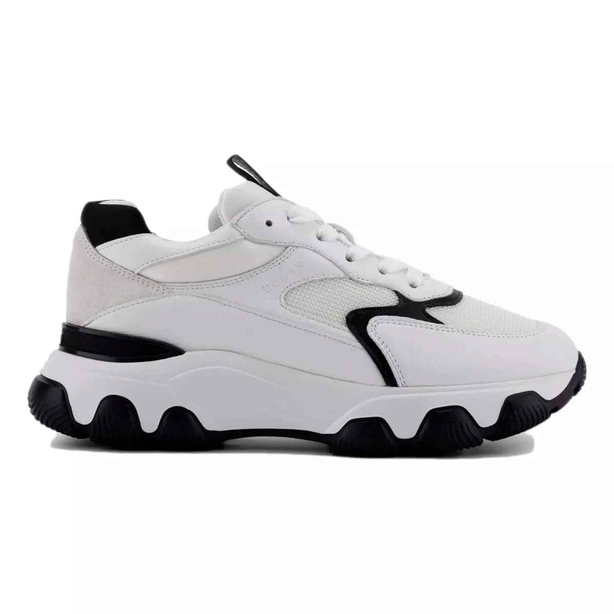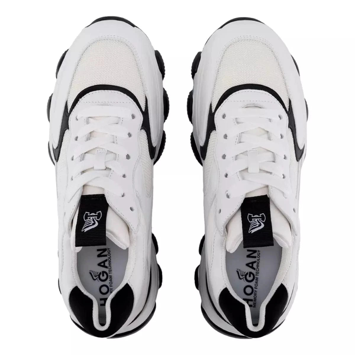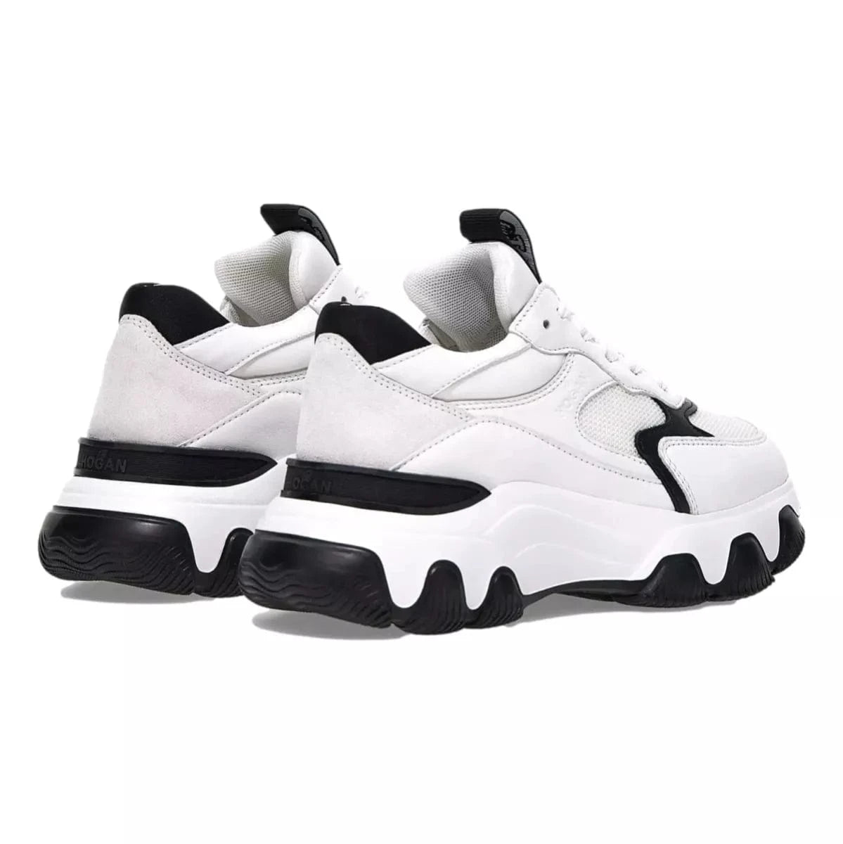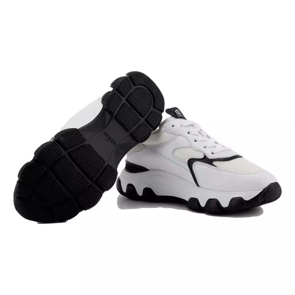 the new, luxury hogan hyperactive sneakers represent a dynamic and modern combination, with heritage detailing. the new, extralight, chunky outsole features a sleek trim, perfectly finishing the thermo-formed upper. crafted in leather and high-tech fabric, they feature the new, stamped hogan logo on the side and a memory foam insole which guarantees a comfortable fit.