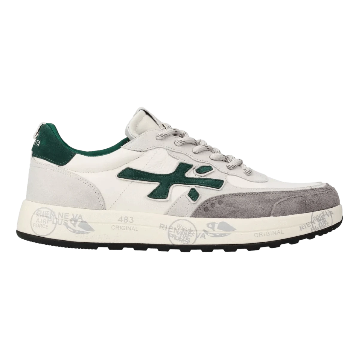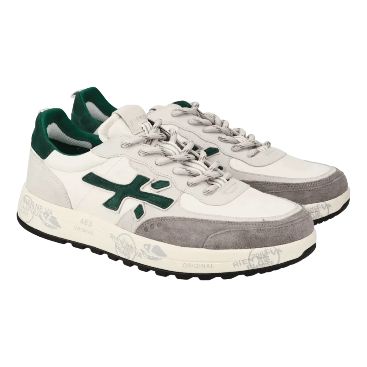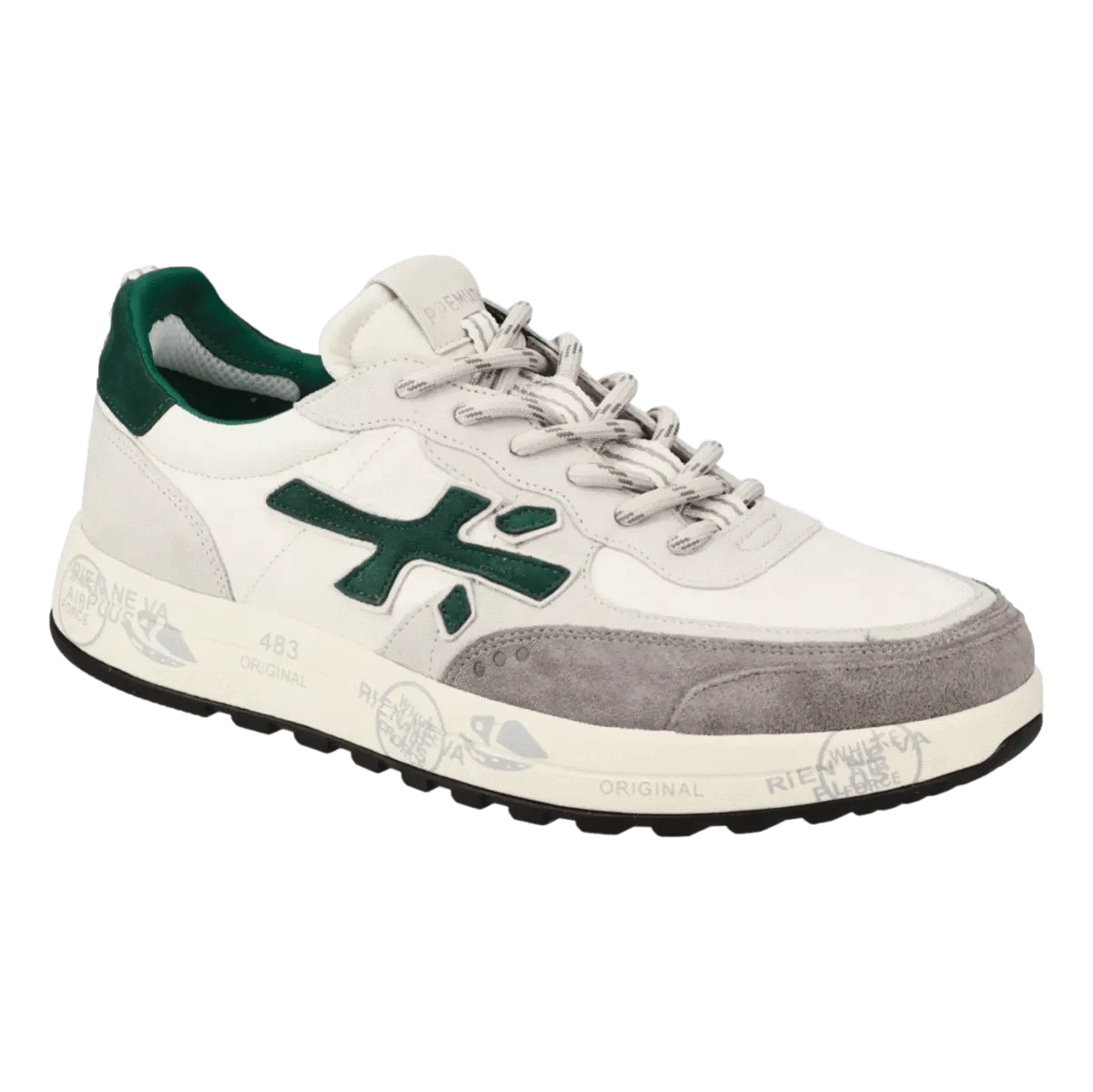 De Premiata Nous sneaker in groen staat voor eigentijdse stijl met een luxueuze twist. Deze sneaker combineert innovatieve materialen met een strak, sportief silhouet en is ontworpen voor wie comfort en design wil verenigen. De groene kleur geeft de schoen een natuurlijke en moderne uitstraling, terwijl de kenmerkende Premiata-zool zorgt voor optimale grip en loopcomfort. Een veelzijdige keuze voor dagelijks gebruik met een fashionable edge.