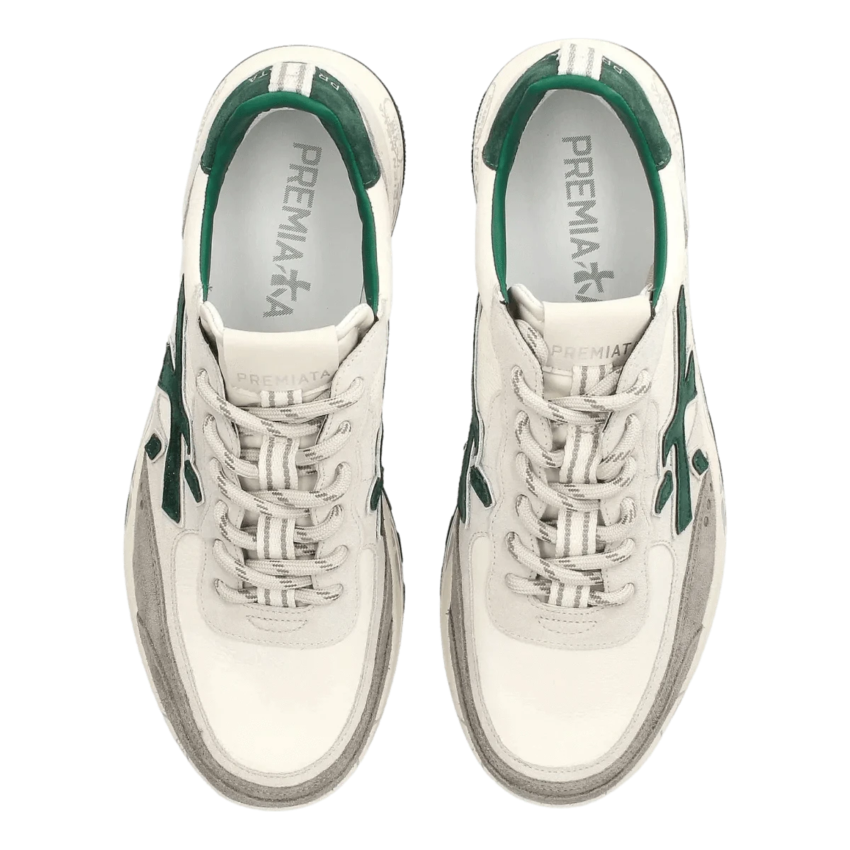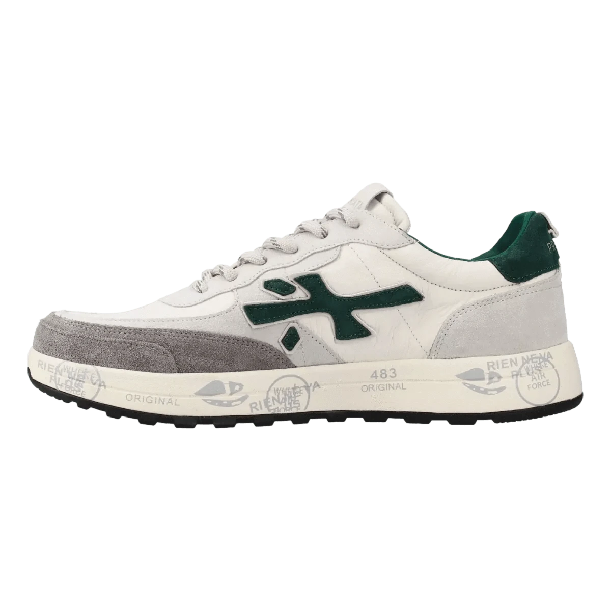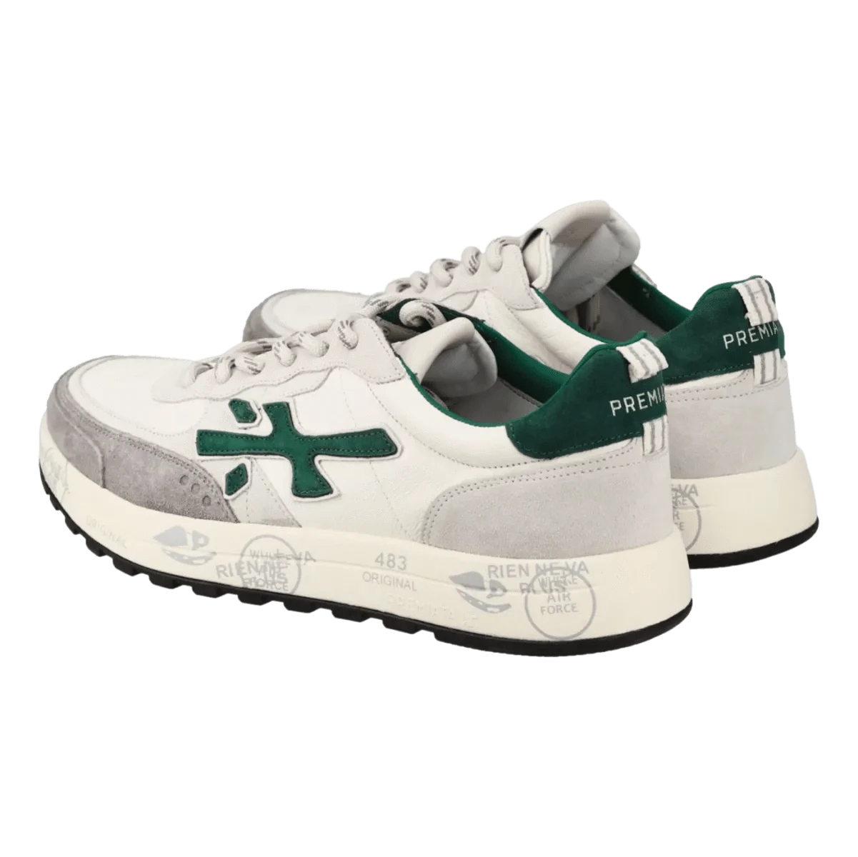 De Premiata Nous sneaker in groen staat voor eigentijdse stijl met een luxueuze twist. Deze sneaker combineert innovatieve materialen met een strak, sportief silhouet en is ontworpen voor wie comfort en design wil verenigen. De groene kleur geeft de schoen een natuurlijke en moderne uitstraling, terwijl de kenmerkende Premiata-zool zorgt voor optimale grip en loopcomfort. Een veelzijdige keuze voor dagelijks gebruik met een fashionable edge.