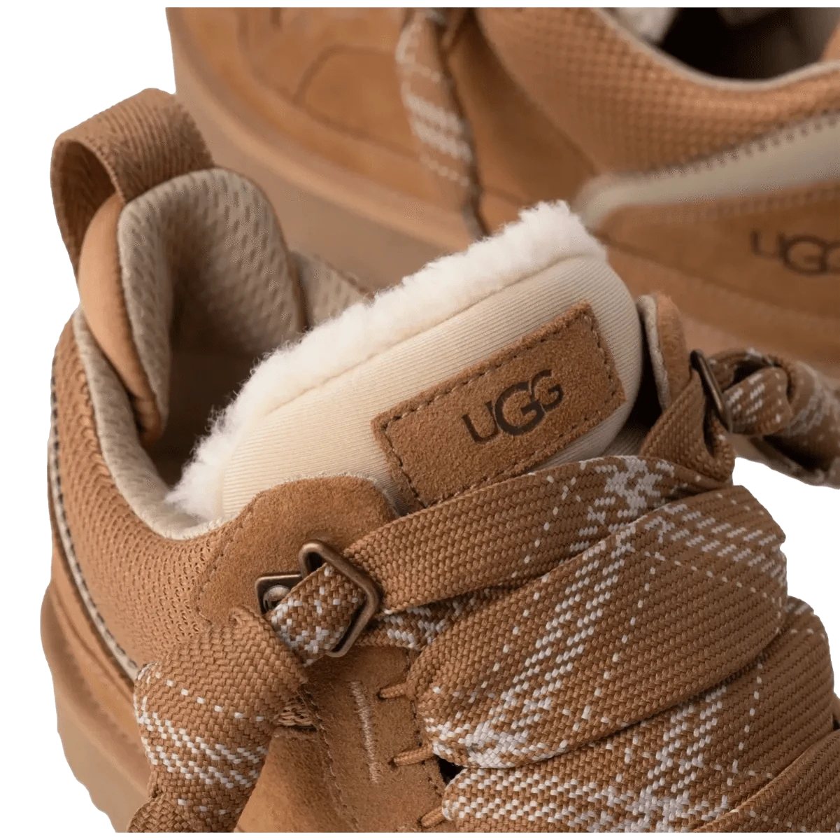 - Gerecycled ballistisch canvas-mesh, bovenstuk van suède, geweven hielbandje, patch met het UGG®-logo, gevoerde kraag, oversized gevoerde lip