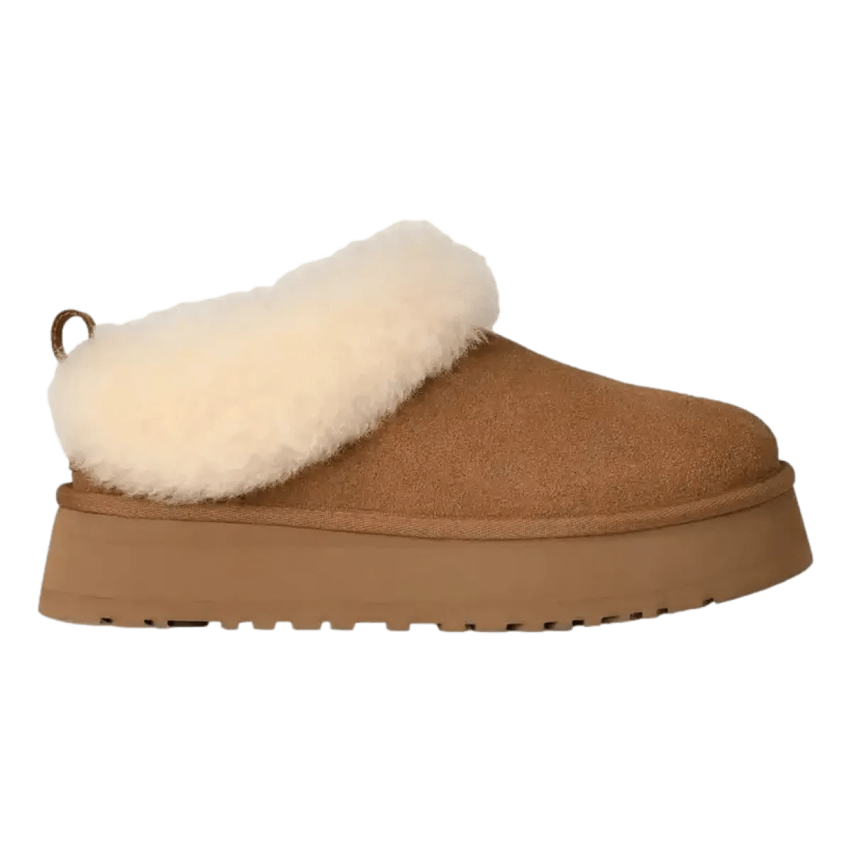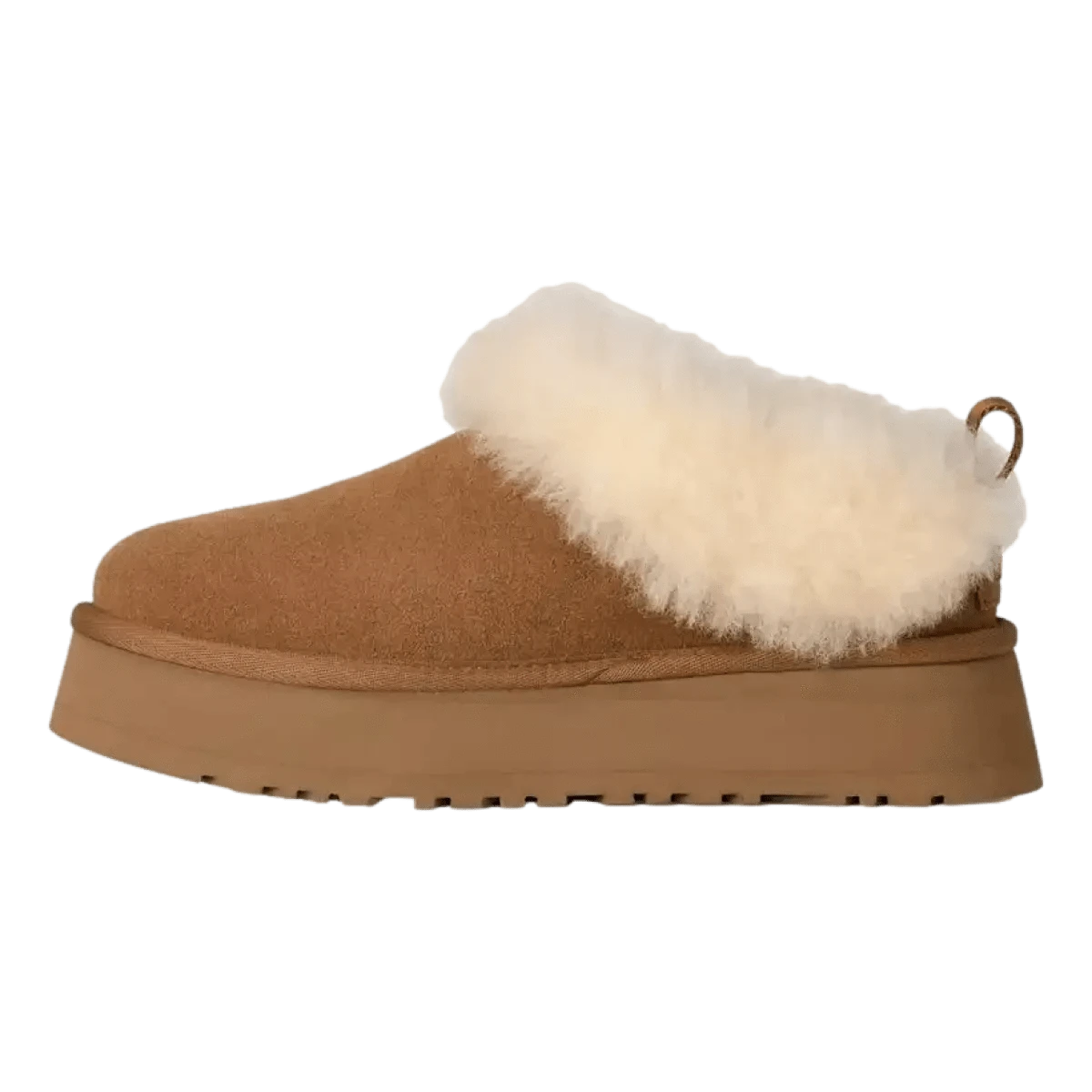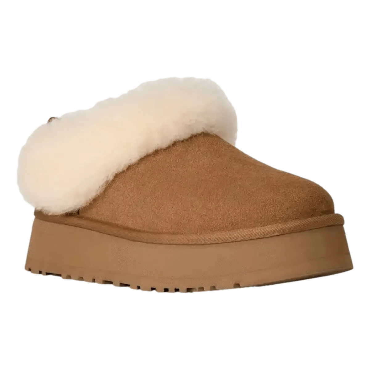 Ben je dol op de Tazz, maar wil je nog meer UGG®-comfort? Dan is onze Tazzelle precies wat je zoekt. Deze ultrazachte pantoffels voor binnen en buiten zijn gemaakt van echt suède en hebben een lichtgewicht plateauzool van 4,4 cm, gemaakt van veerkrachtig EVA op basis van suikerriet. De binnenkant is bekleed met sheepskin, dat doorloopt tot aan de prachtige, vaste omslagboord, zodat je deze pantoffels met of zonder sokken kunt dragen.