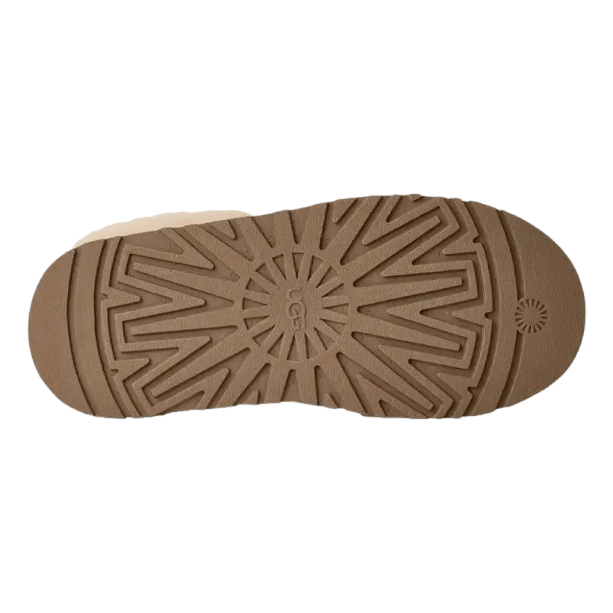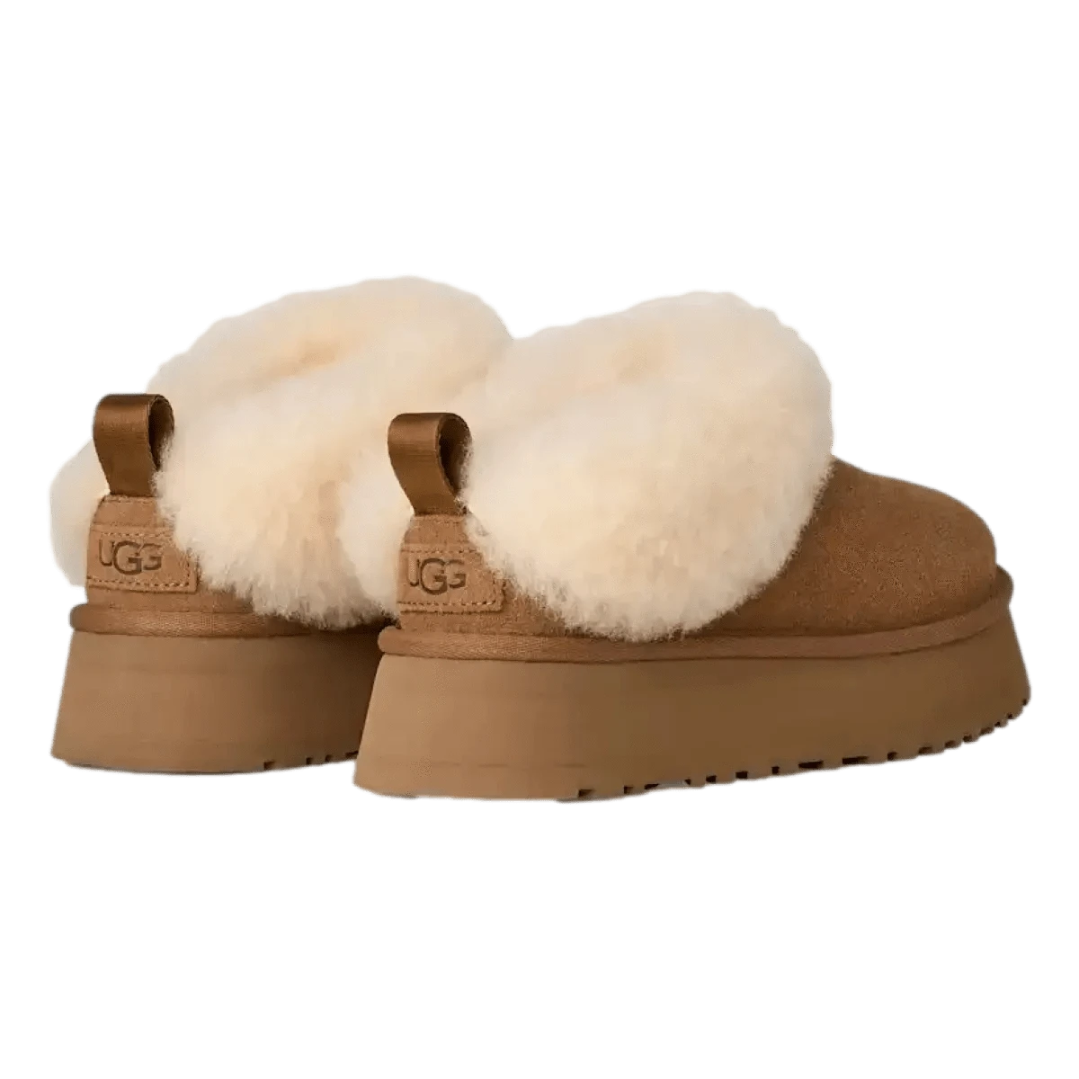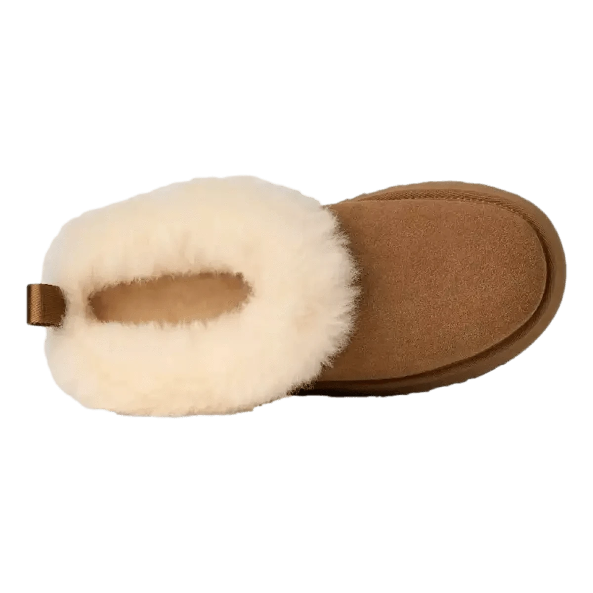Ben je dol op de Tazz, maar wil je nog meer UGG®-comfort? Dan is onze Tazzelle precies wat je zoekt. Deze ultrazachte pantoffels voor binnen en buiten zijn gemaakt van echt suède en hebben een lichtgewicht plateauzool van 4,4 cm, gemaakt van veerkrachtig EVA op basis van suikerriet. De binnenkant is bekleed met sheepskin, dat doorloopt tot aan de prachtige, vaste omslagboord, zodat je deze pantoffels met of zonder sokken kunt dragen.