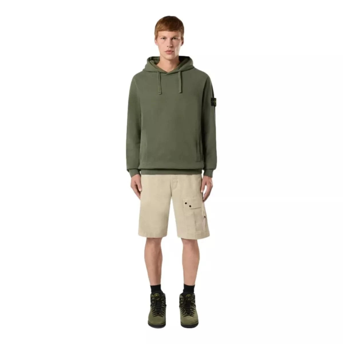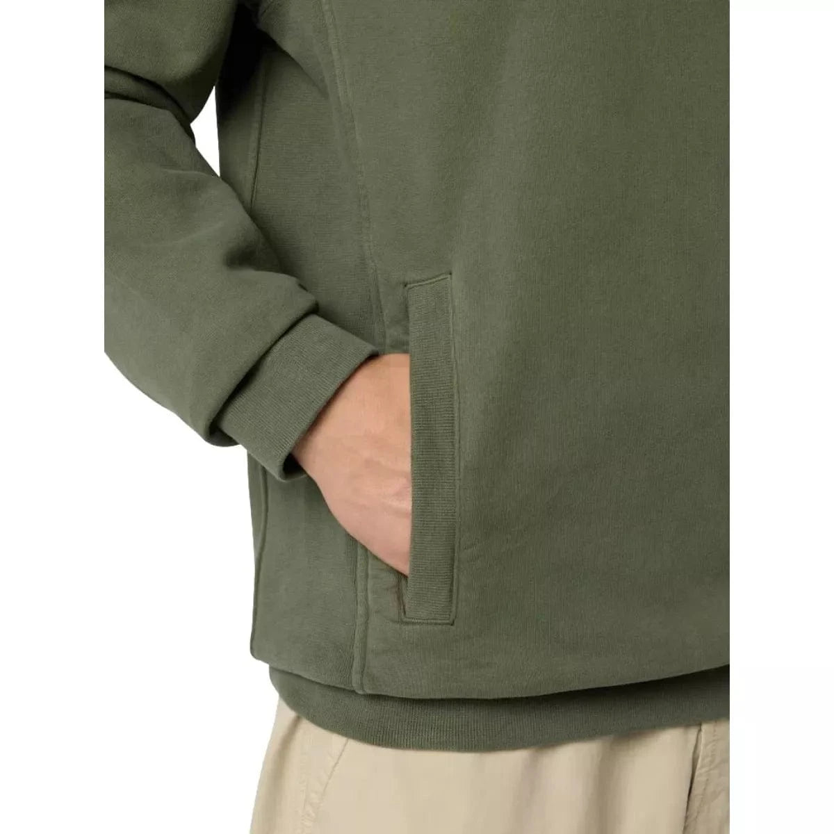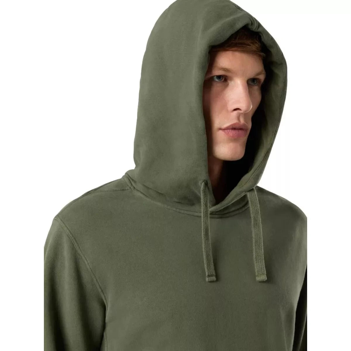 Sweatshirt van geborsteld fleece van biologisch katoen met een gevoerde capuchon met trekkoord, handzakken en een geribde katoenen band langs de zijkanten. Kledingstuk geverfd.