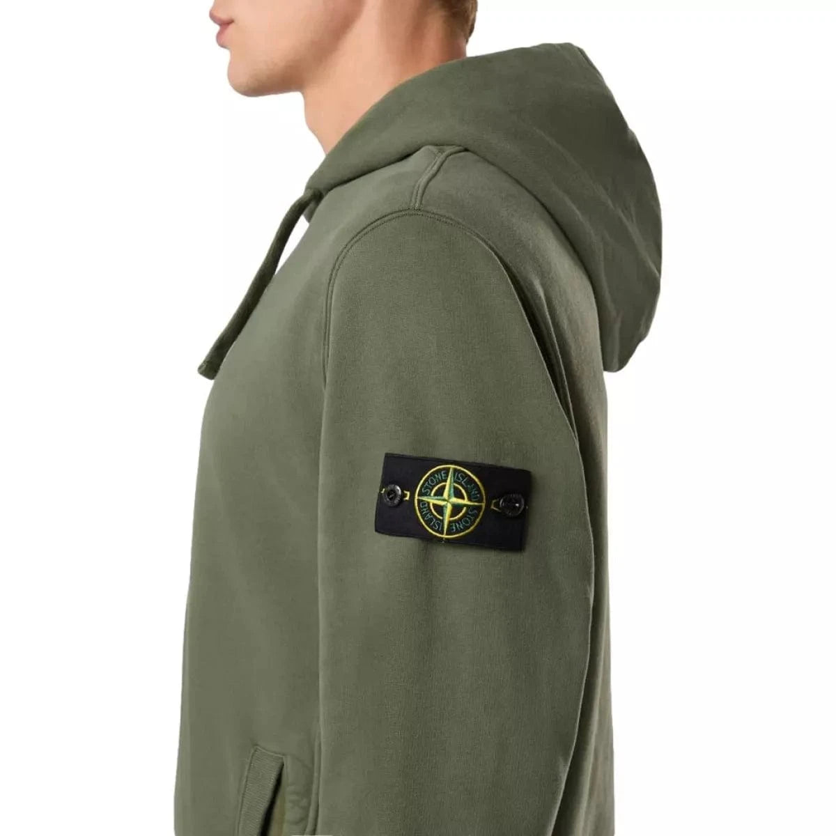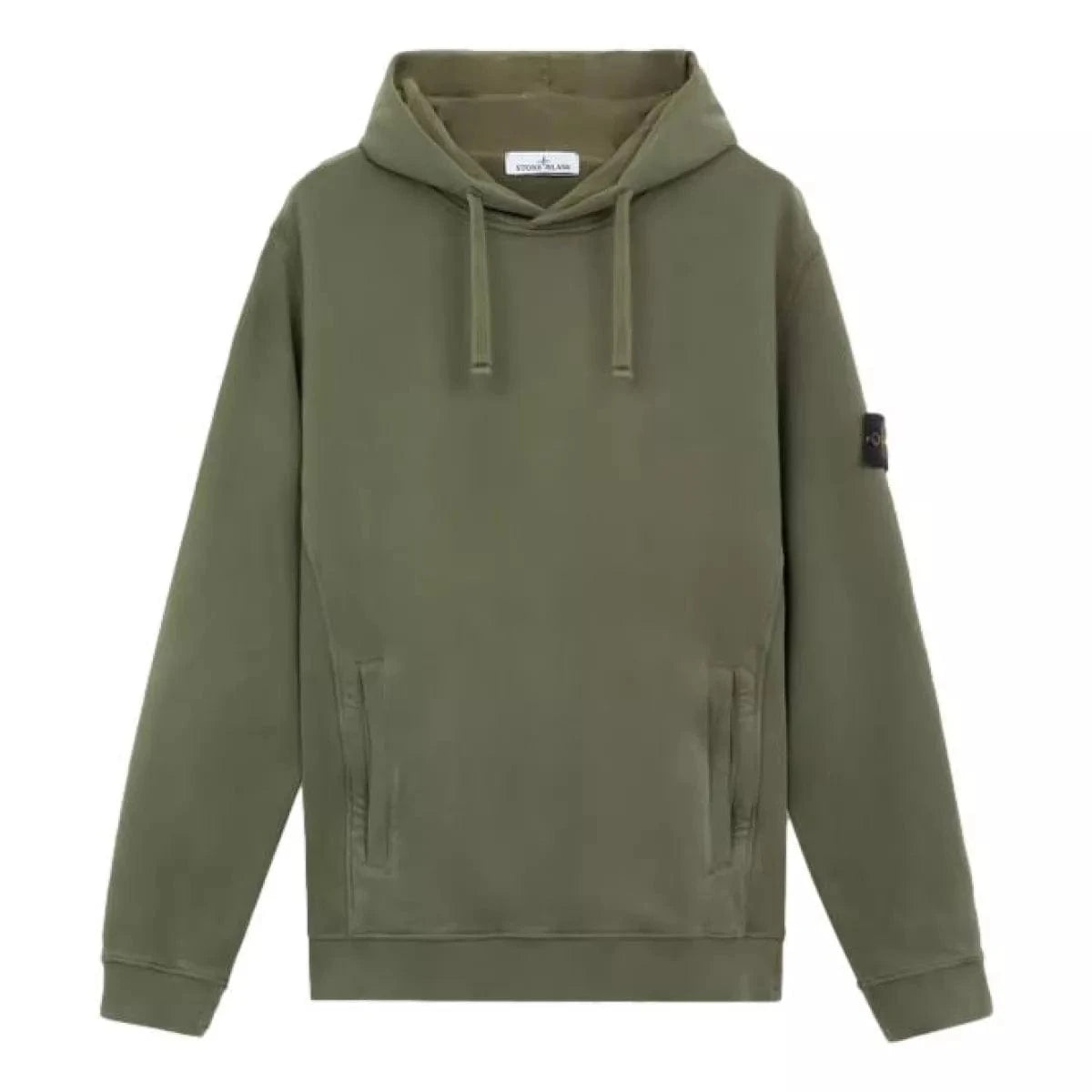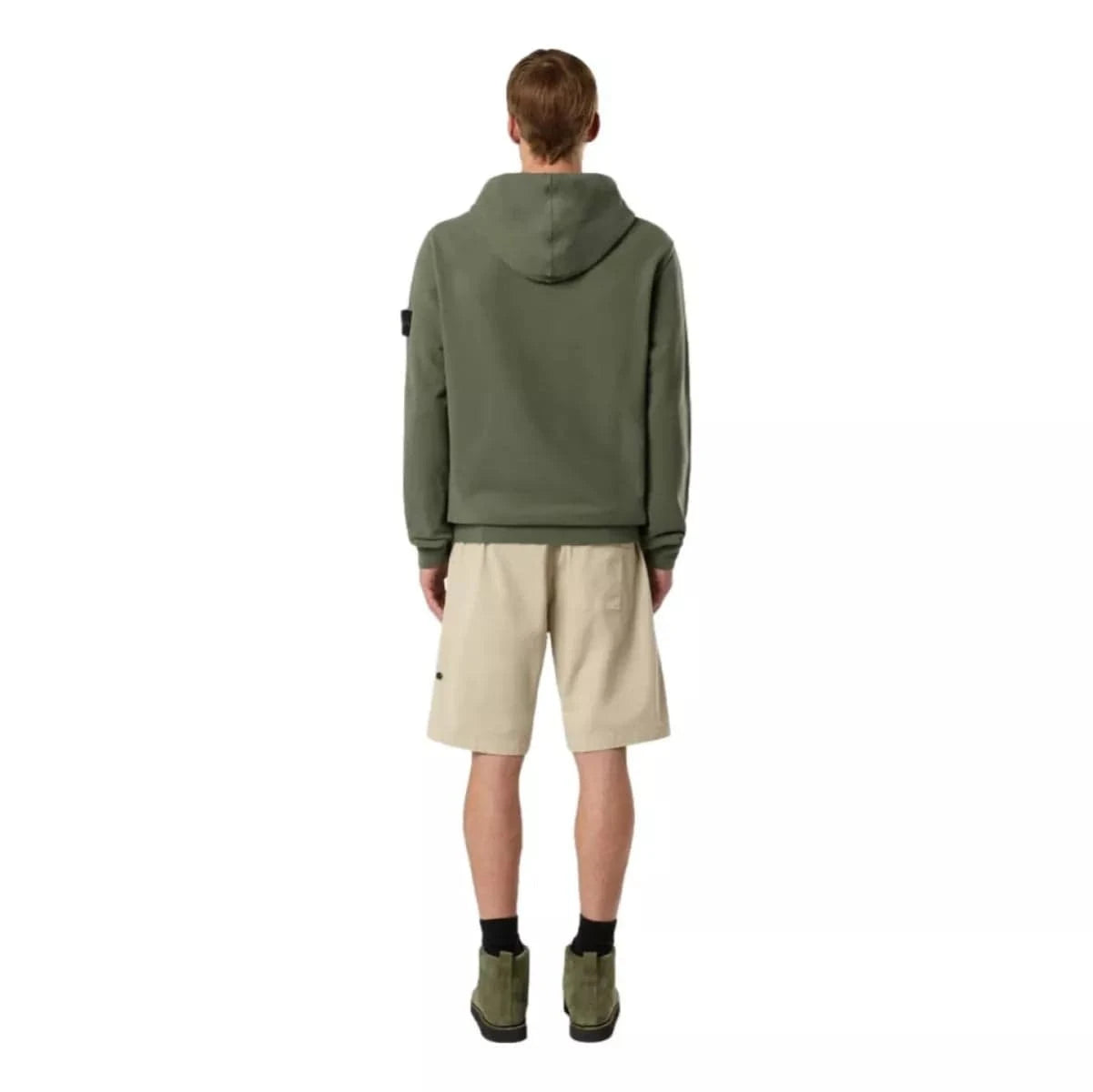 Sweatshirt van geborsteld fleece van biologisch katoen met een gevoerde capuchon met trekkoord, handzakken en een geribde katoenen band langs de zijkanten. Kledingstuk geverfd.