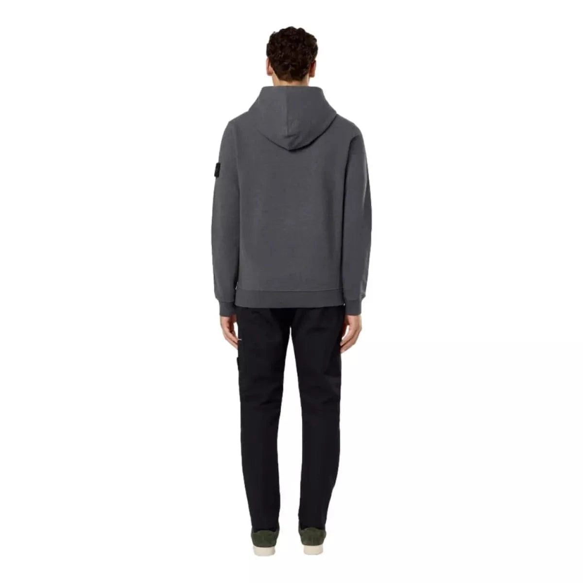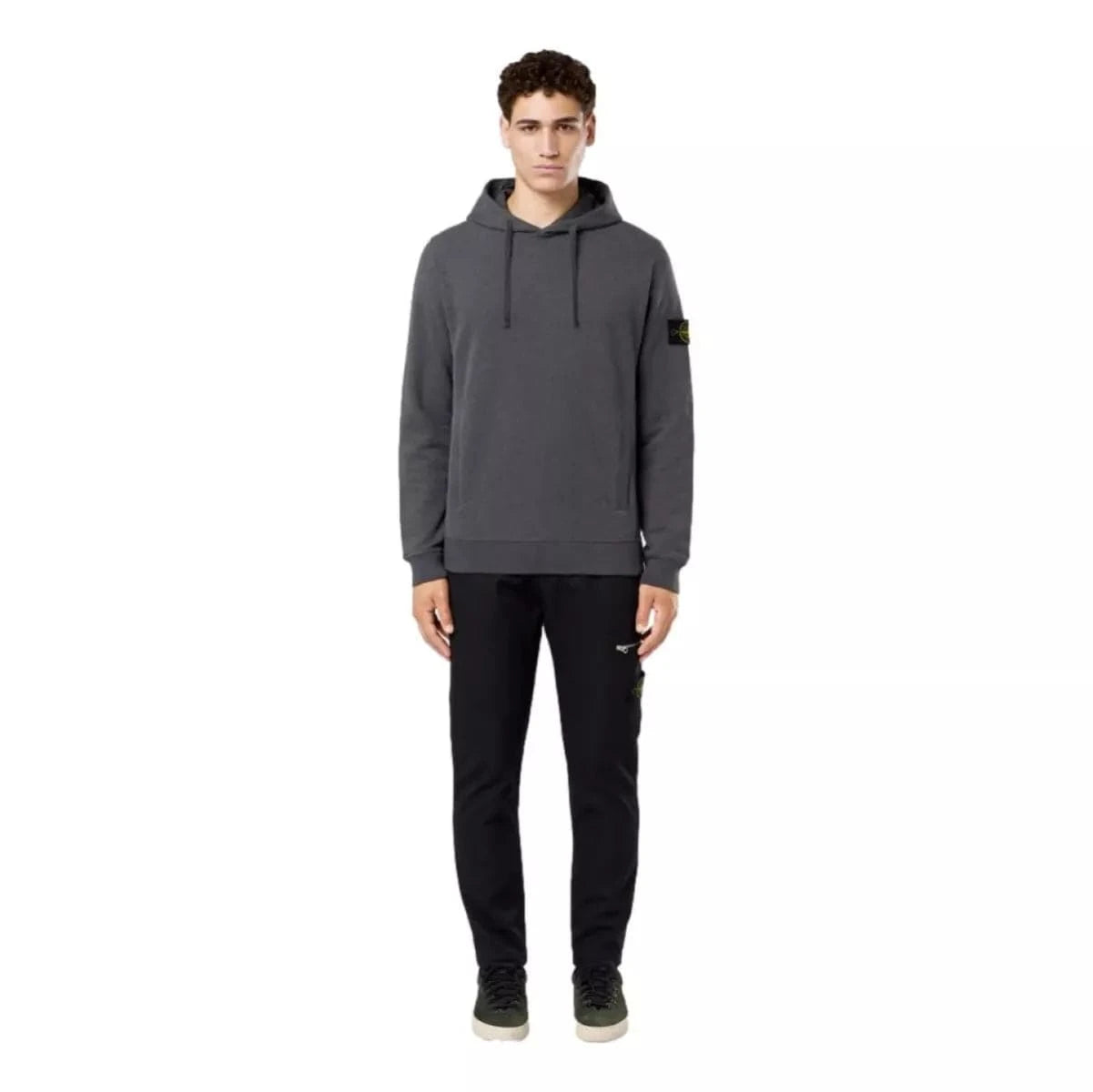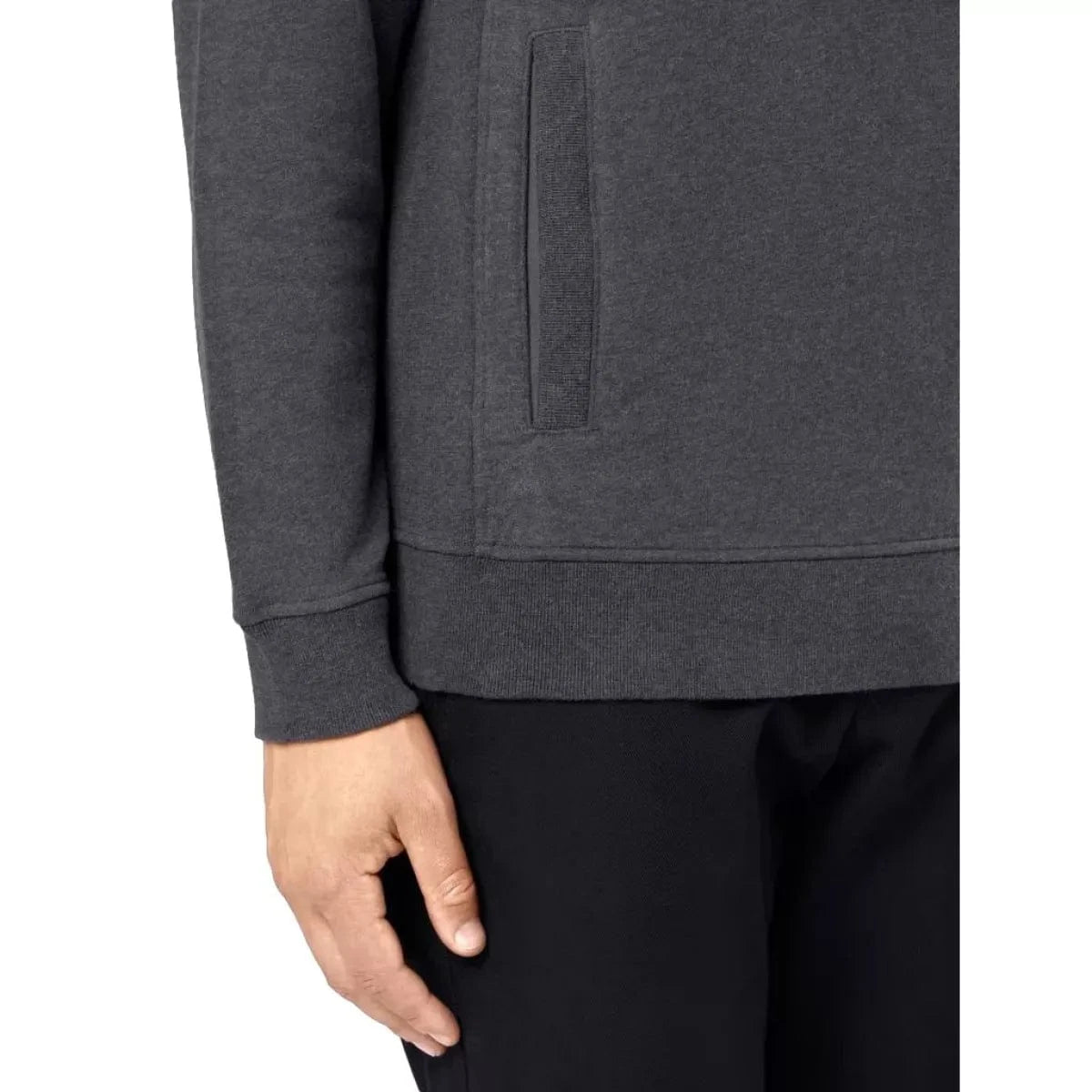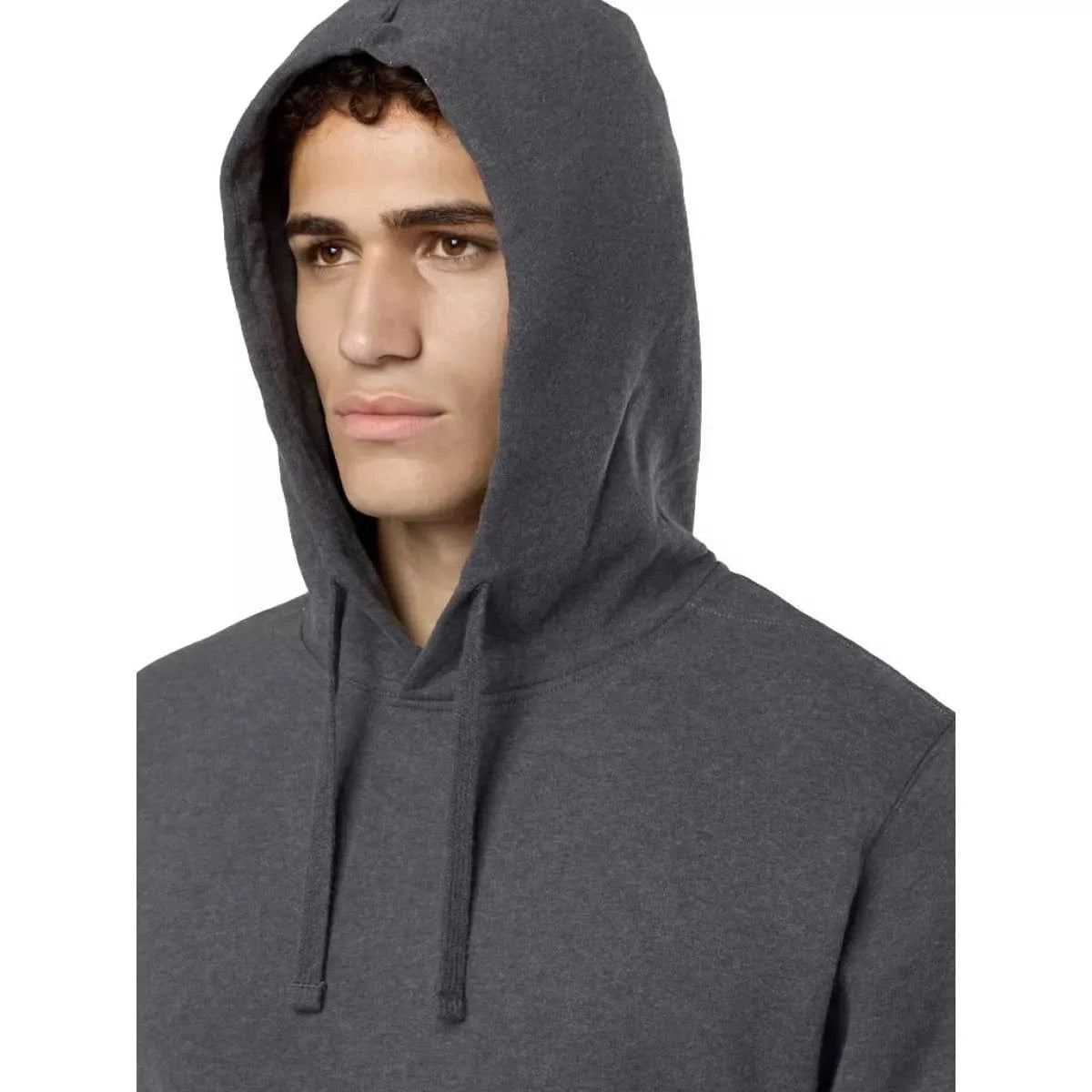 Sweatshirt van geborsteld fleece van biologisch katoen met een gevoerde capuchon met trekkoord, handzakken en een geribde katoenen band langs de zijkanten. Kledingstuk geverfd.