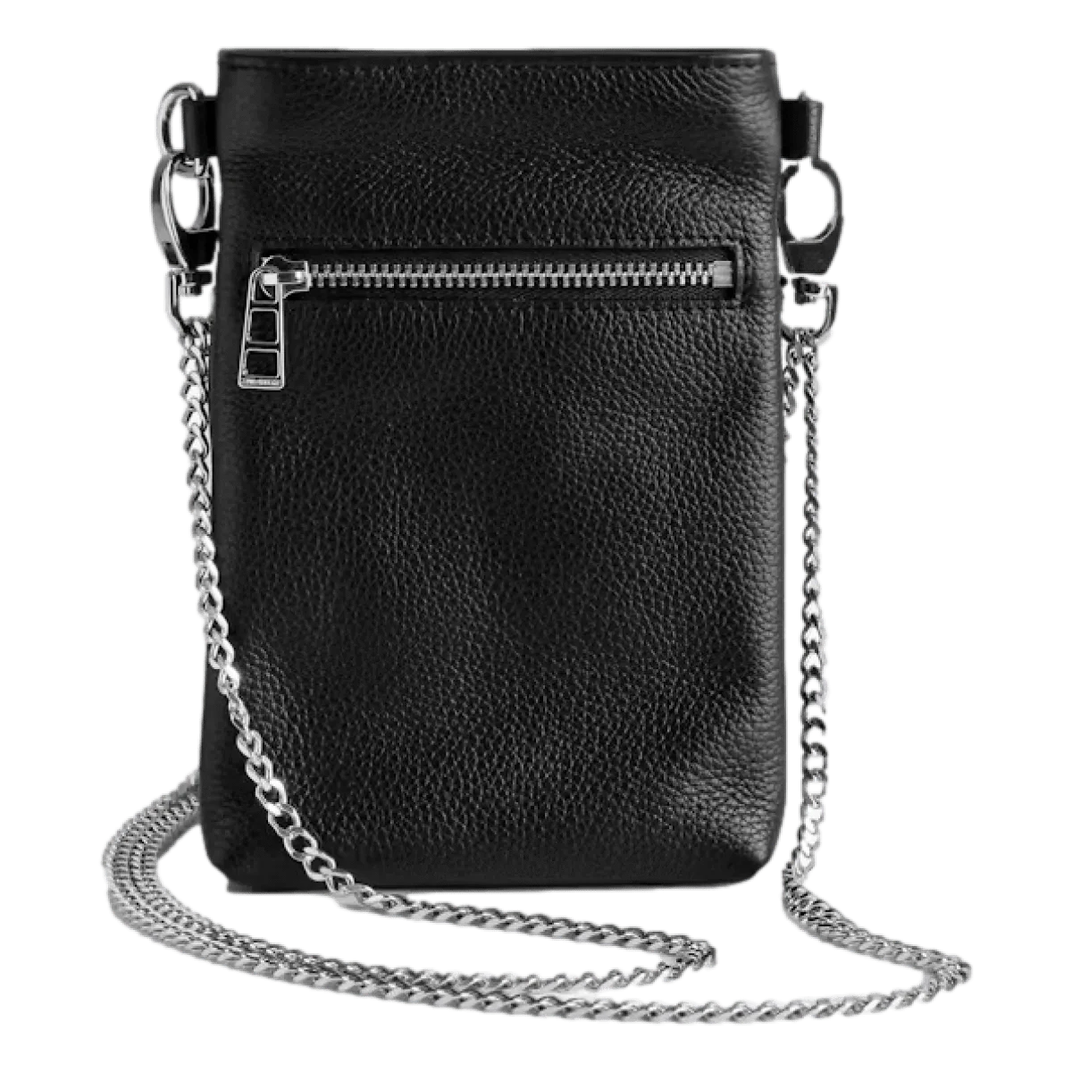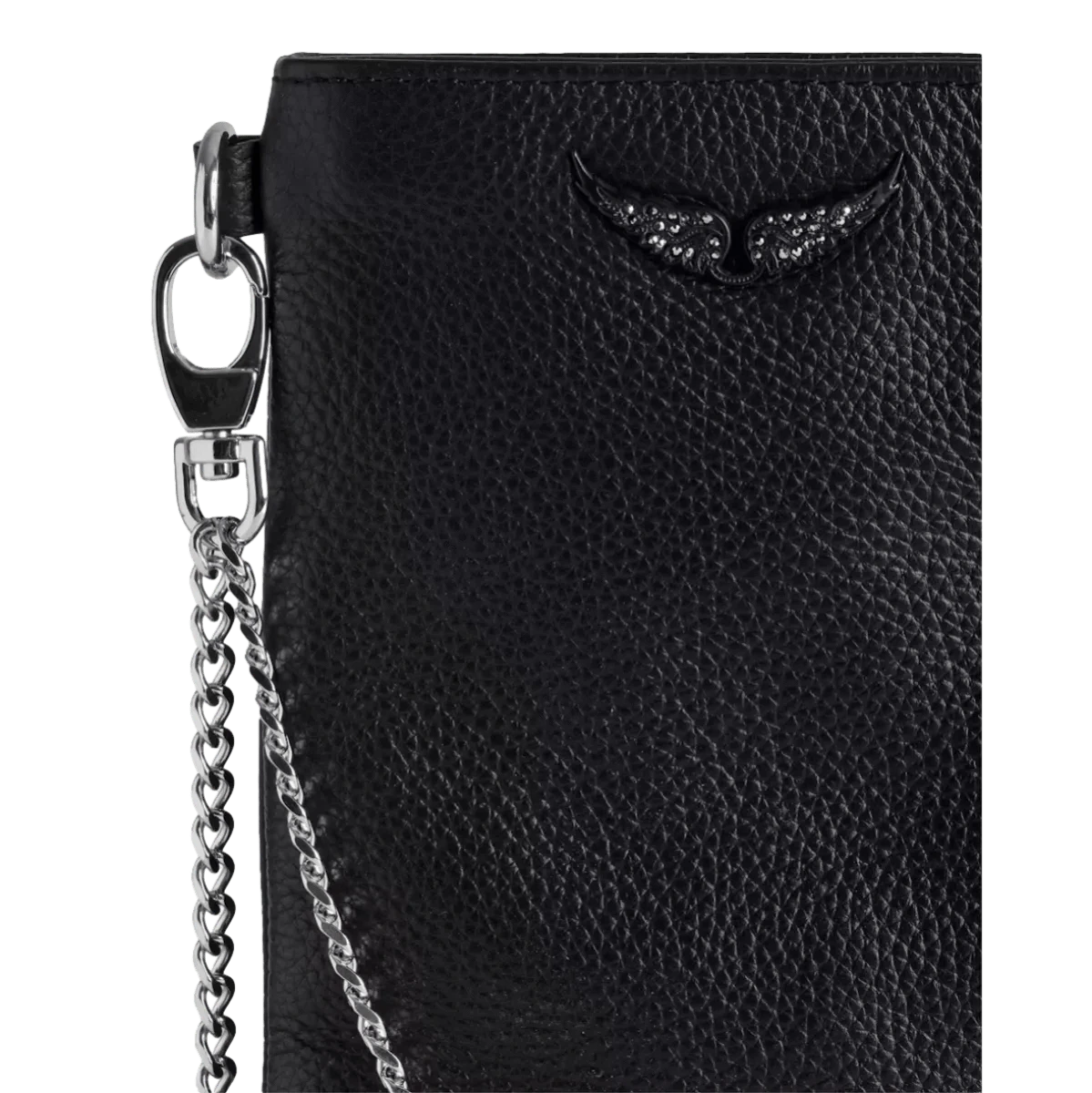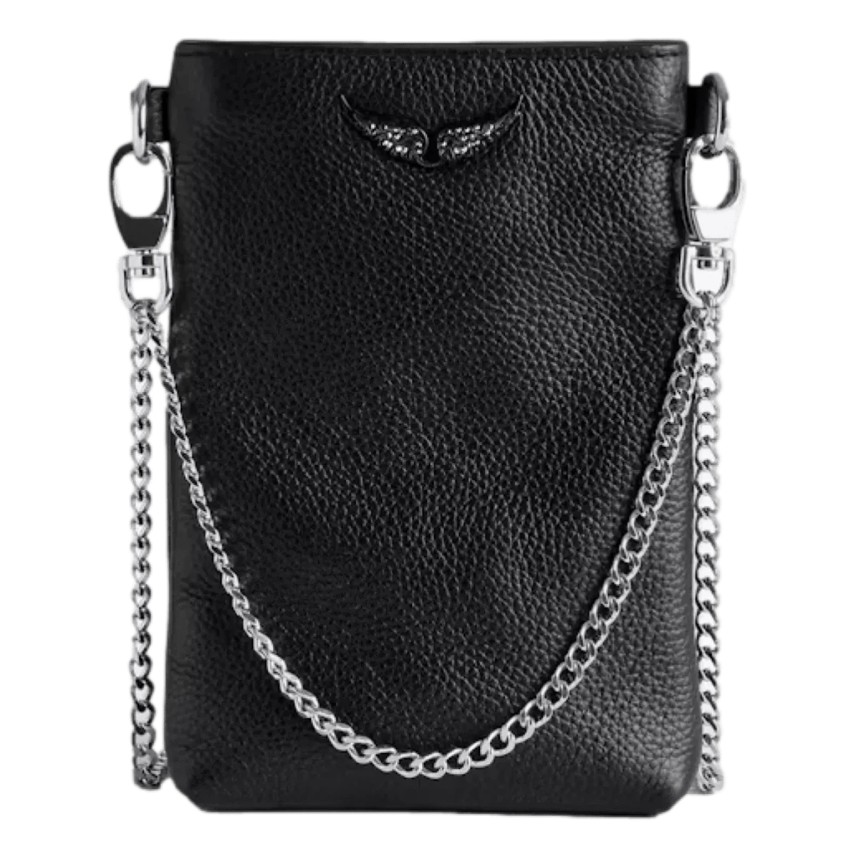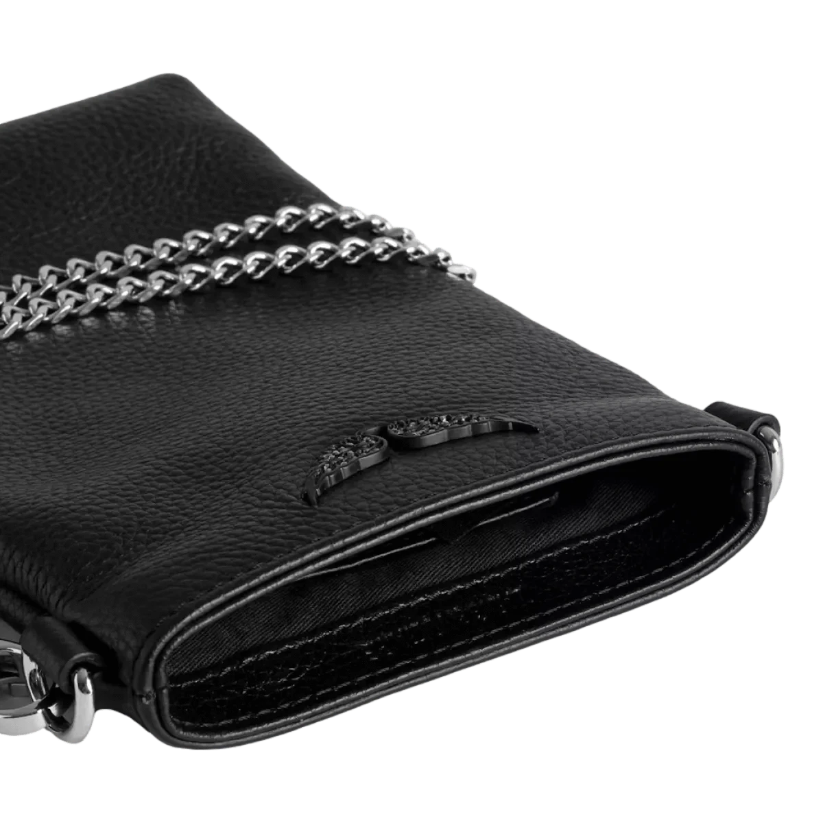 Compact, stijlvol en rock-chic — de Phone Pochette Pouch Rock ICONIC is het perfecte accessoire voor onderweg. Gemaakt van generfd leer en afgewerkt met de iconische ton-sur-ton vleugels in stras, combineert deze clutch functionaliteit met Zadig & Voltaire’s kenmerkende edge.
