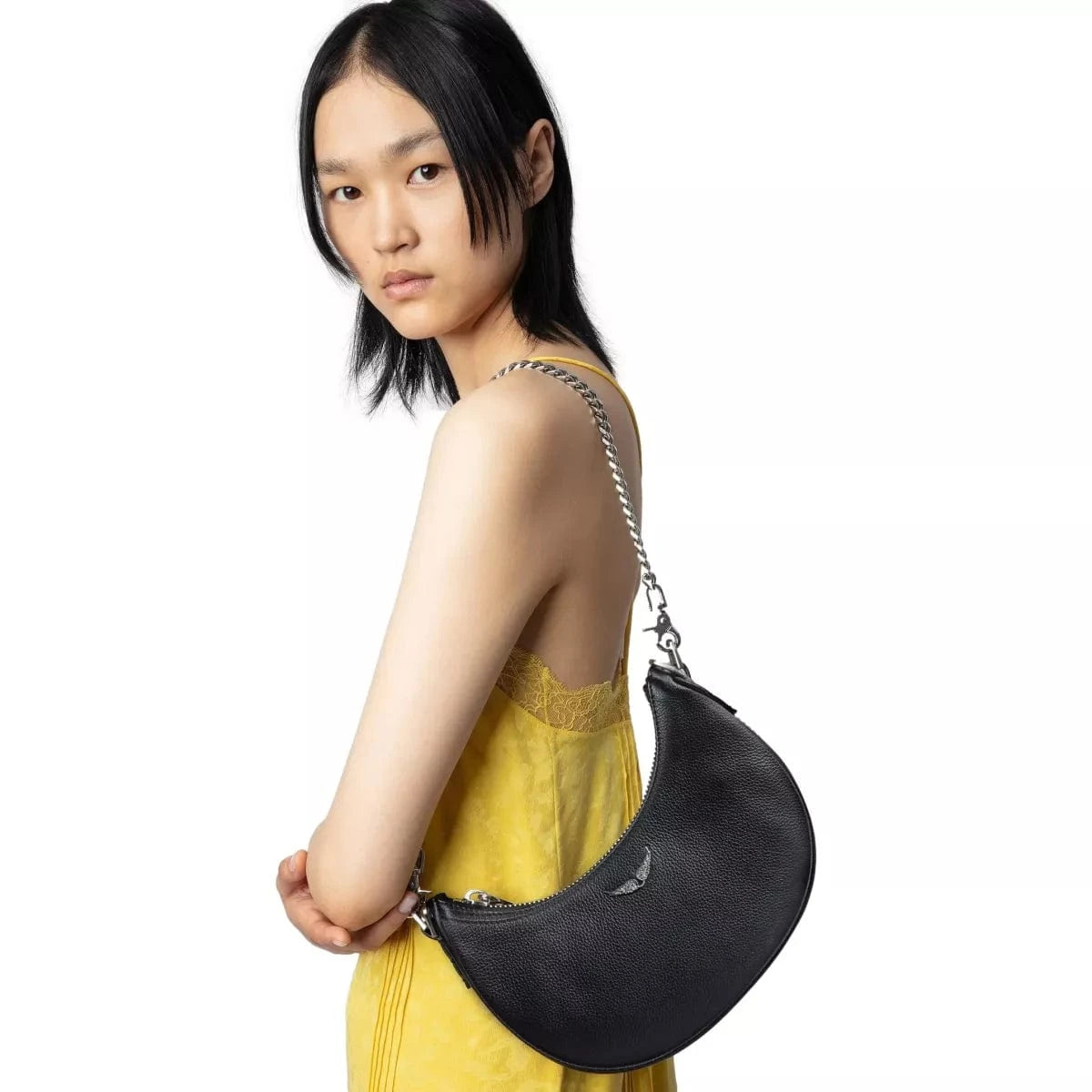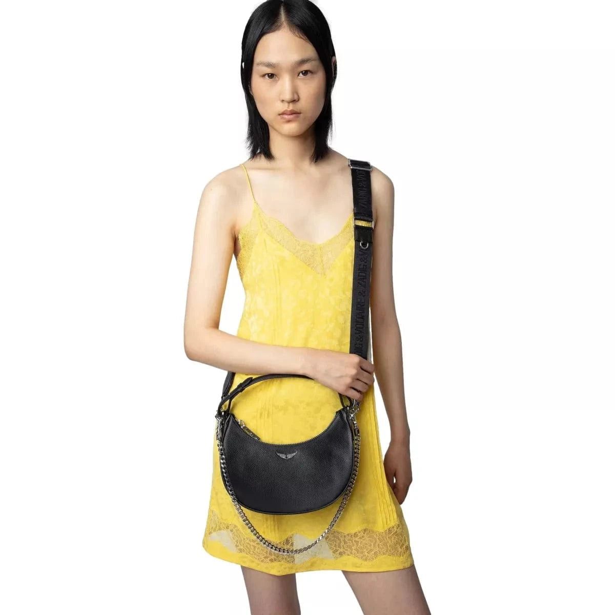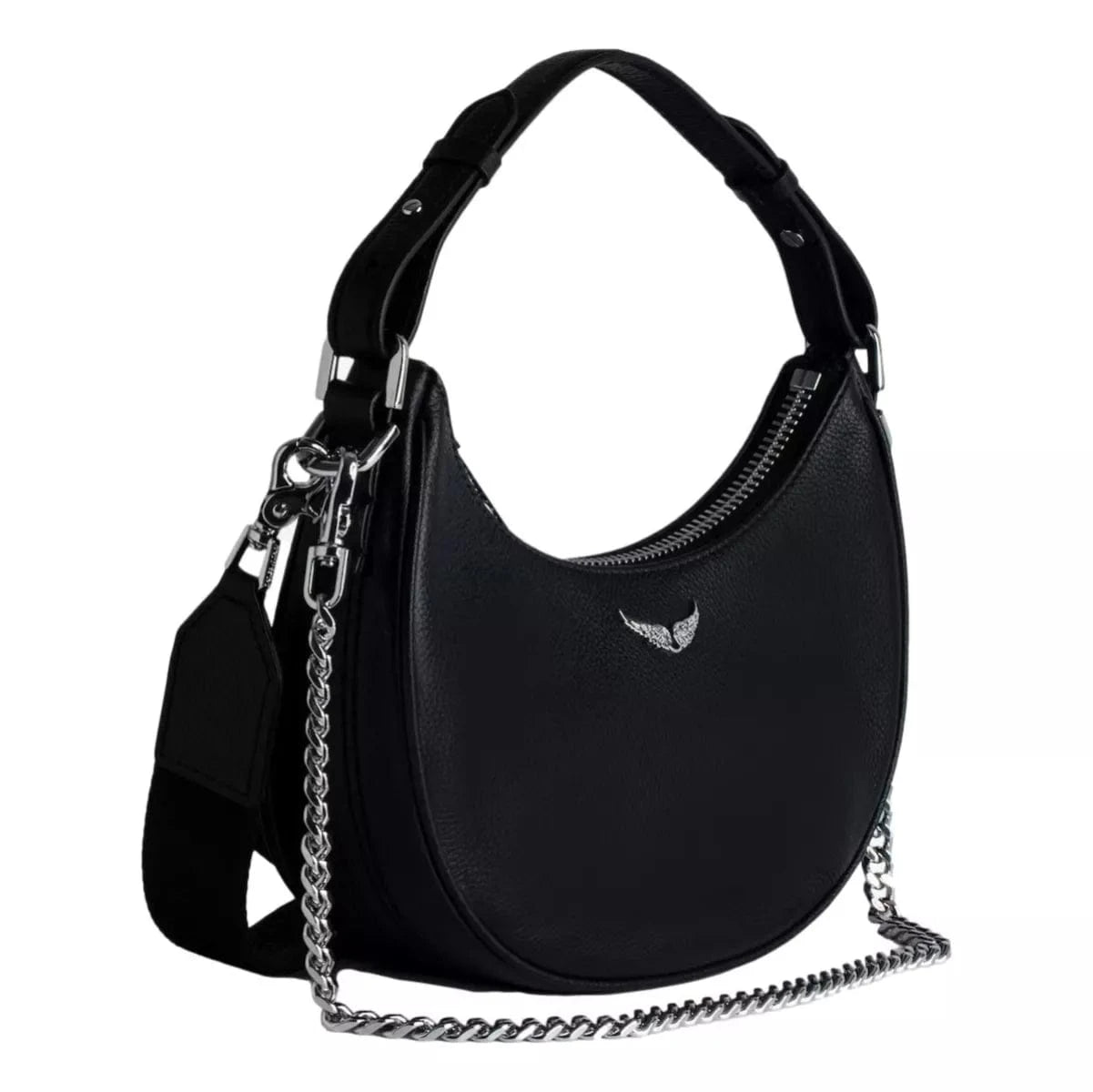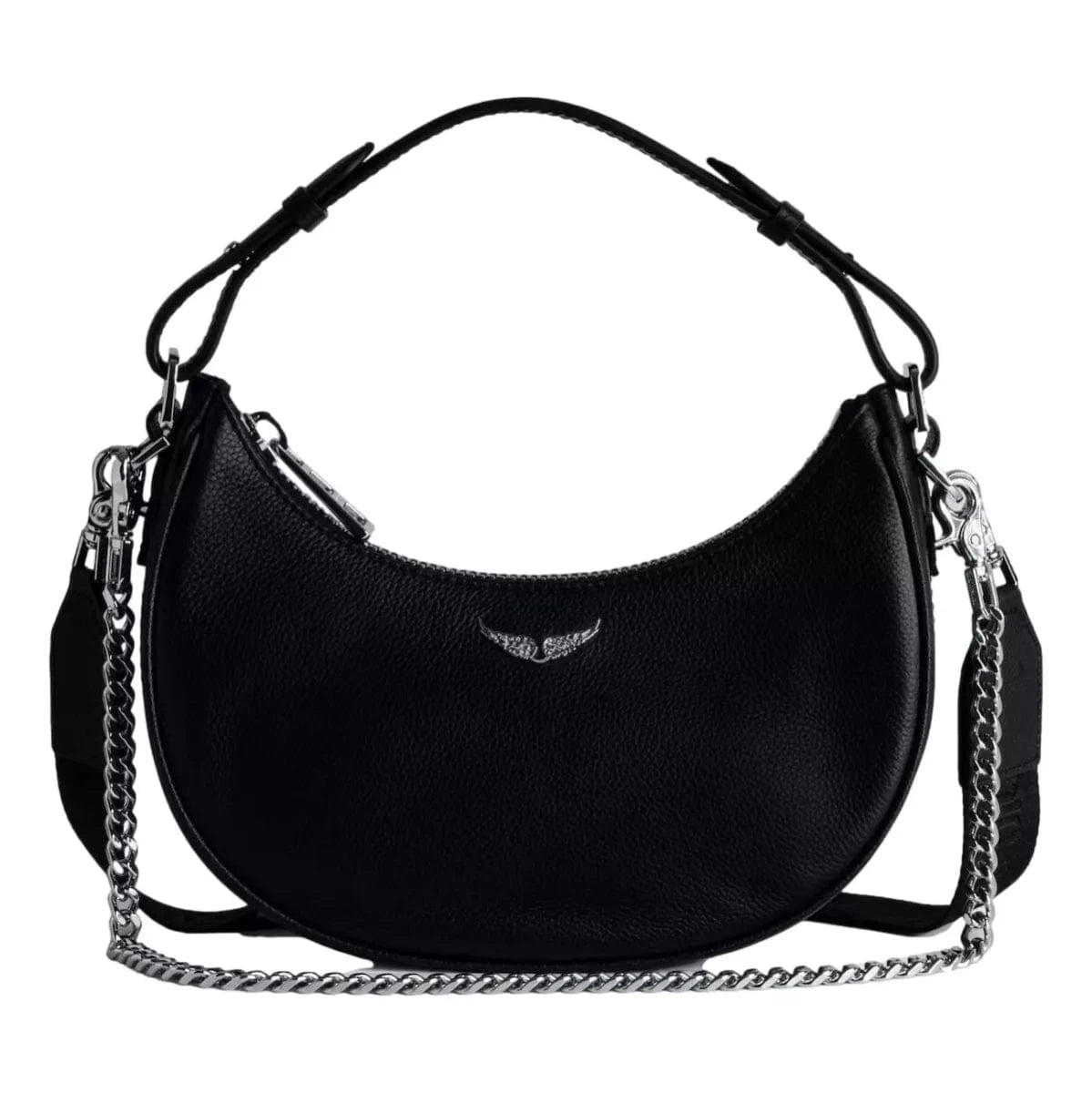 - Short leather handle, adjustable Zadig&Voltaire branded nylon shoulder strap and removable metal chain