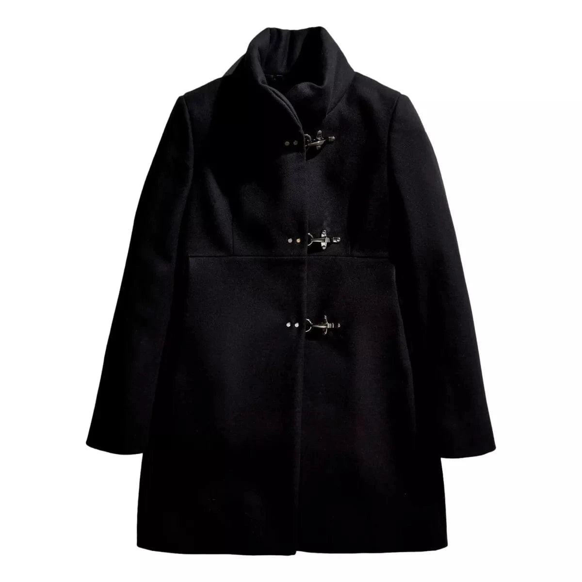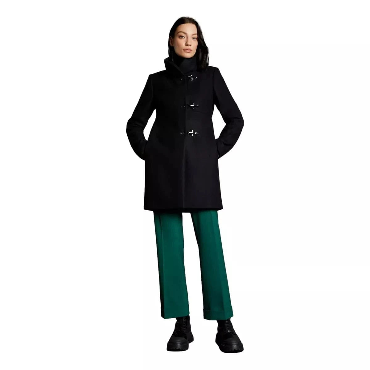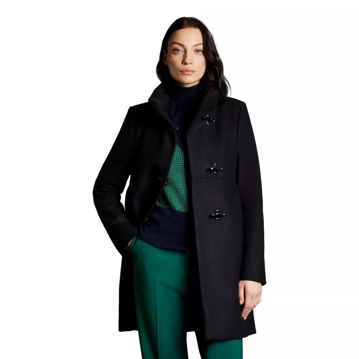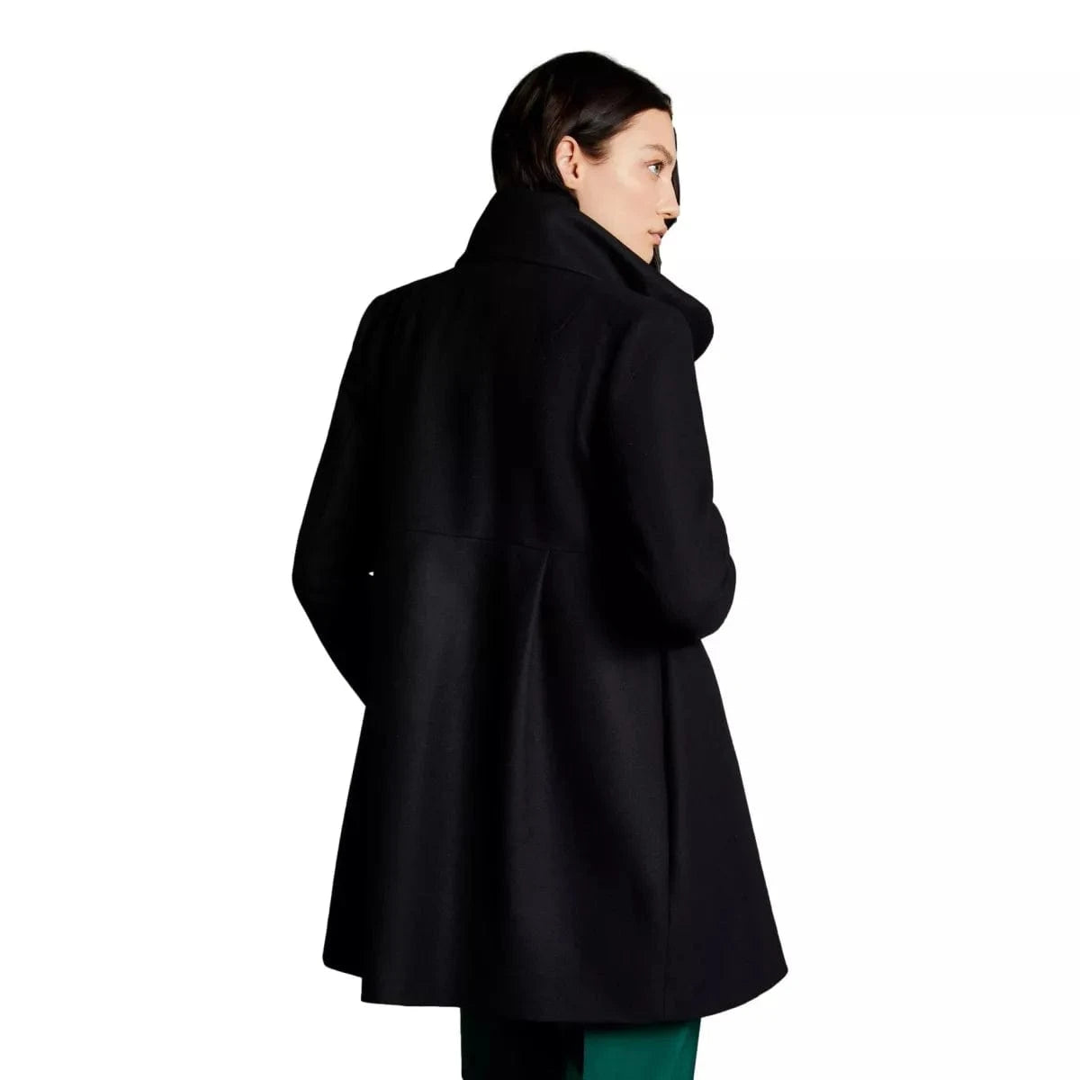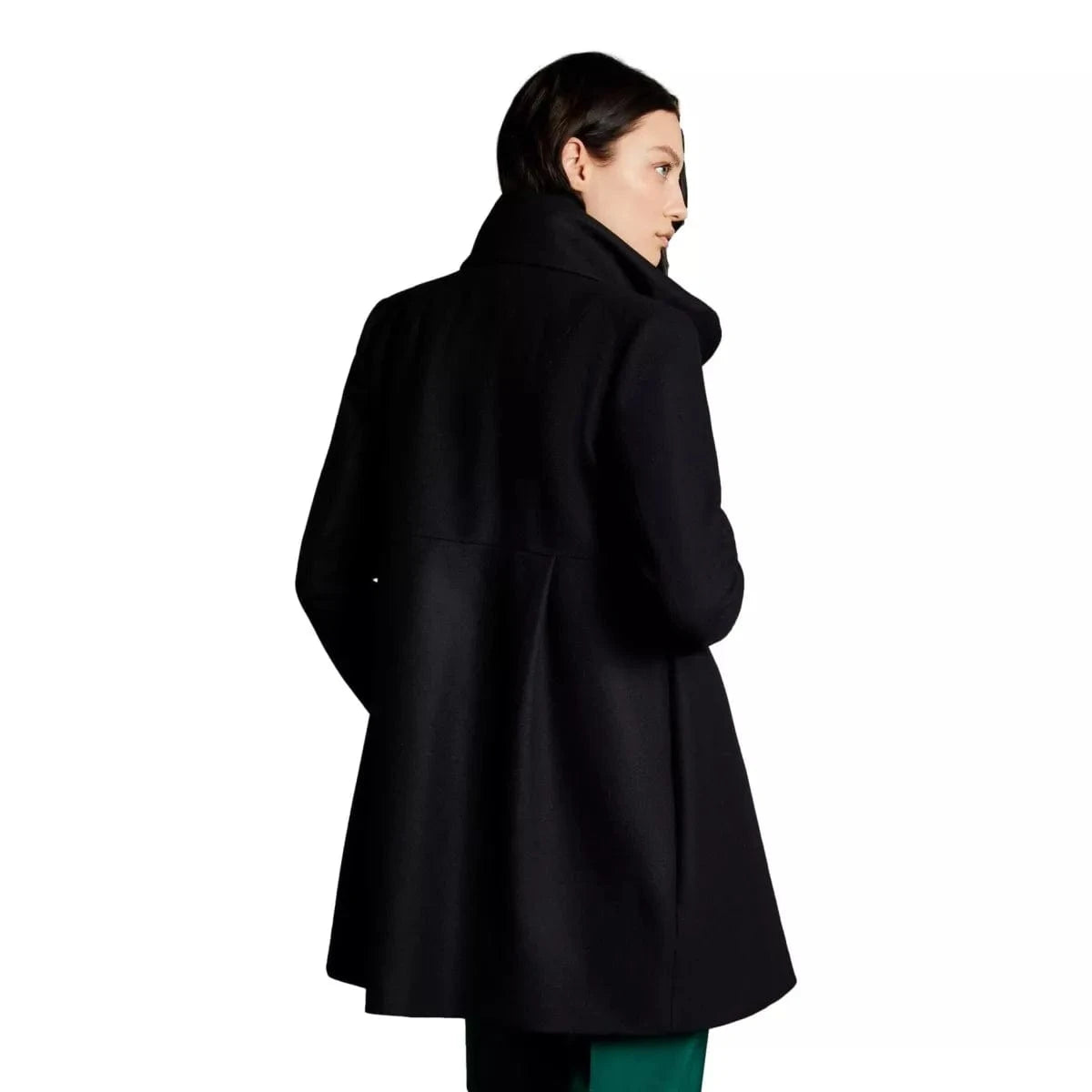 Characterized by an elegant tulip shape and a wrap-around collar, this soft wool blend fabric coat combines romantic inspiration and metropolitan taste. Fastened with iconic Fay hooks, it features welt pockets and an internal name tag.