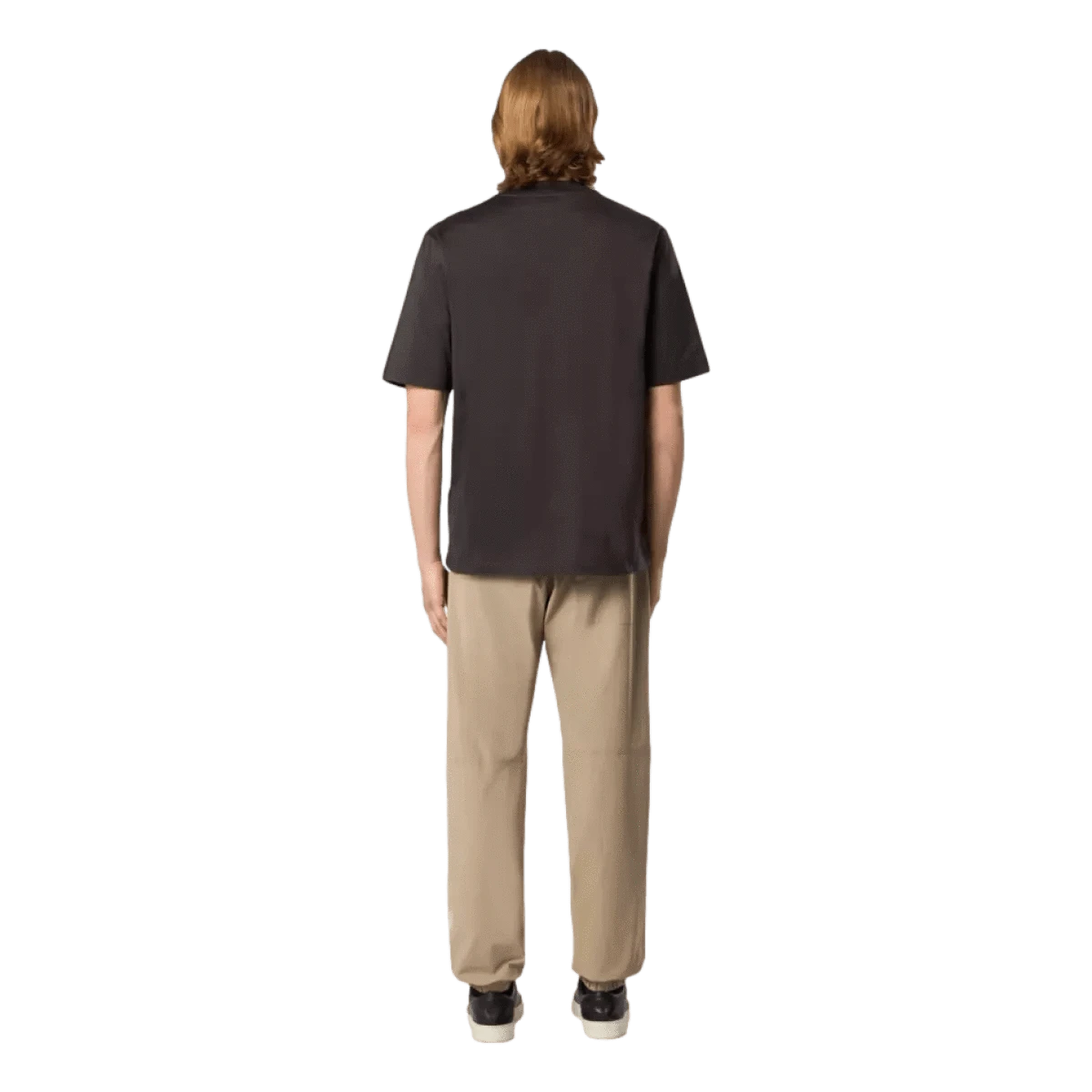 - Aan de achterkant een gelijmde achterzak met schuine ingang en drukknoopsluiting onder Stone Island-borduursel van een kleine ster; een schuine zak met een onzichtbare ritssluiting die aan de binnenkant is gelijmd.