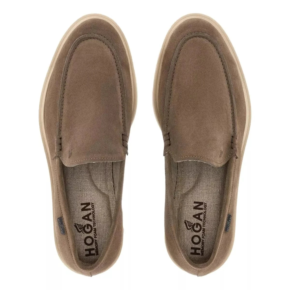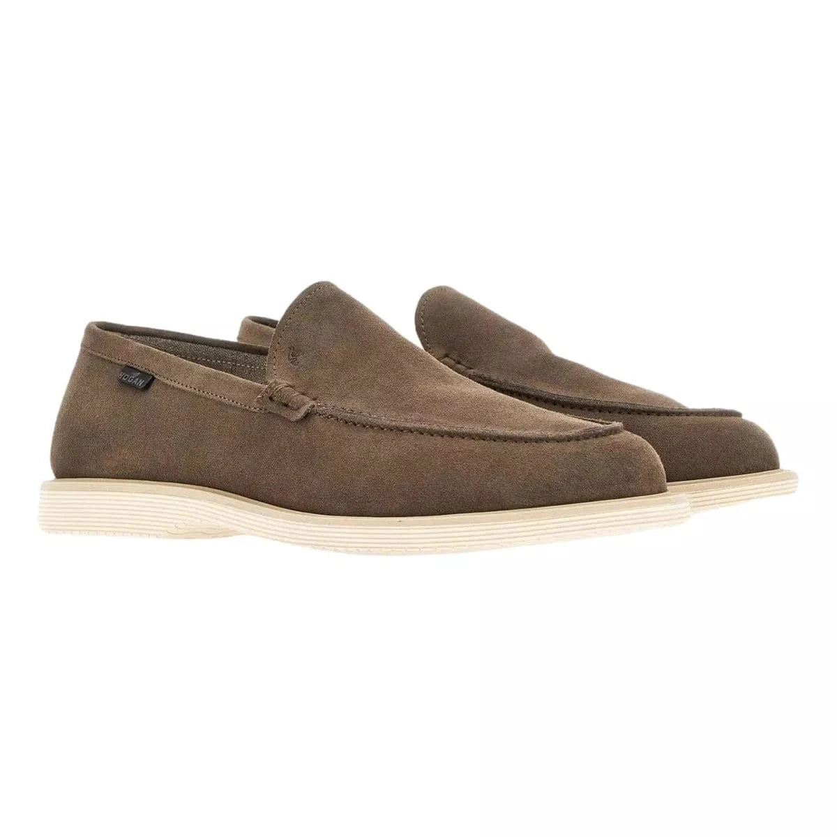 Sportieve loafers van suède, met Hogan-monogram op de voorkant gestempeld en extra lichte milleraies-loopzool. Zacht en fris, dankzij de linnen voering zijn ze de perfecte aanvulling op een business casual look.