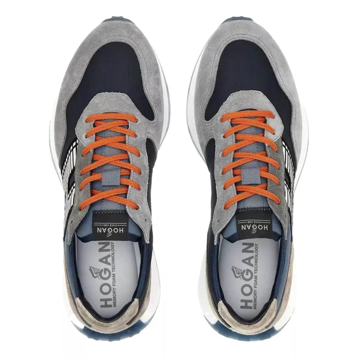A bold look, cool style and retro vibes come together in the Hogan H601 sneakers. Designed for optimal grip, the lightweight outsole comes with a tread with H-shaped spikes. These sneakers, with vintage look laces and look, come with an upper in suede and technical fabric, with striped flocked side H. The memory foam insole guarantees a cushioned fit.