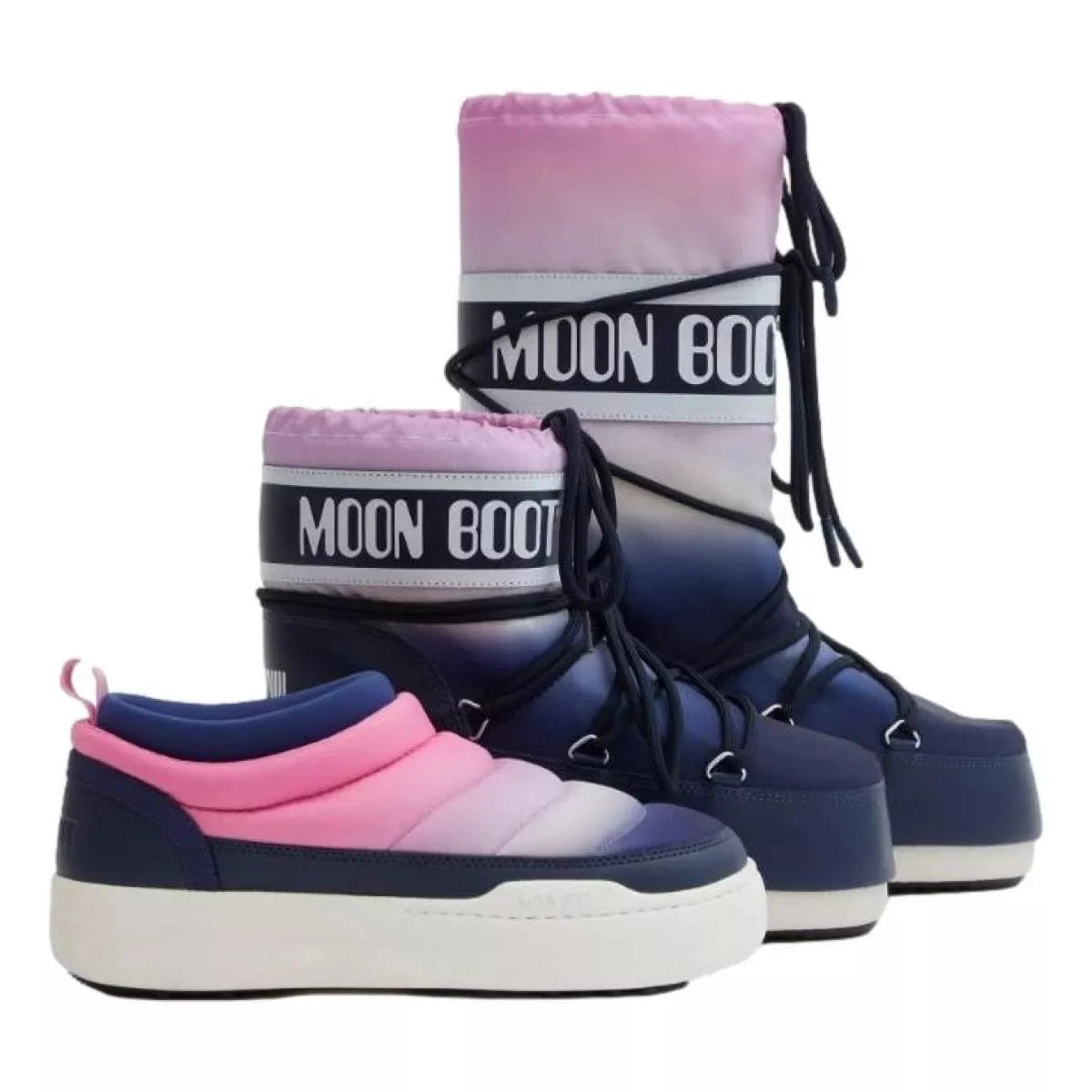 Een kosmische maansopgang print bedekt deze Moon Boot Icon in zacht roze en diep blauw. Het ontwerp is geïnspireerd op de maanlanding van 1969 en heeft alle kenmerken van het origineel: gewatteerde isolatie, lichtgewicht middenzolen en zuignappen die serieuze controle over de grond bieden. De speciaal ontworpen schuimvoering ontspant licht na een paar uur dragen en vormt zich naar de vorm van elke voet. Het is aanpasbaar en biedt een veilige en comfortabele pasvorm voor verschillende maten. We raden aan om bij deze stijlen een maatje groter te nemen. Als je bijvoorbeeld normaal een EU 38 hebt, kies dan een EU 39-41.