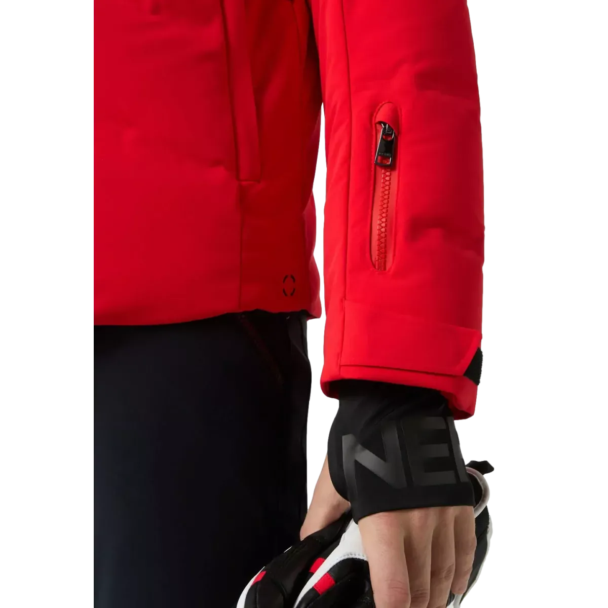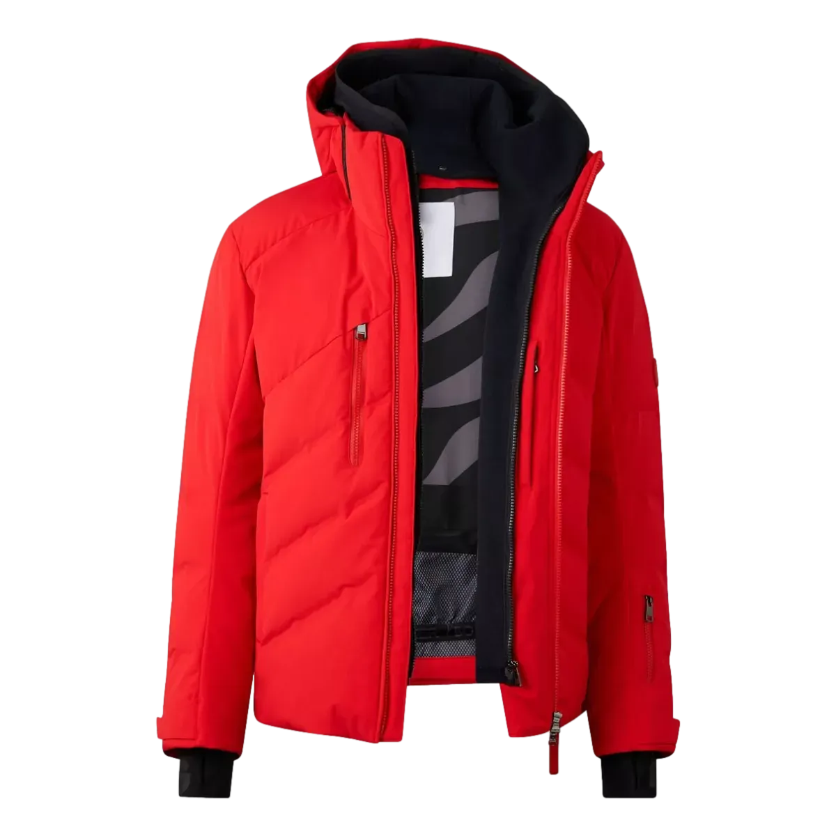 Het geïntegreerde Cohaesive-verstelsysteem in de zoom zorgt voor nauwkeurige fijnafstelling, zelfs met handschoenen aan. De stijlvolle Bogner-afwerking met 3D-details, logopatch en vlammenprint voering maken deze jas een technisch én visueel hoogstandje.