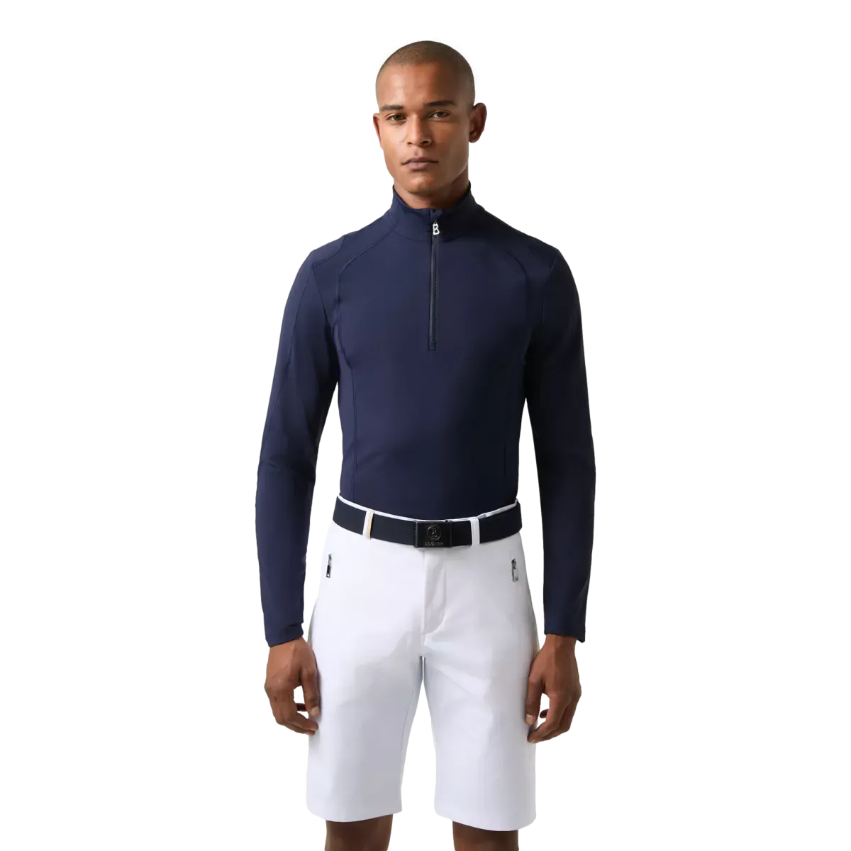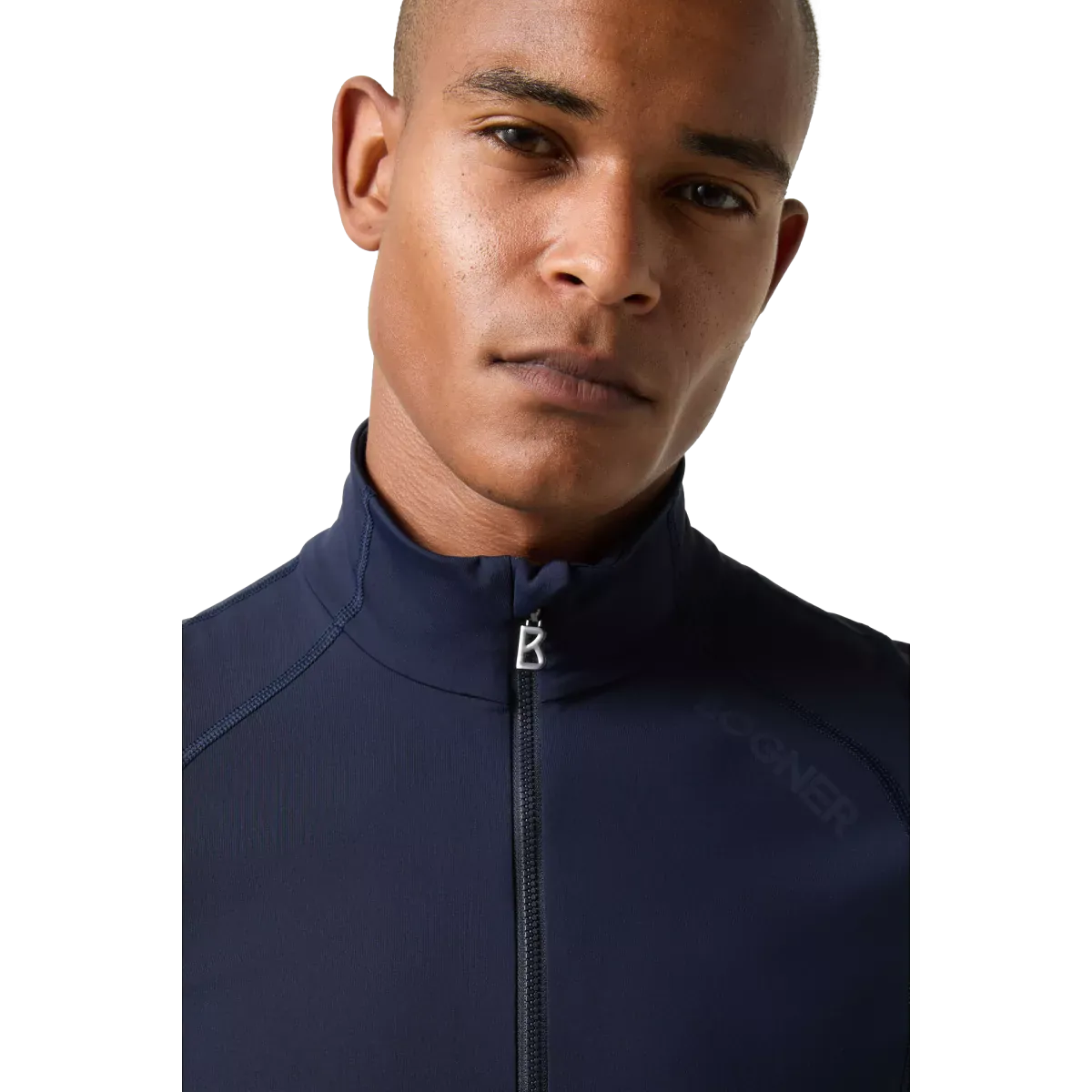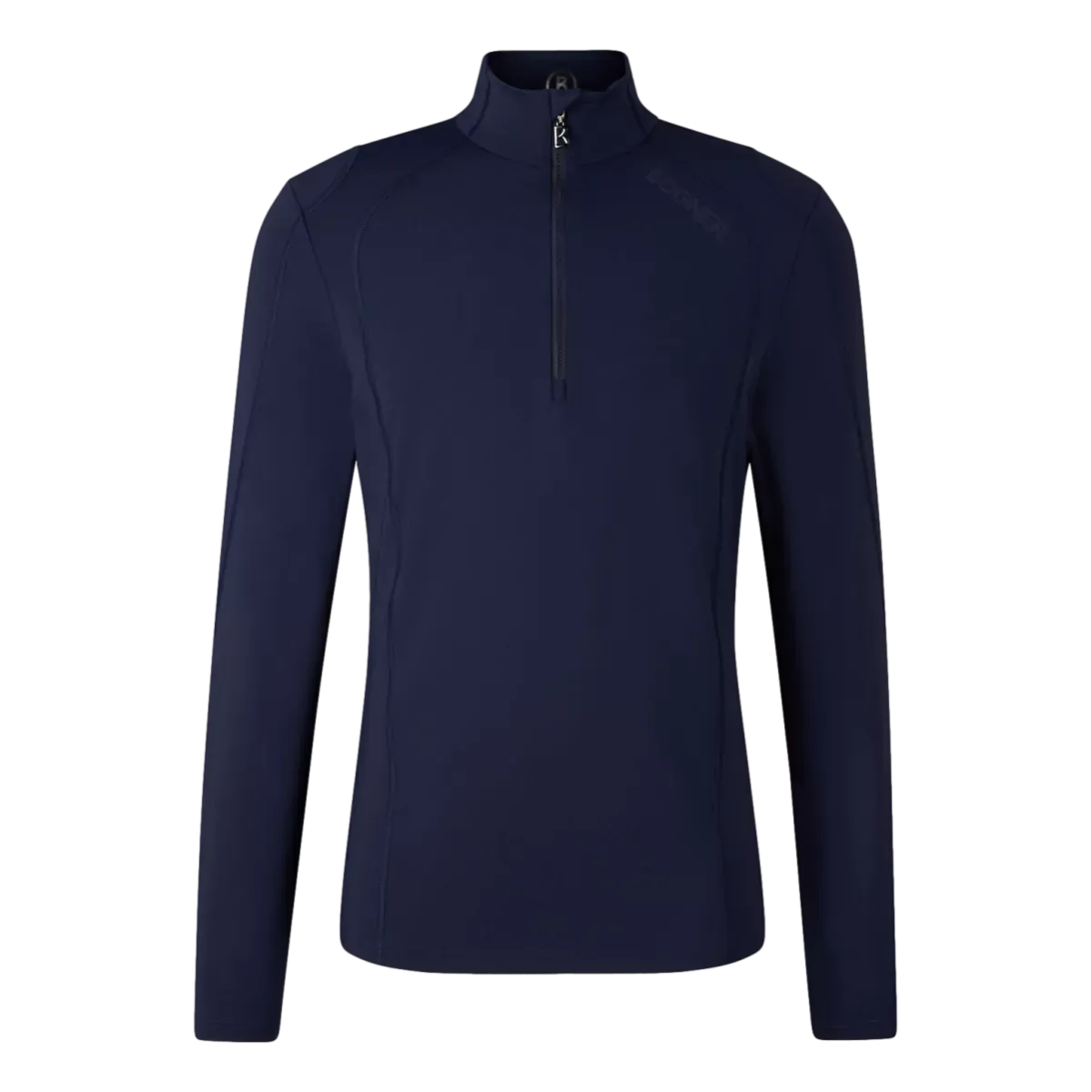 Blijf stijlvol en comfortabel op de piste met de Bogner Ski Pulli in klassiek donkerblauw. Deze herenpullover combineert een sportieve, aansluitende pasvorm met hoogwaardig, rekbaar materiaal, zodat je warm, droog en flexibel blijft tijdens iedere wintersportactiviteit. De opstaande kraag met ¼-rits en subtiele reflecterende details bieden extra bescherming tegen kou en zorgen voor betere zichtbaarheid op de piste. Perfect als midlayer onder je ski‑jas of casual te dragen na het skiën.