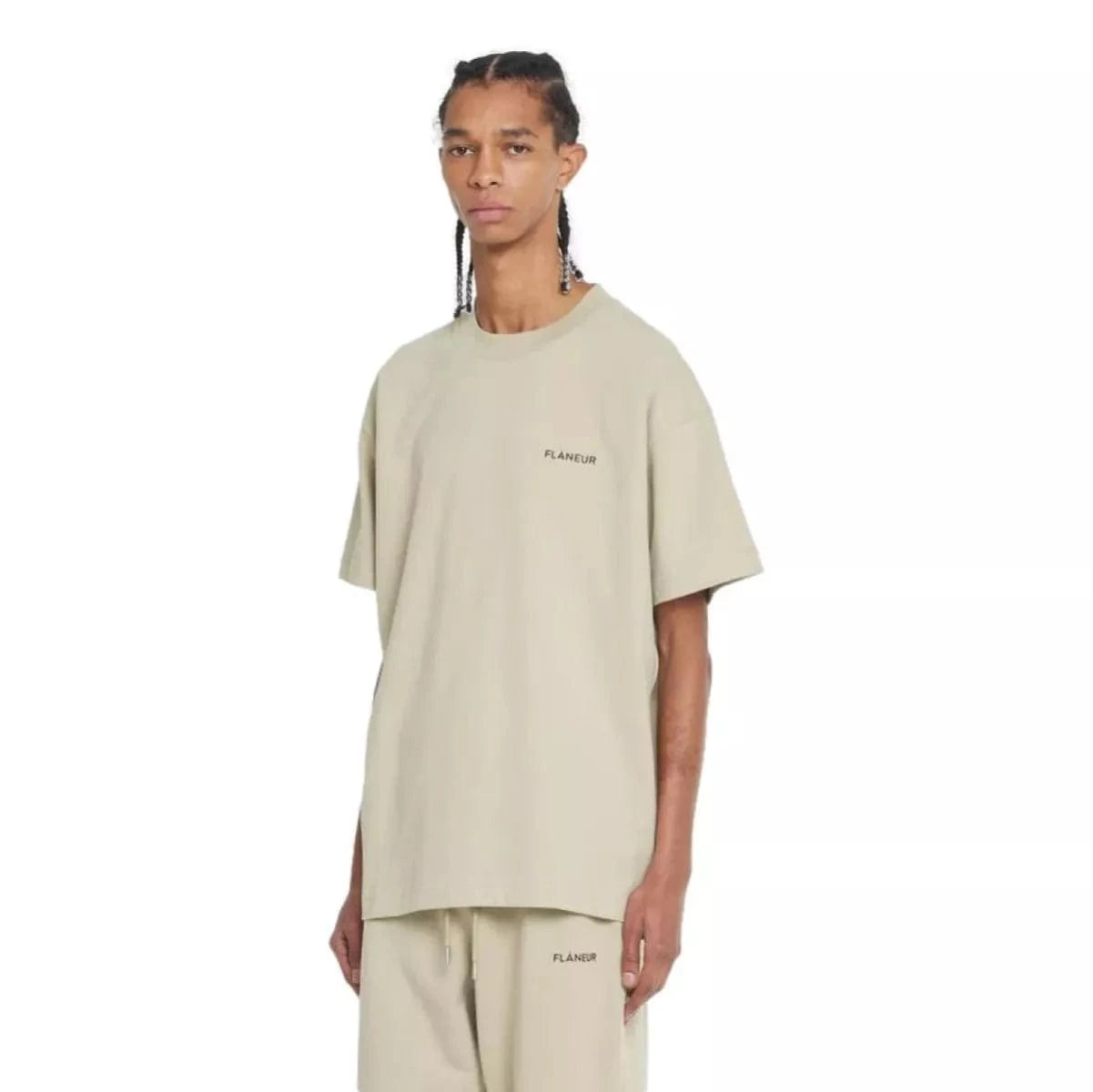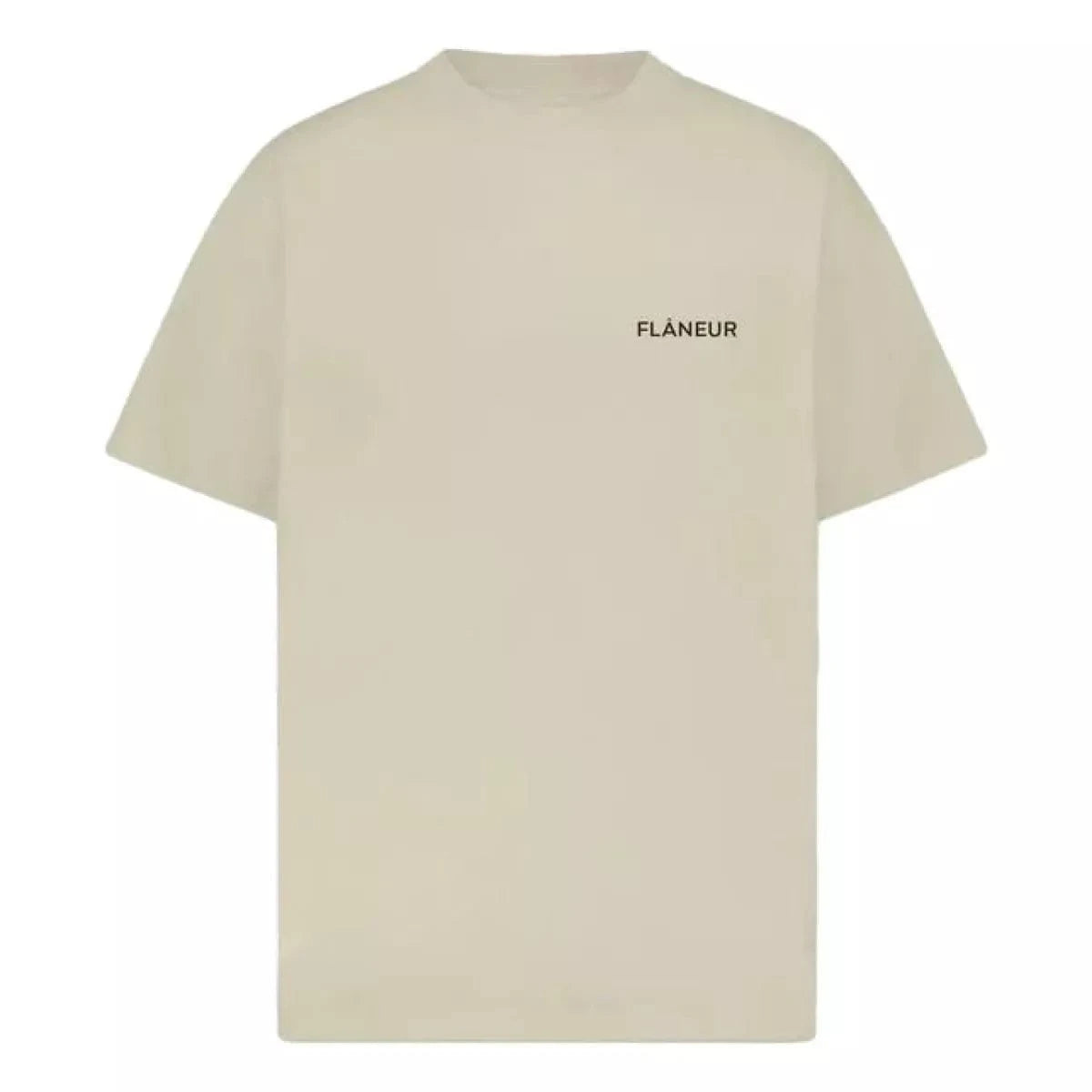 T-shirt met opdruk “Flâneur” op de voorkant. Onze naleving van de GOTS-certificering garandeert een milieuvriendelijke en sociaal verantwoorde productie, van grondstoffen tot etikettering, en toont onze onwrikbare toewijding aan duurzaamheid en kwaliteit.