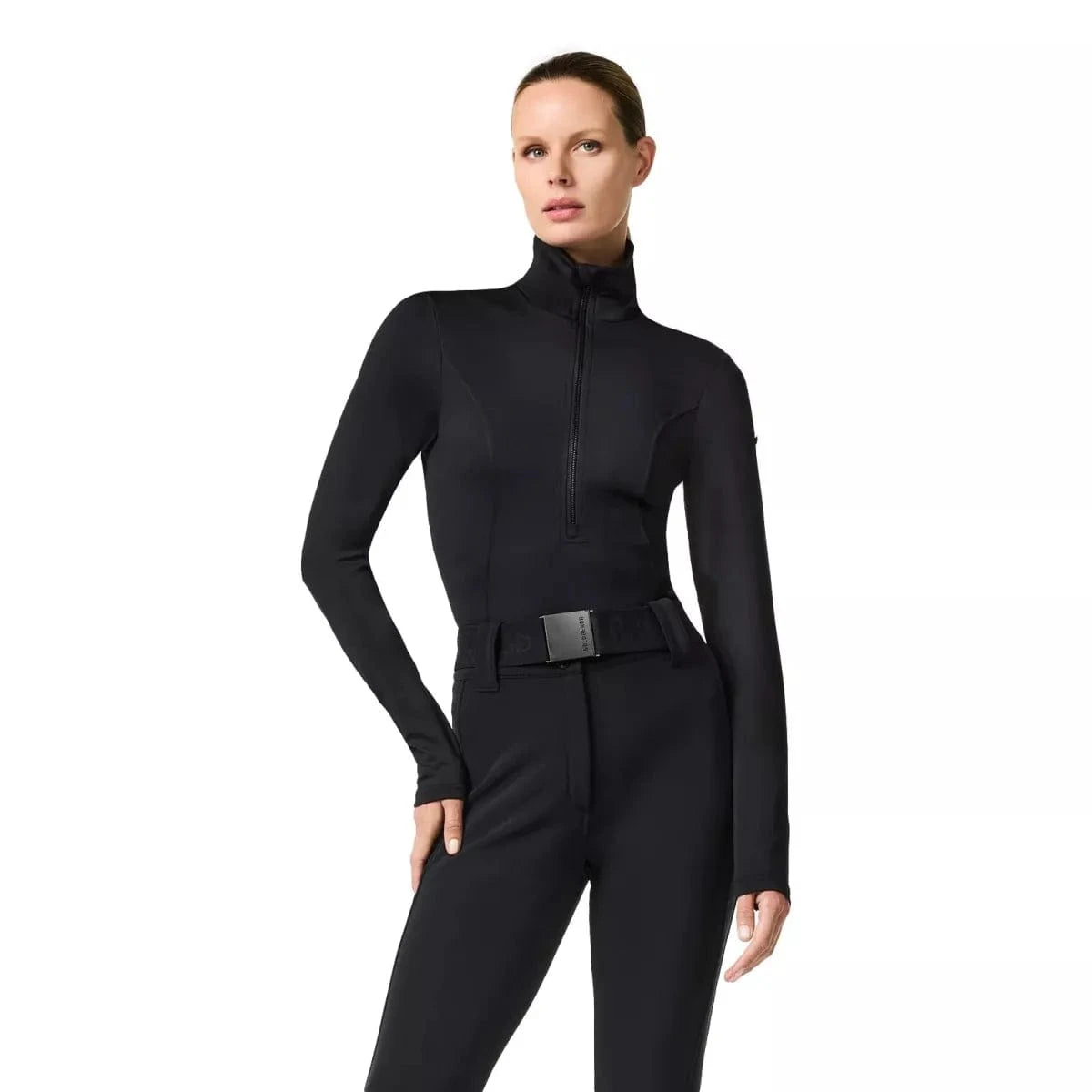- Diep zwarte kleur – Tijdloos en makkelijk te combineren met elke skibroek of ski-jas.